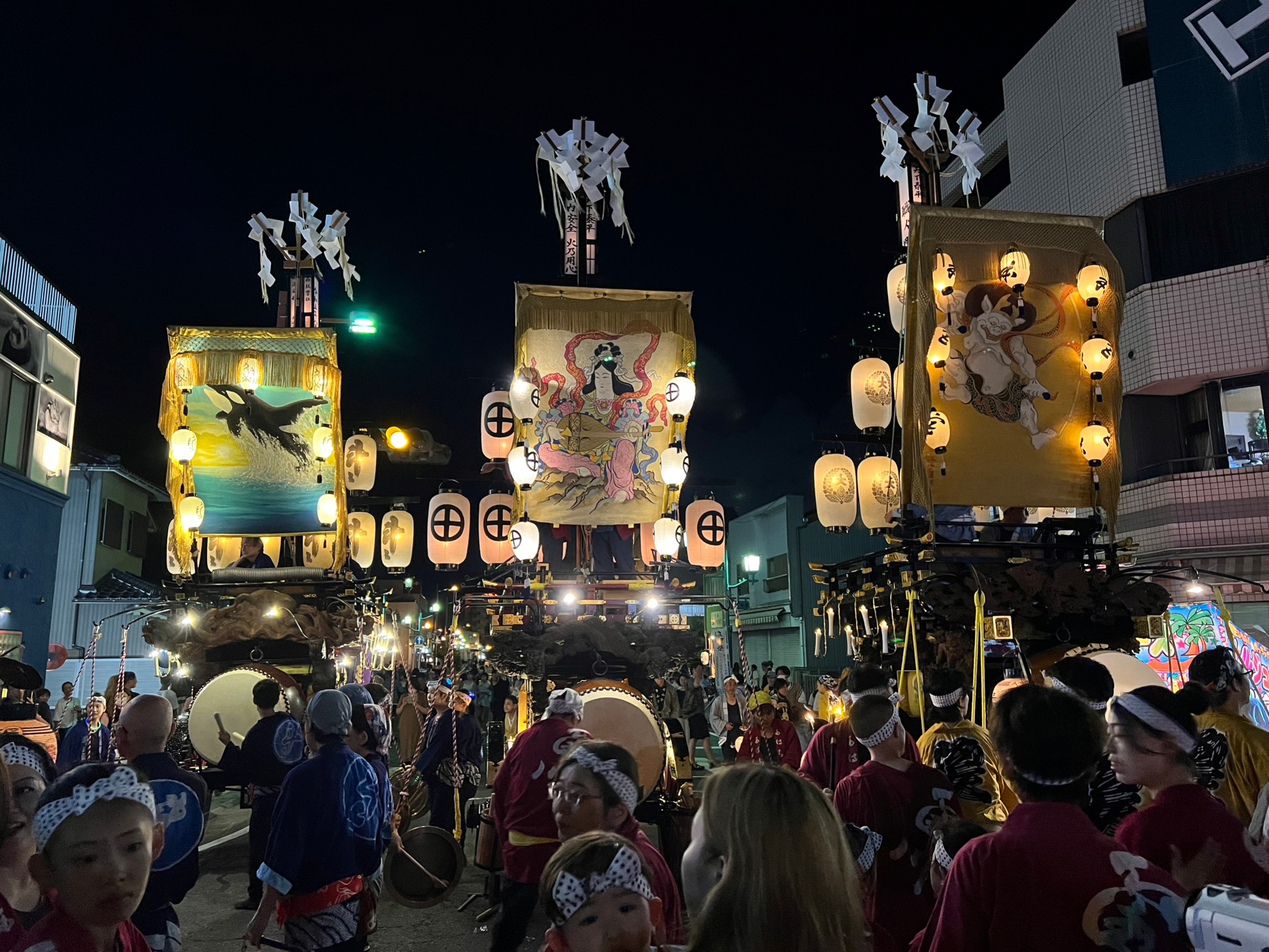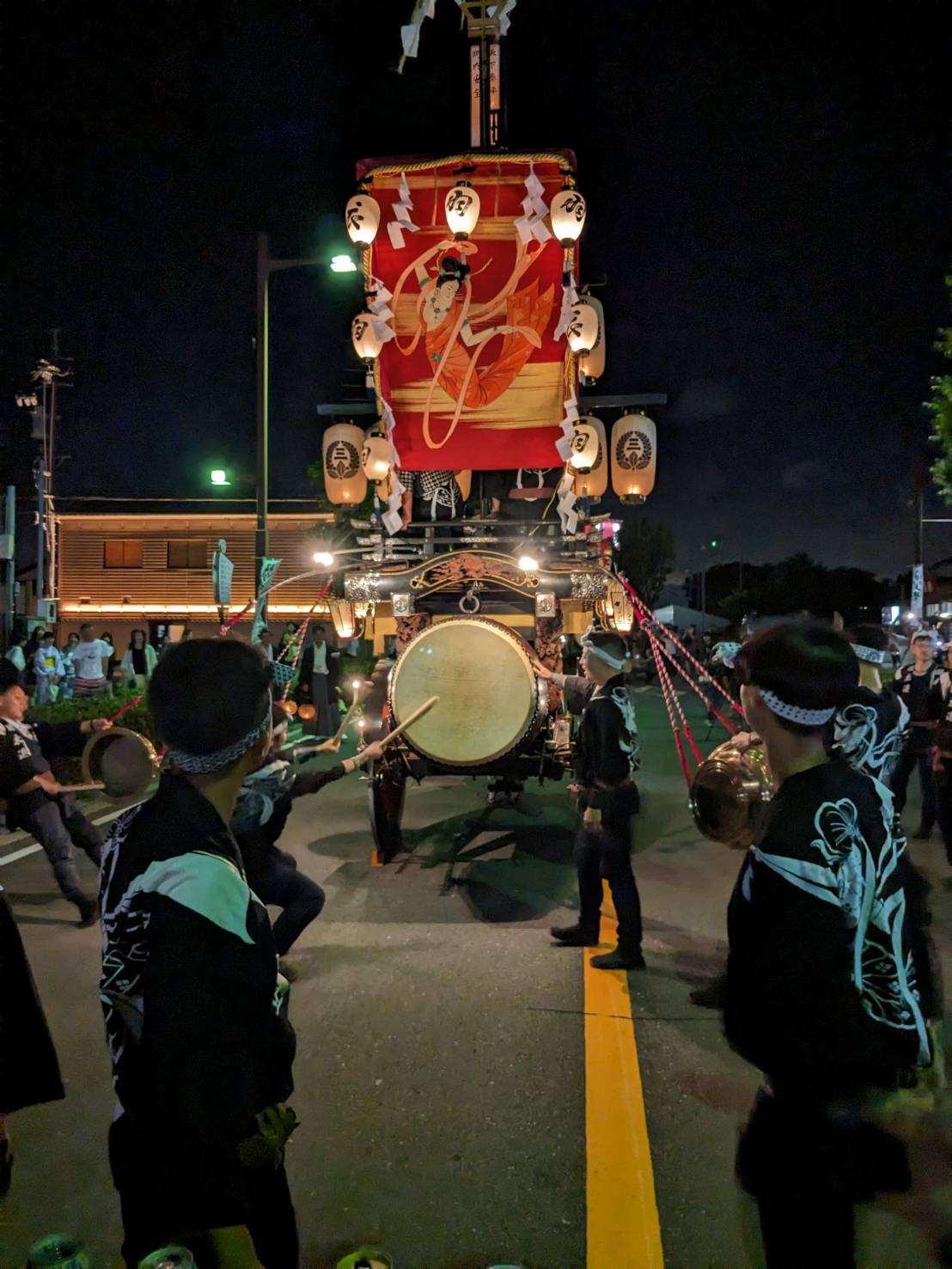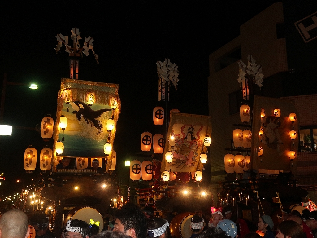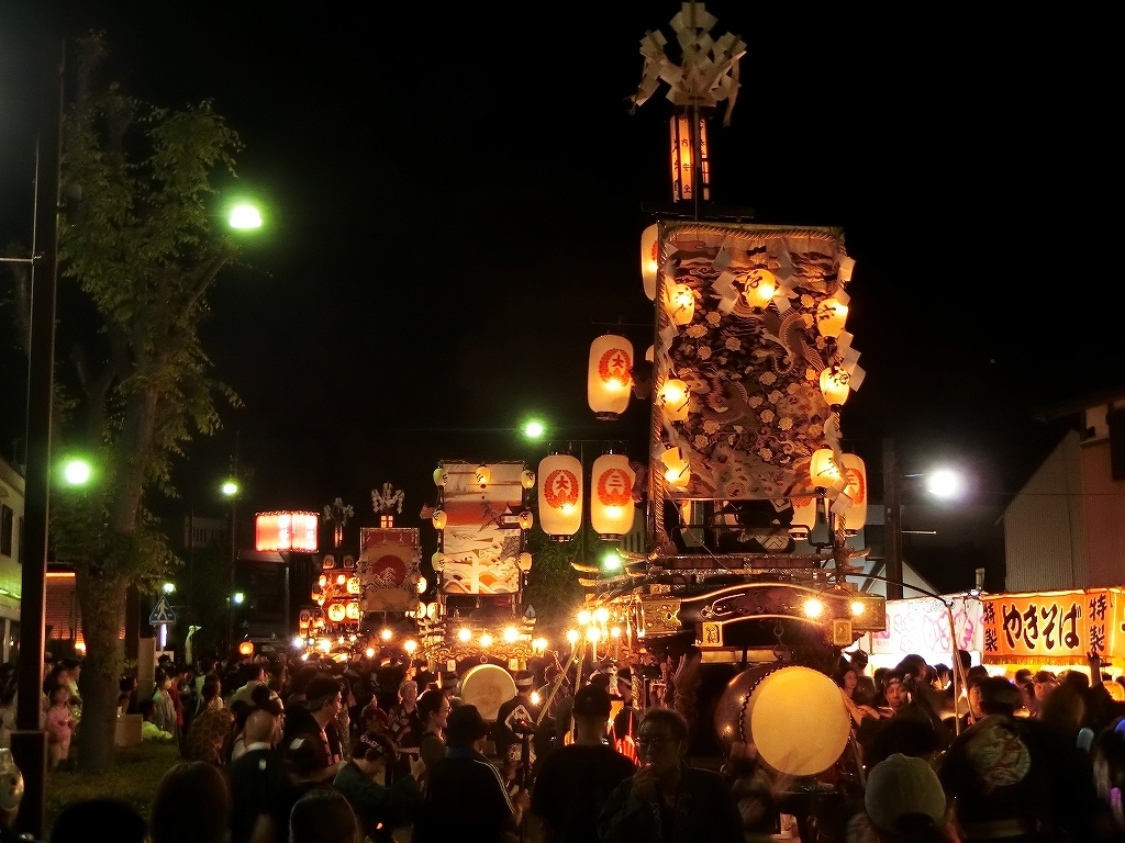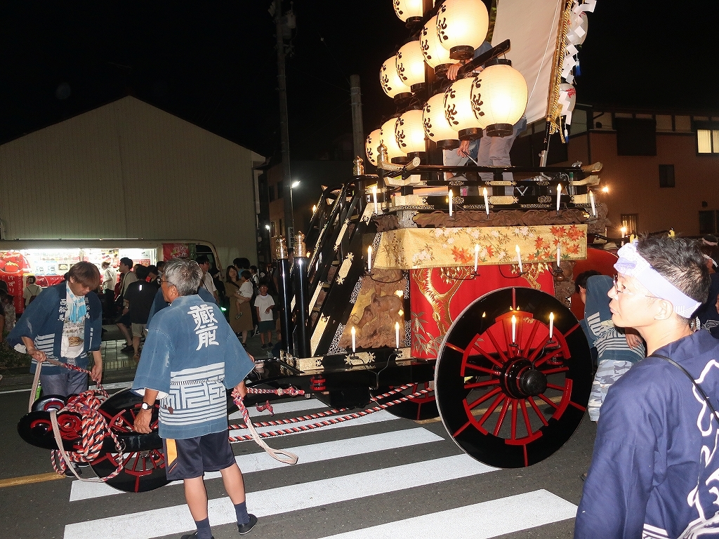 時を同じくして、第四組の祭車も田町交差点を経て八間通りに出てきました。