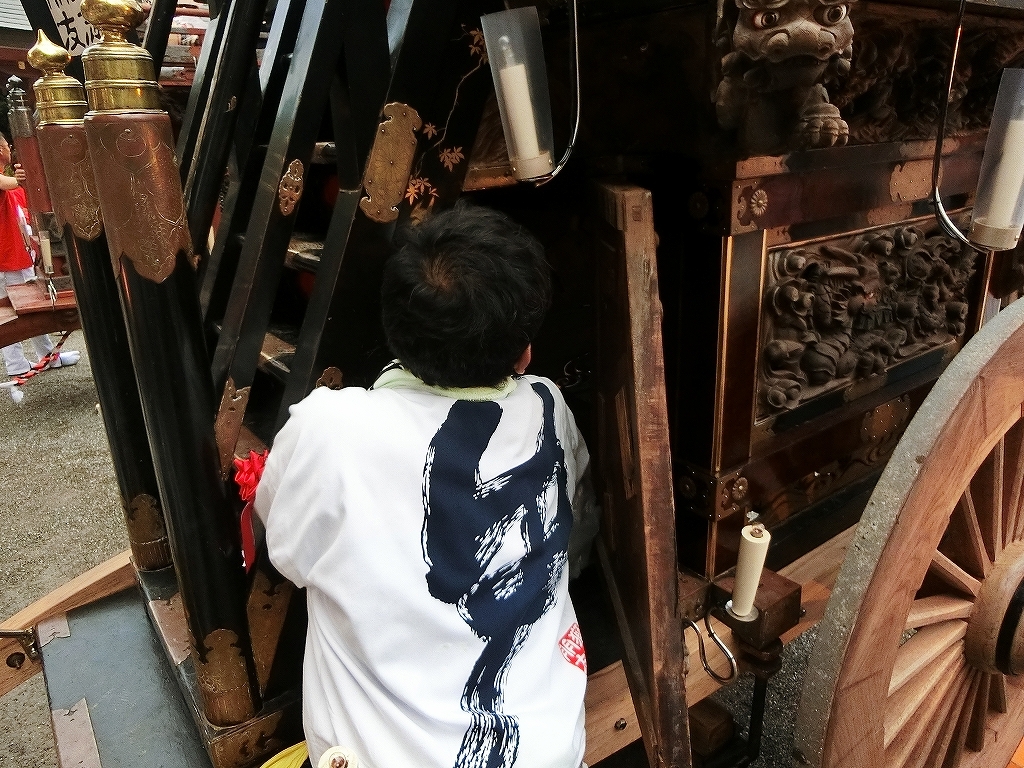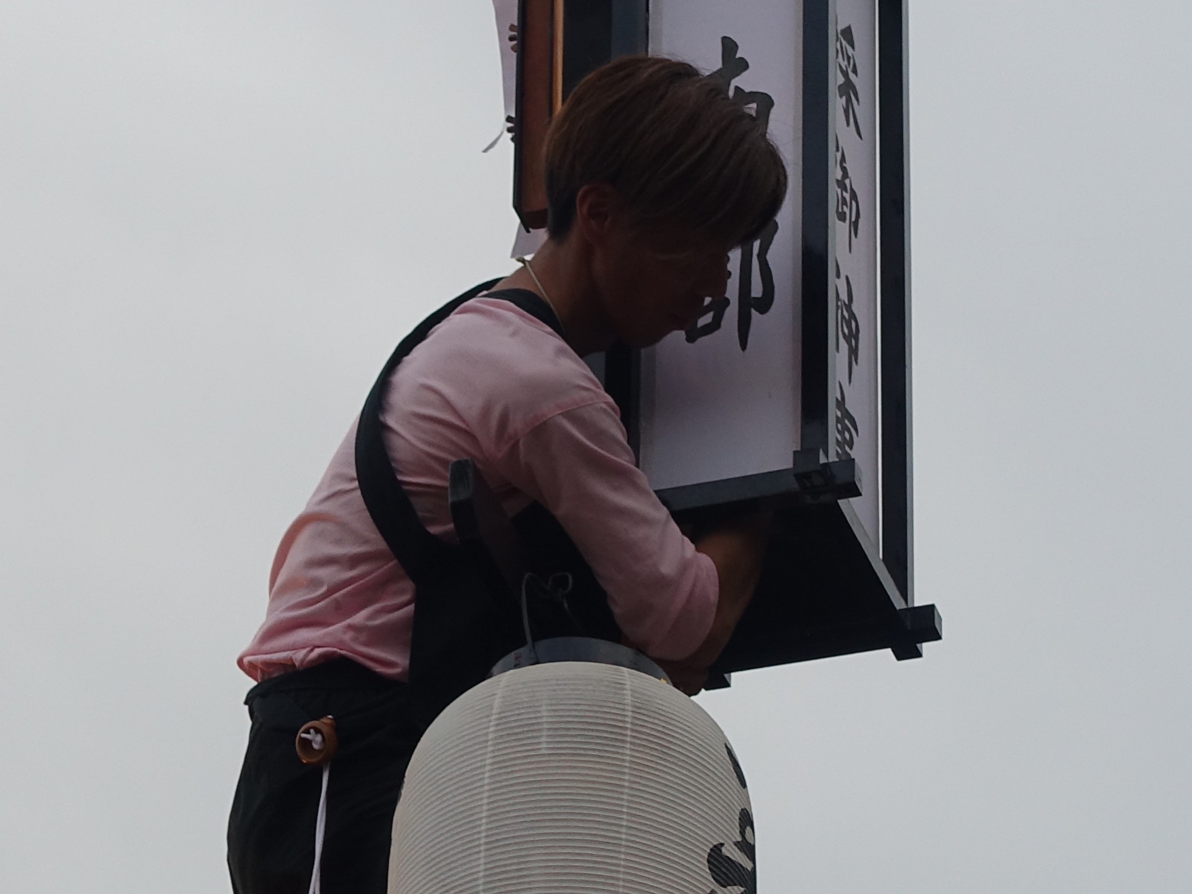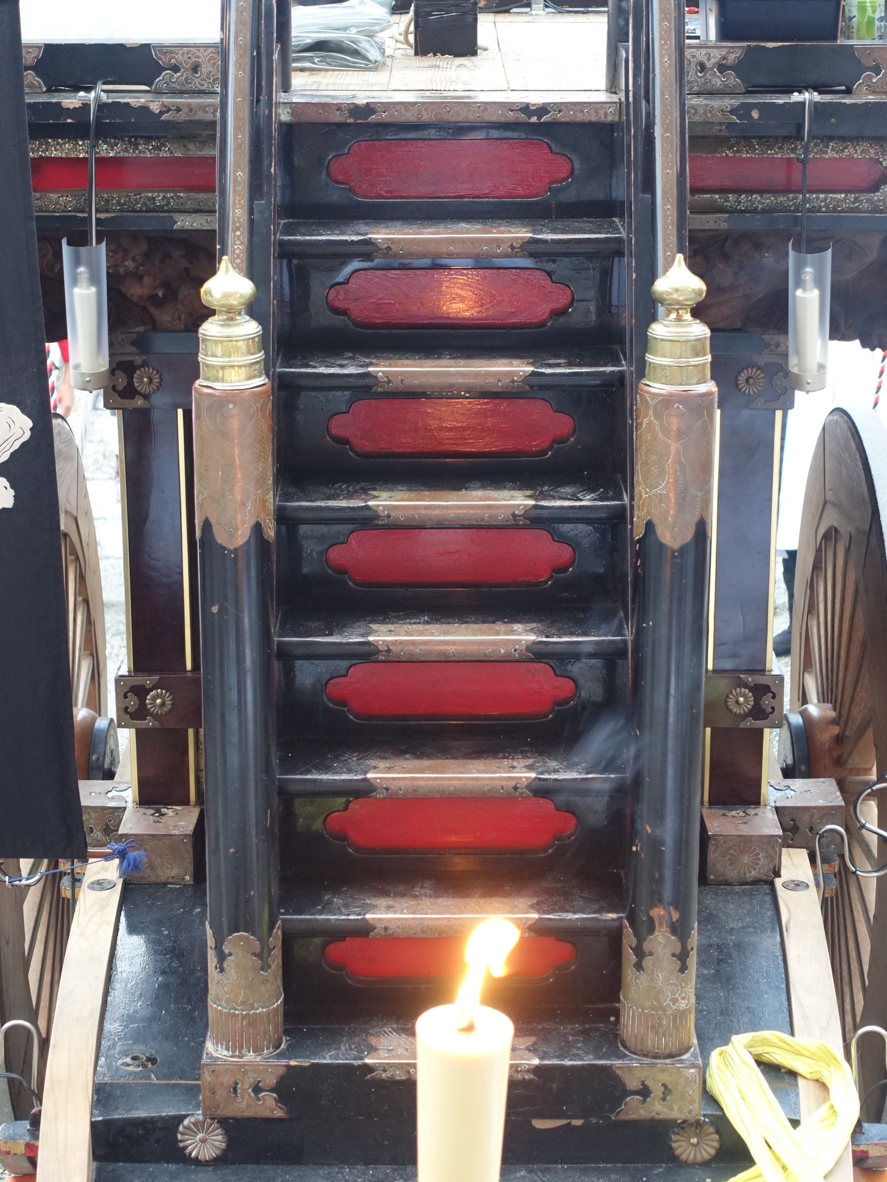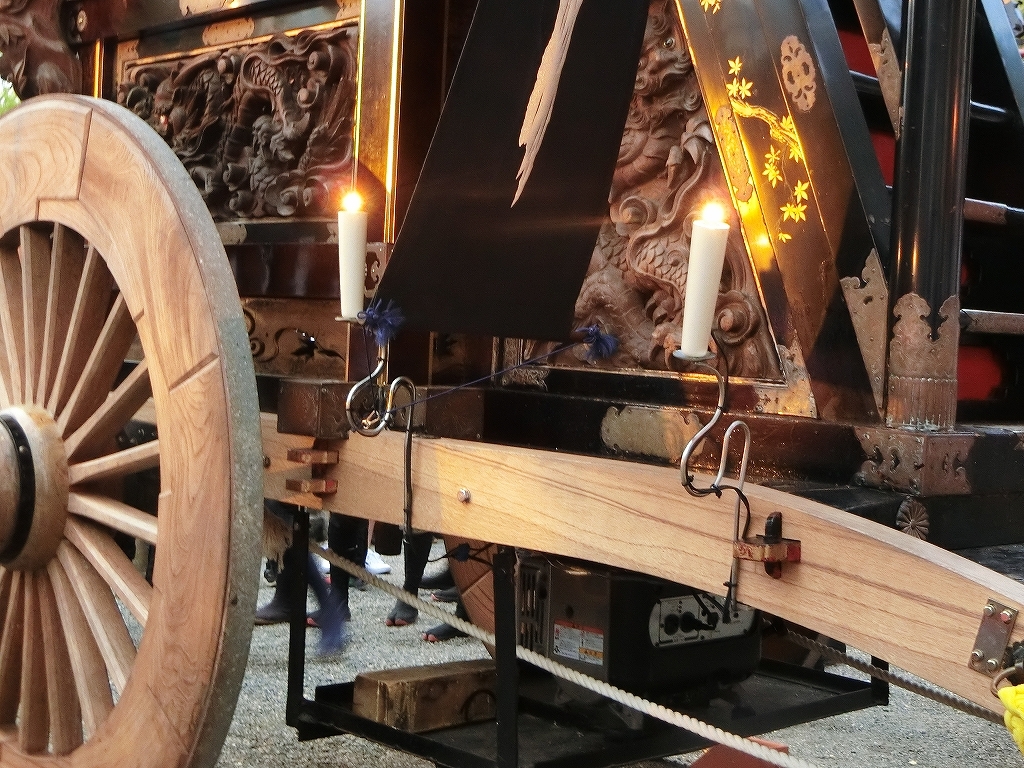 中部は三角を開け、スイッチを入れて祭車全体の電気を点けます。