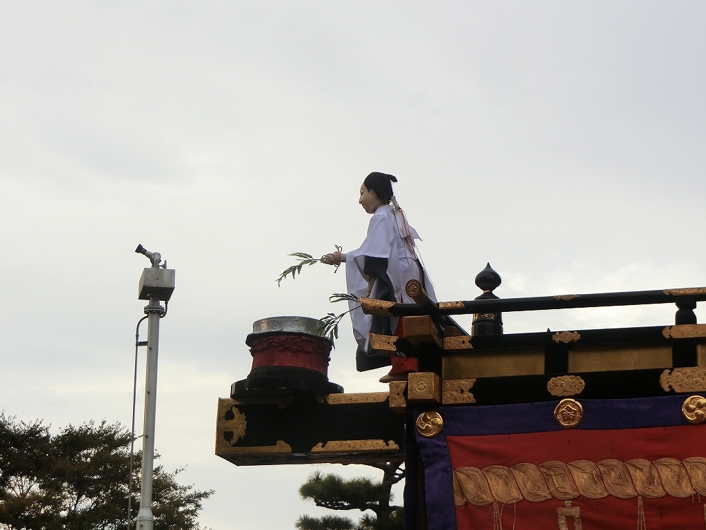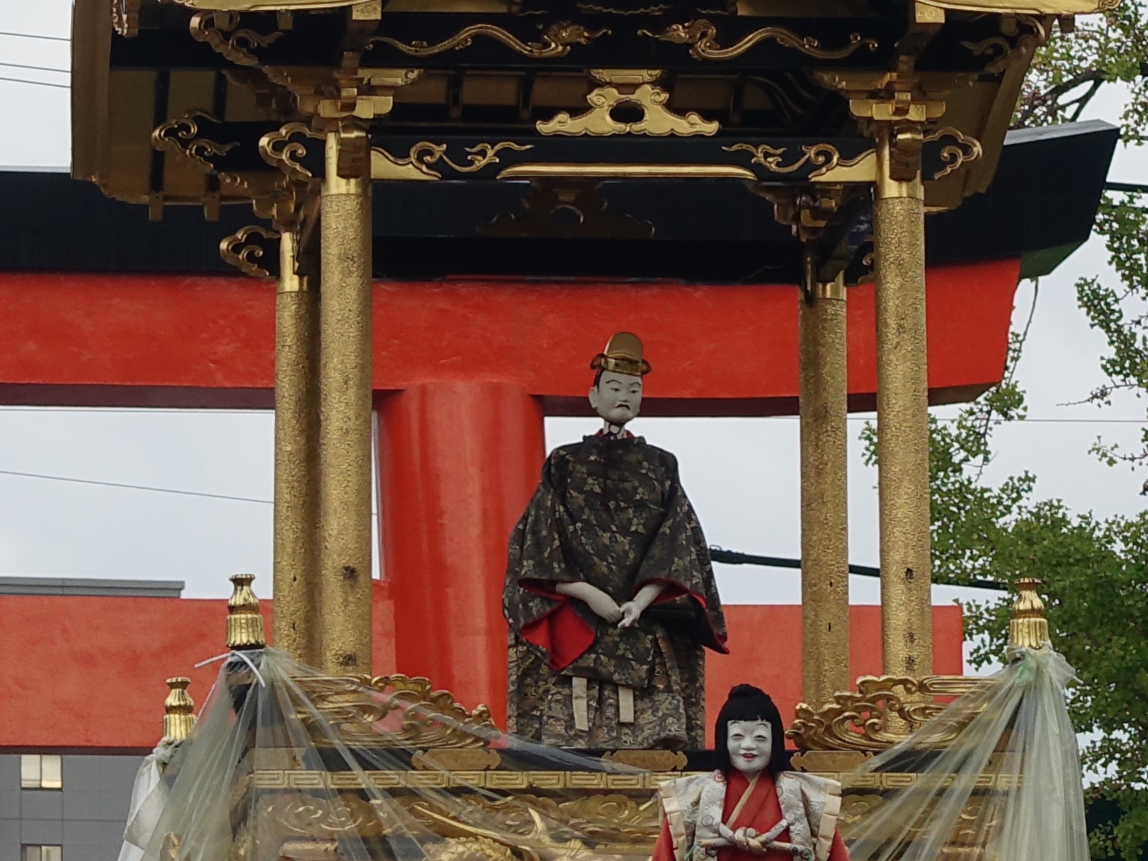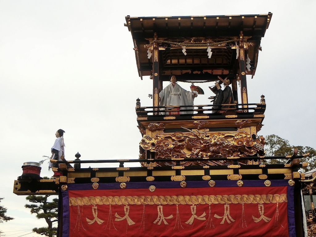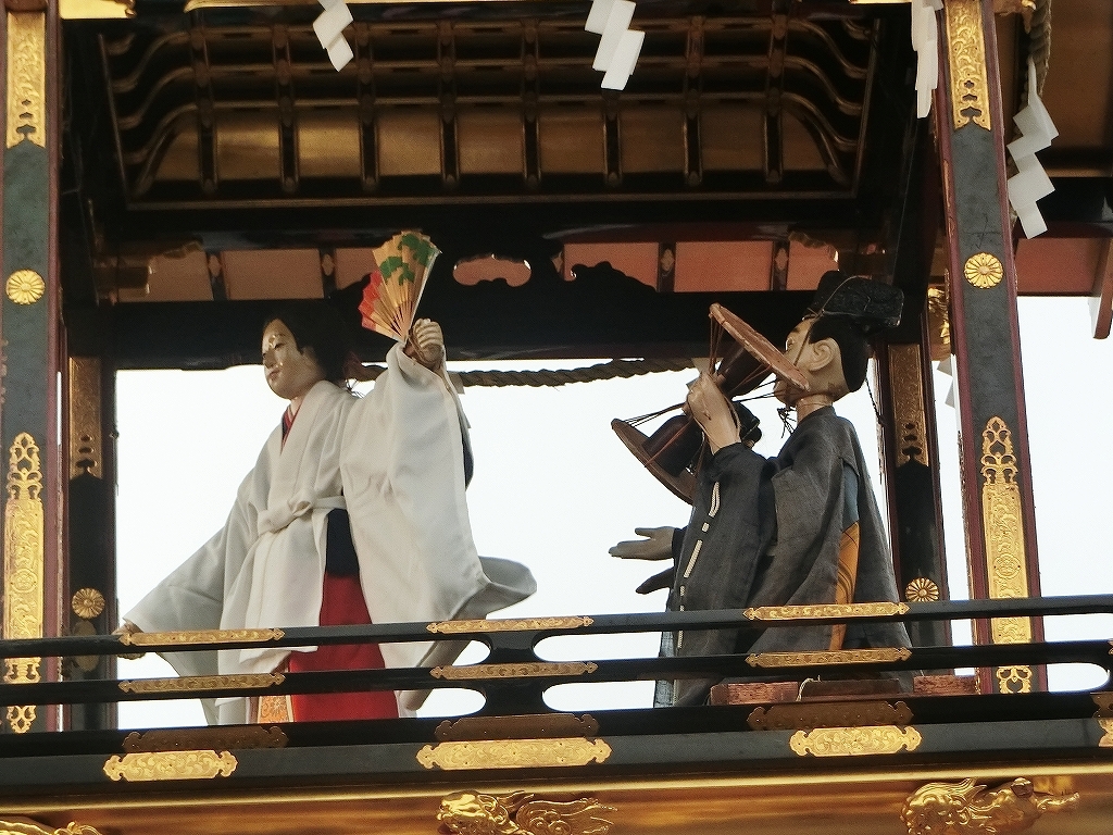 中部は三角を開け、スイッチを入れて祭車全体の電気を点けます。