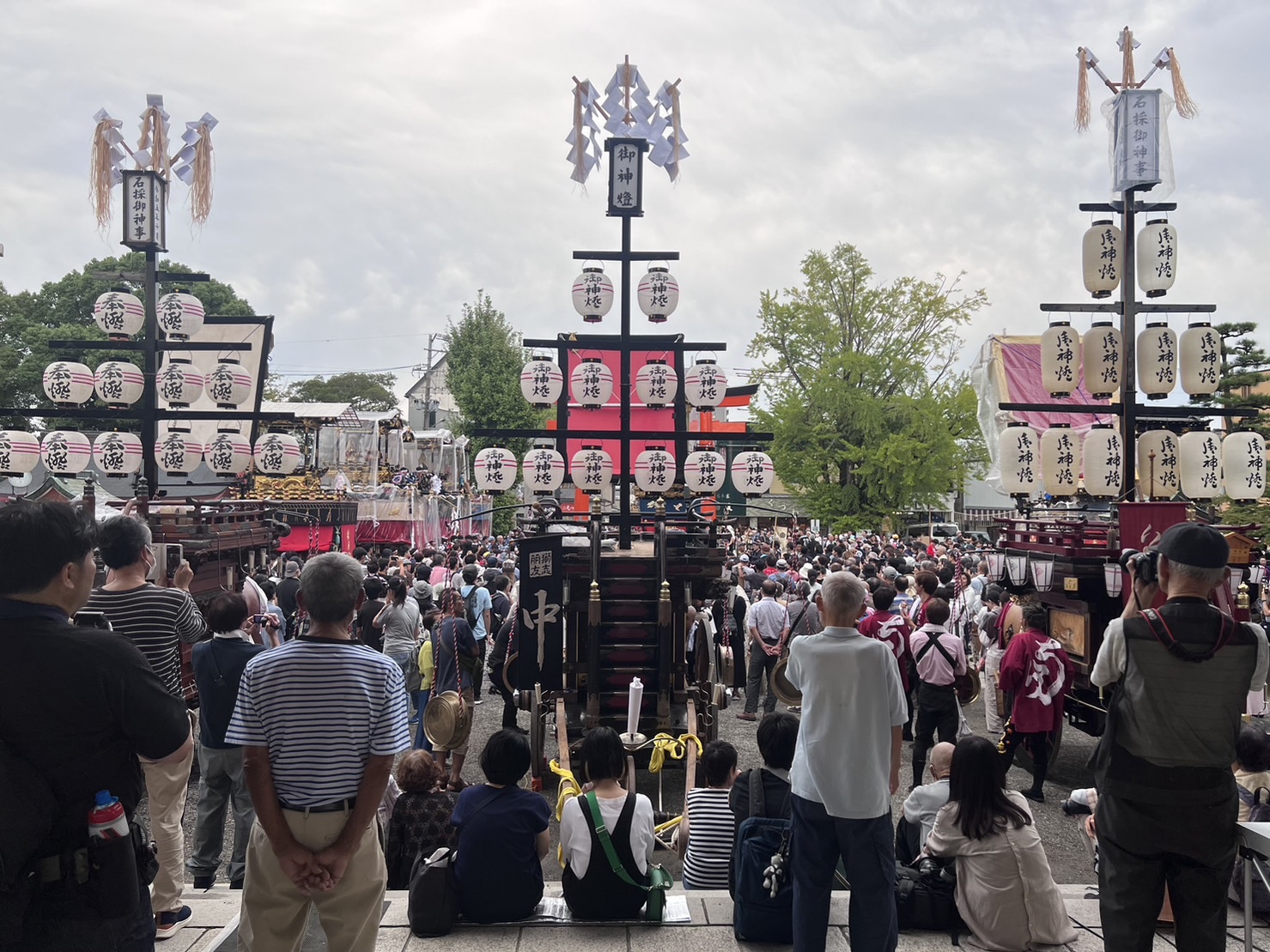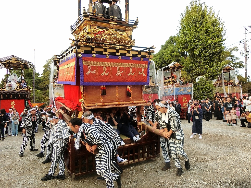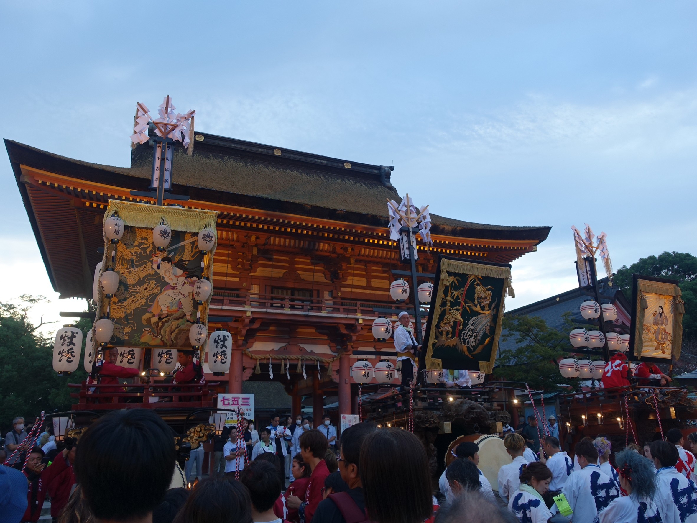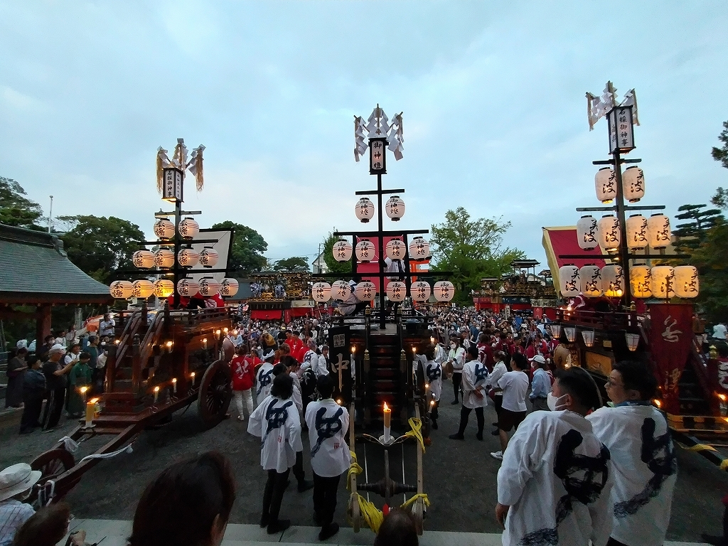 全山車が揃うと、各山車は提燈を飾ったり夕休憩を取ります。