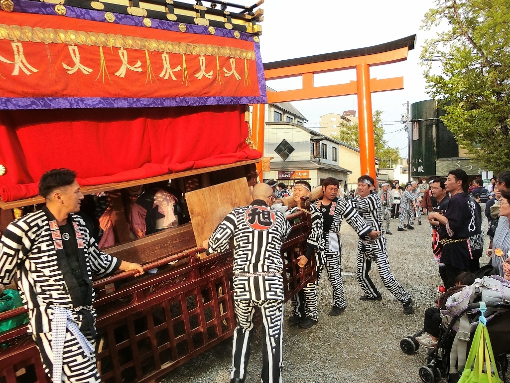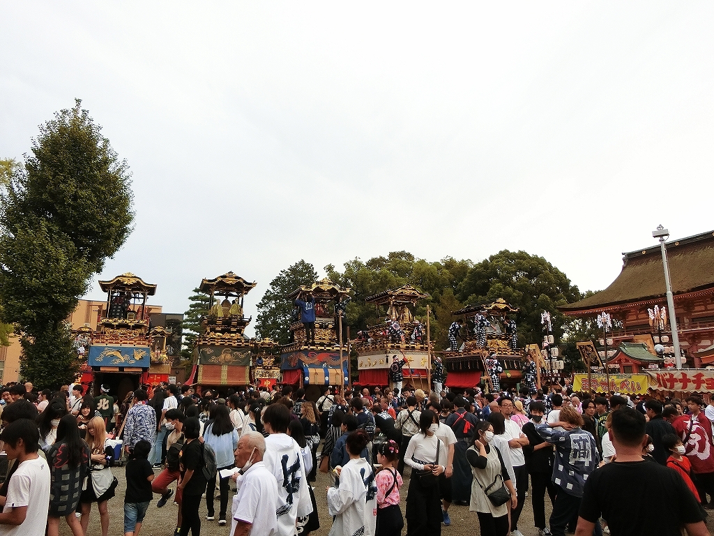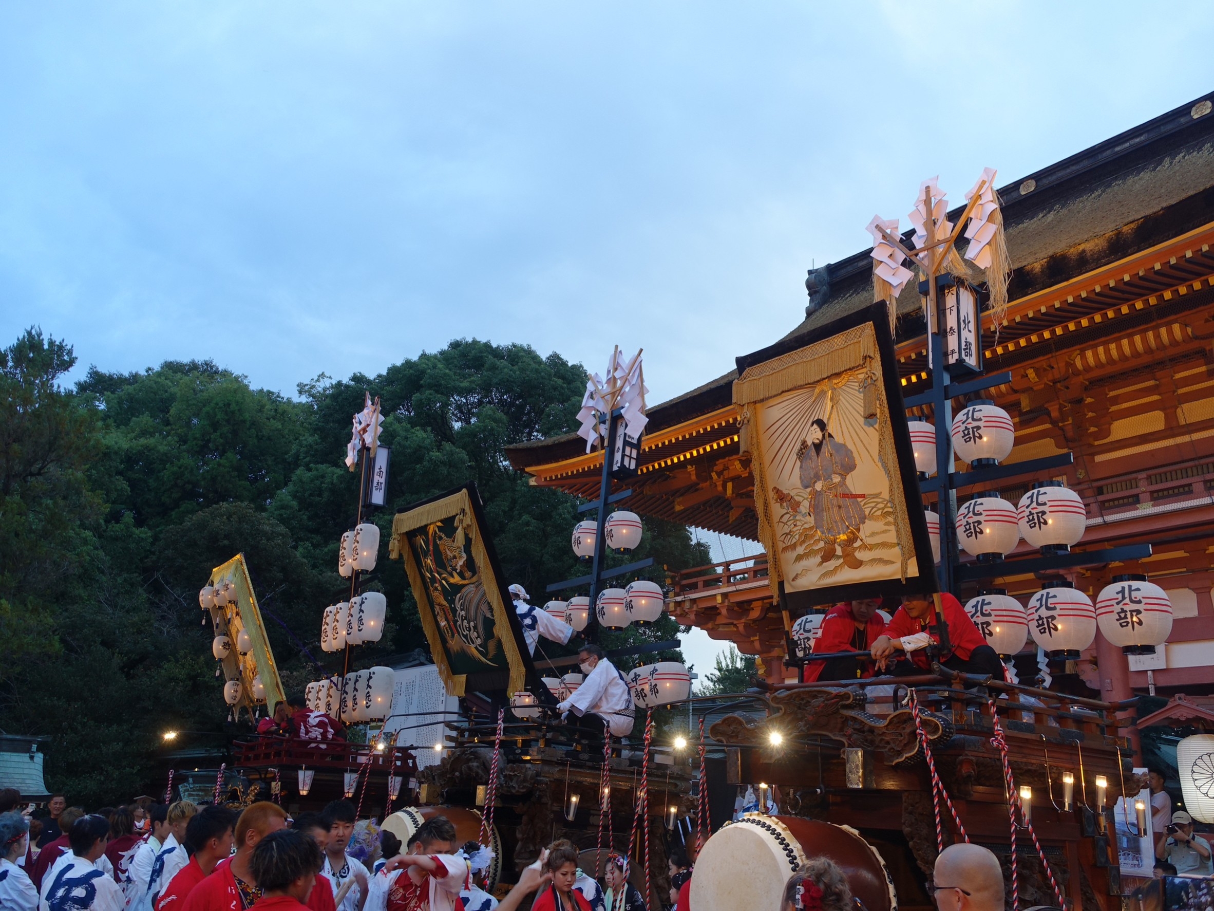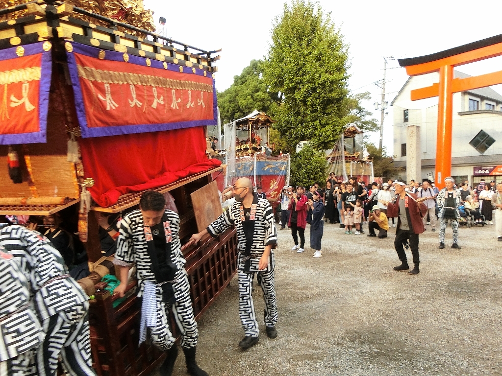 全山車が揃うと、各山車は提燈を飾ったり夕休憩を取ります。