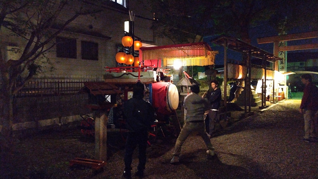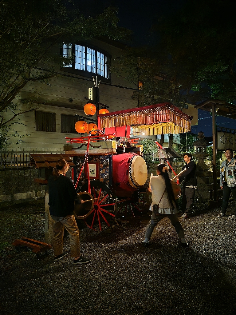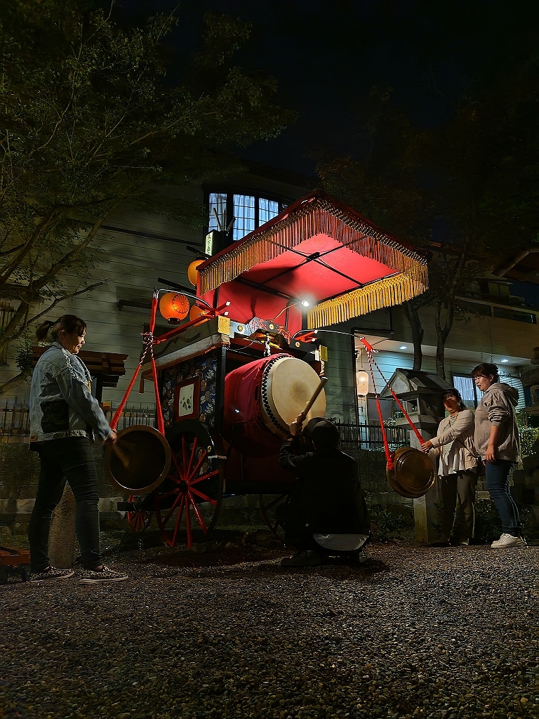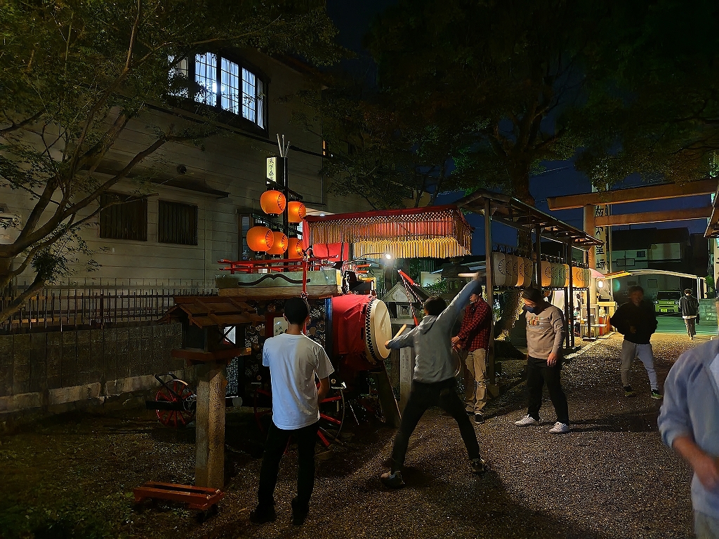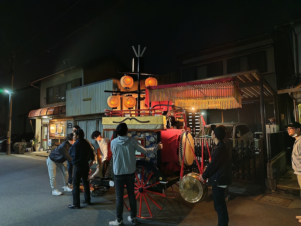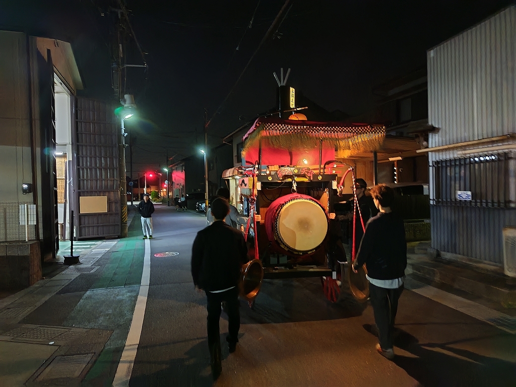 午後8時半、叩き納めて祭車蔵へと戻ります。