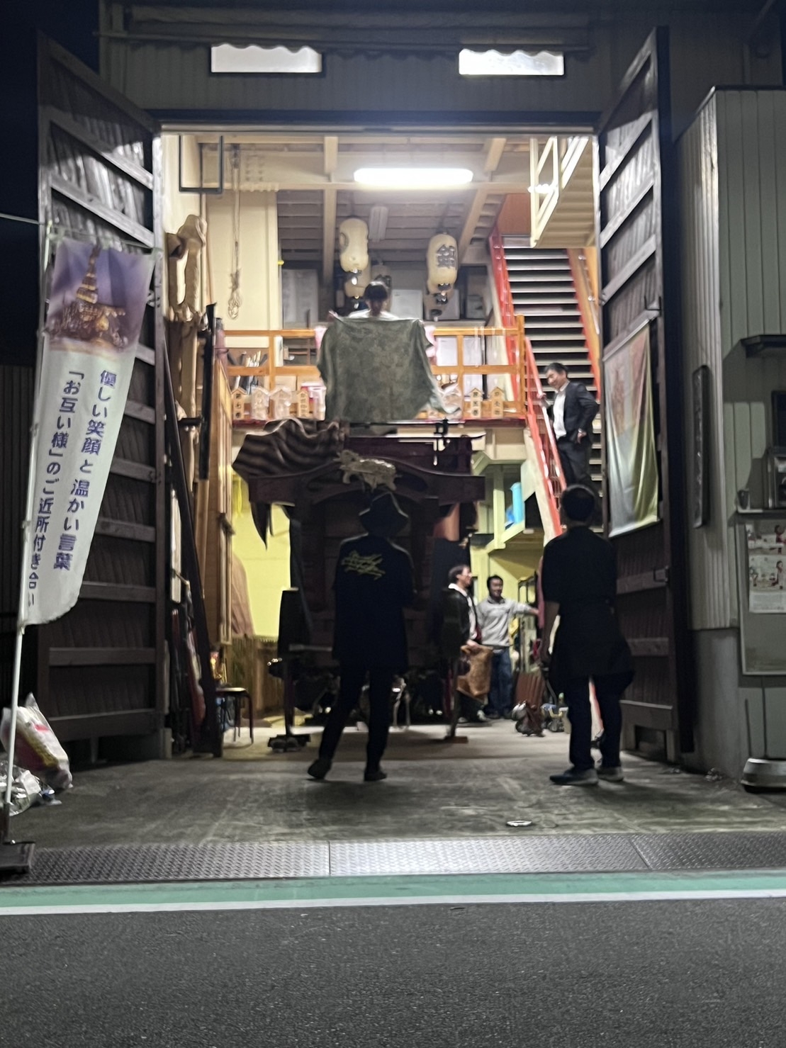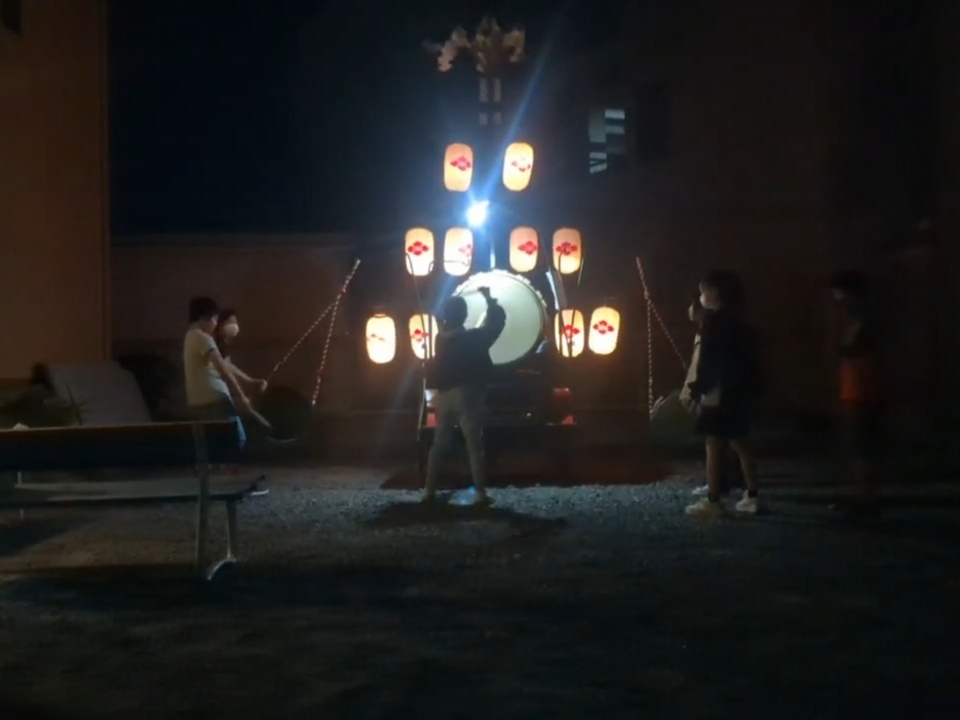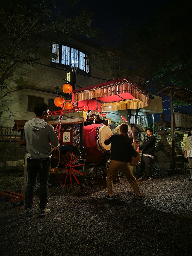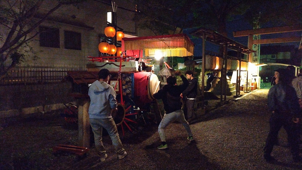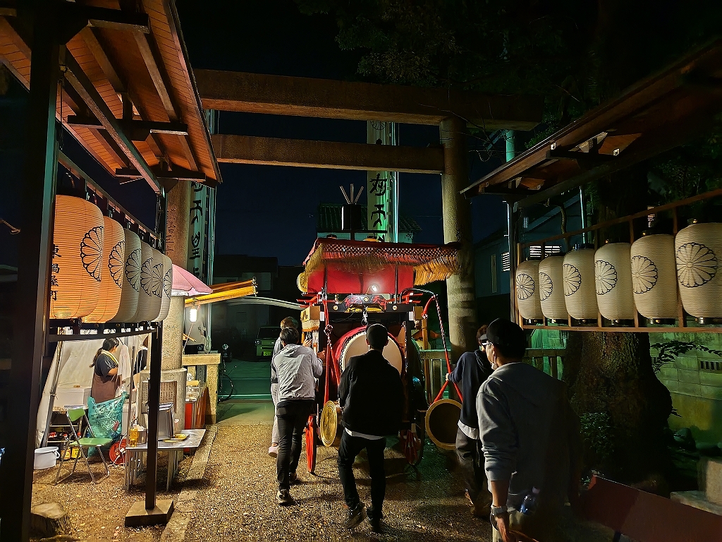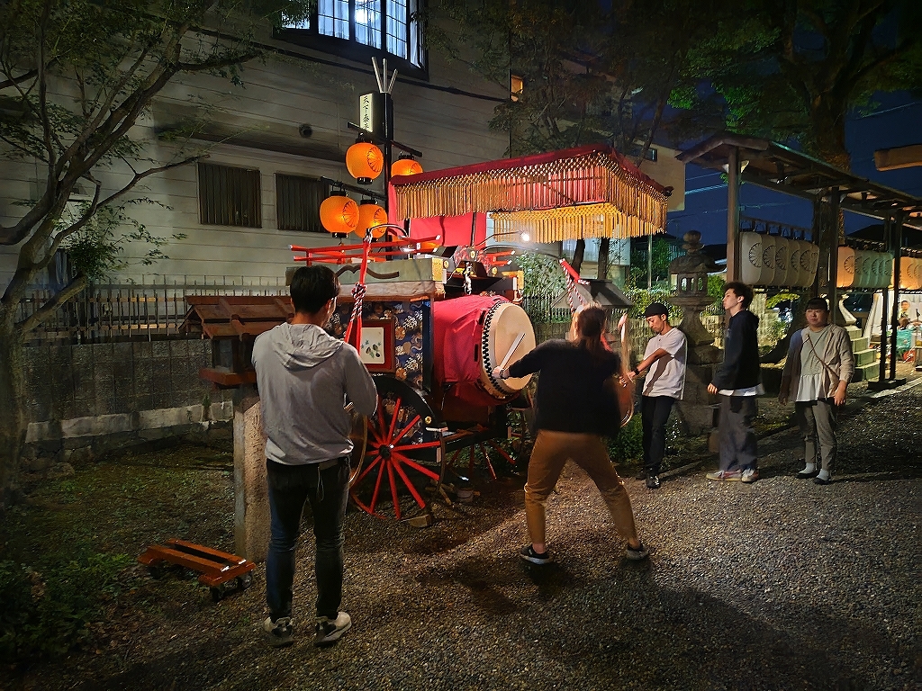午後8時半、叩き納めて祭車蔵へと戻ります。
