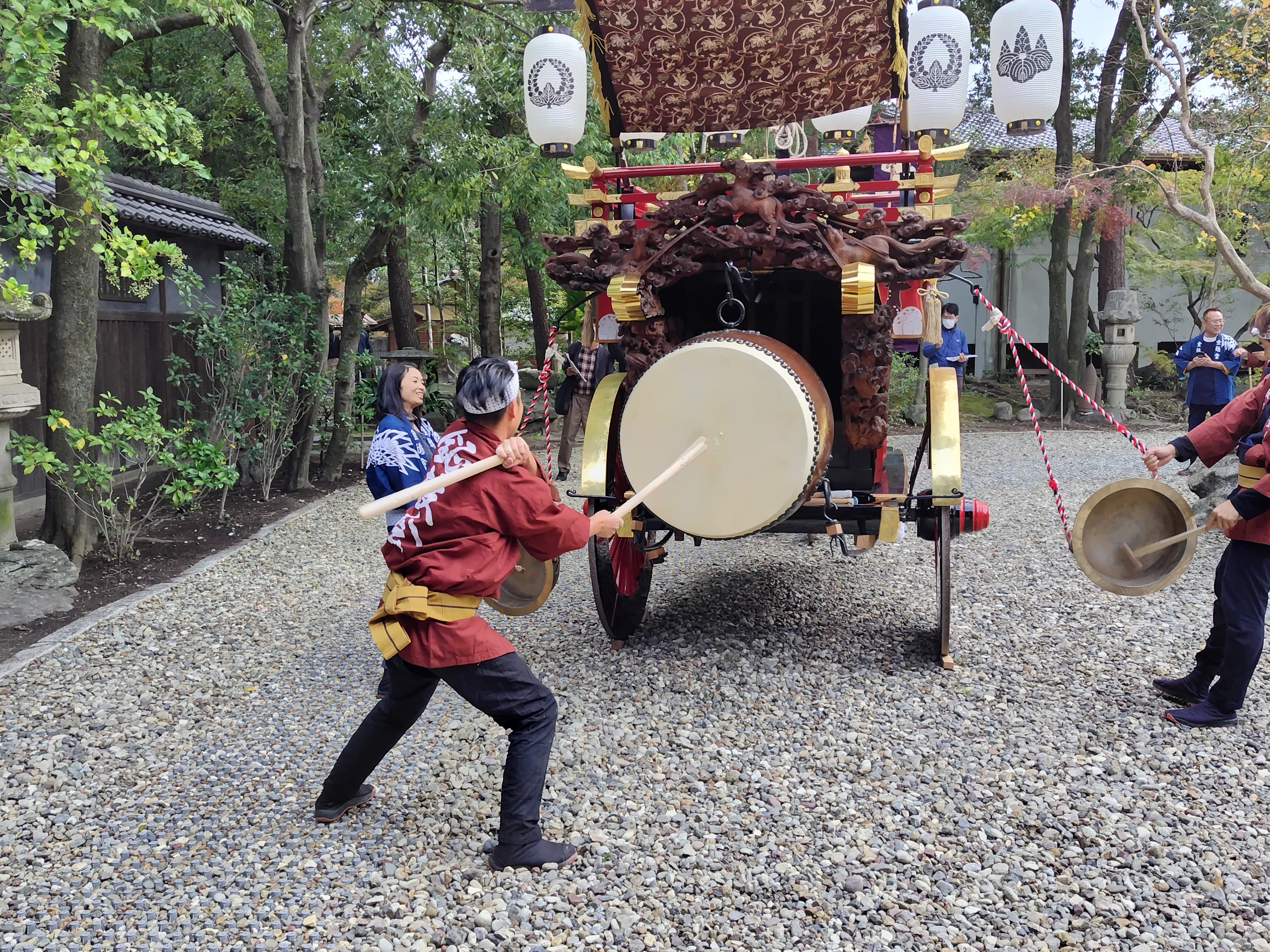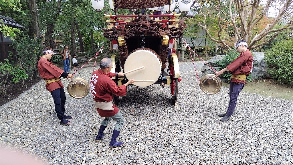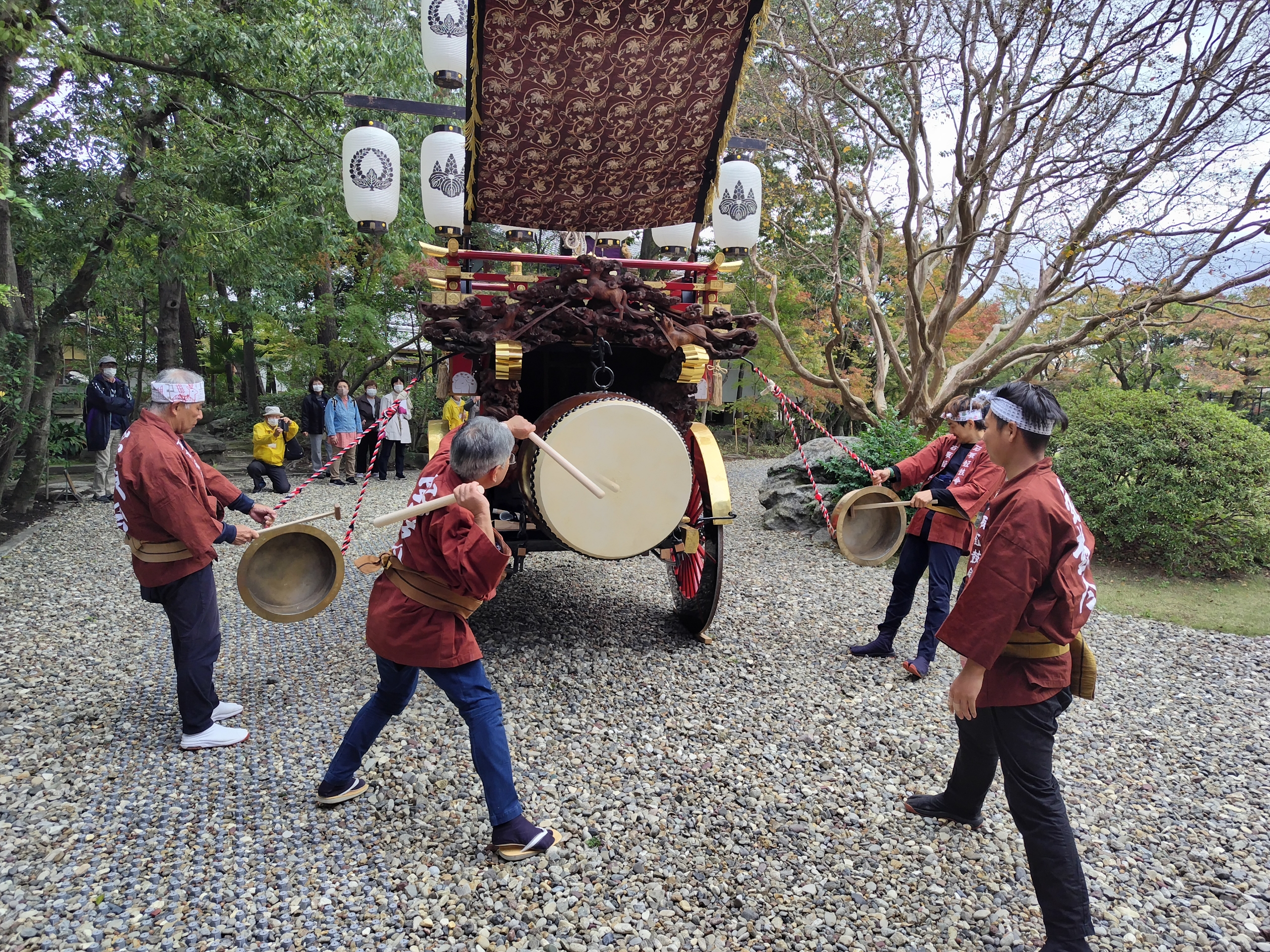 11/12 諸戸氏庭園の改修が済み、久しぶりに庭園内で石取囃子が行われました!
