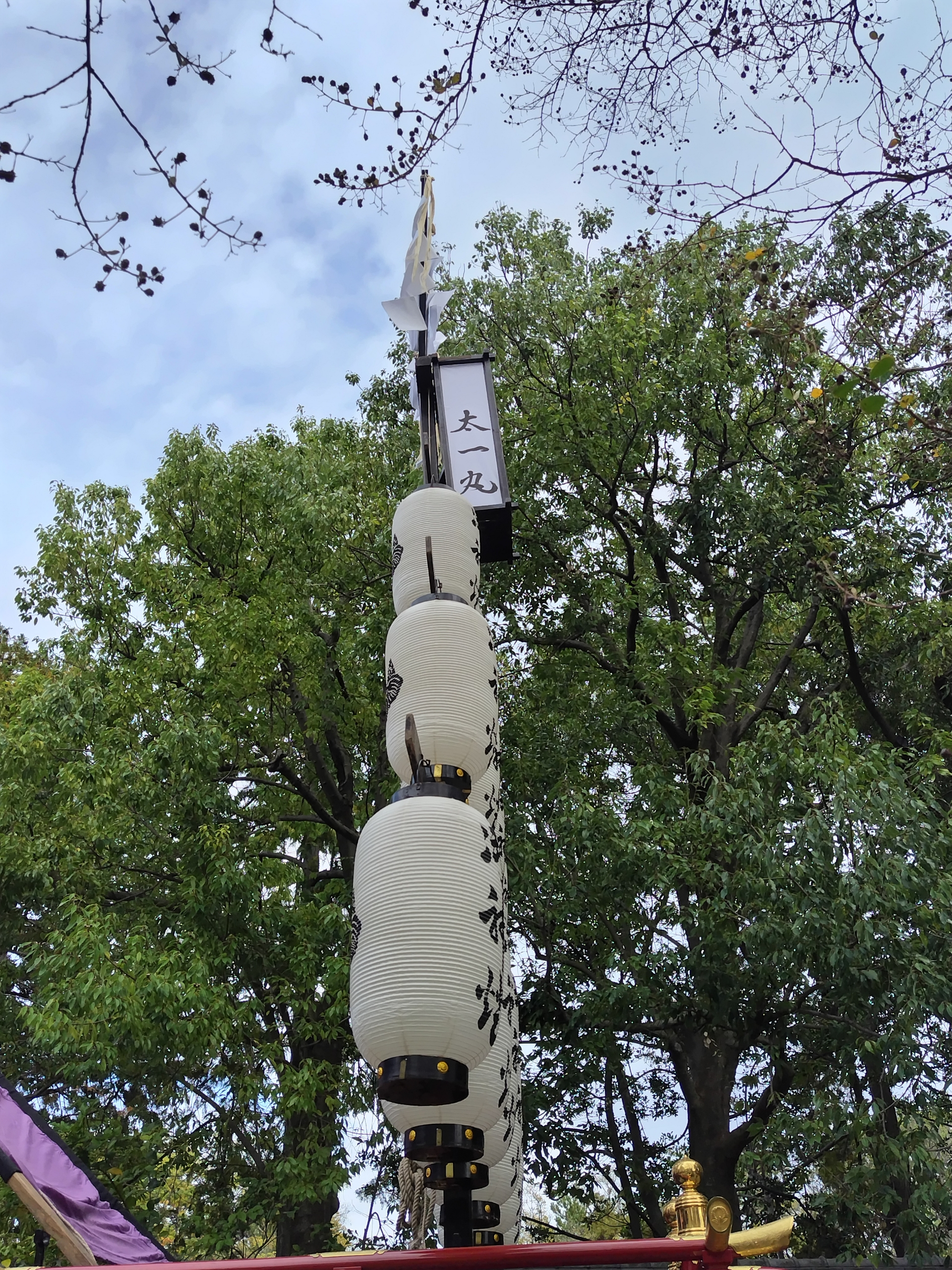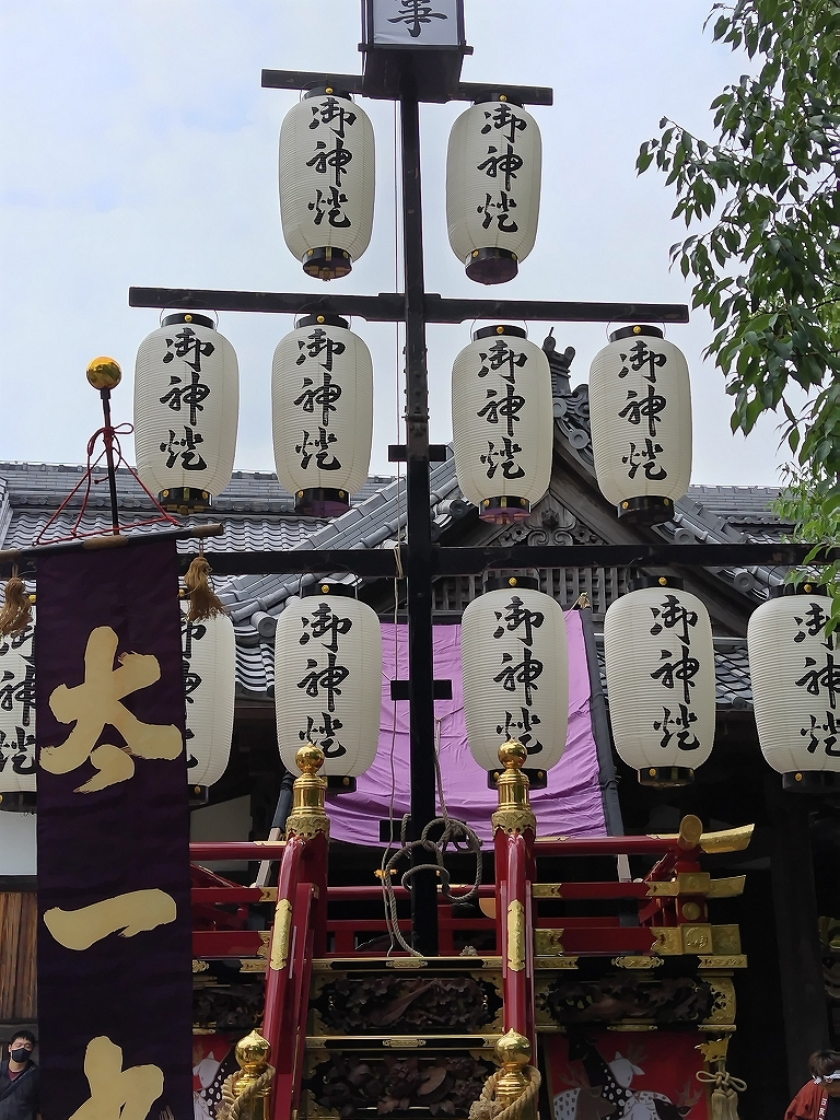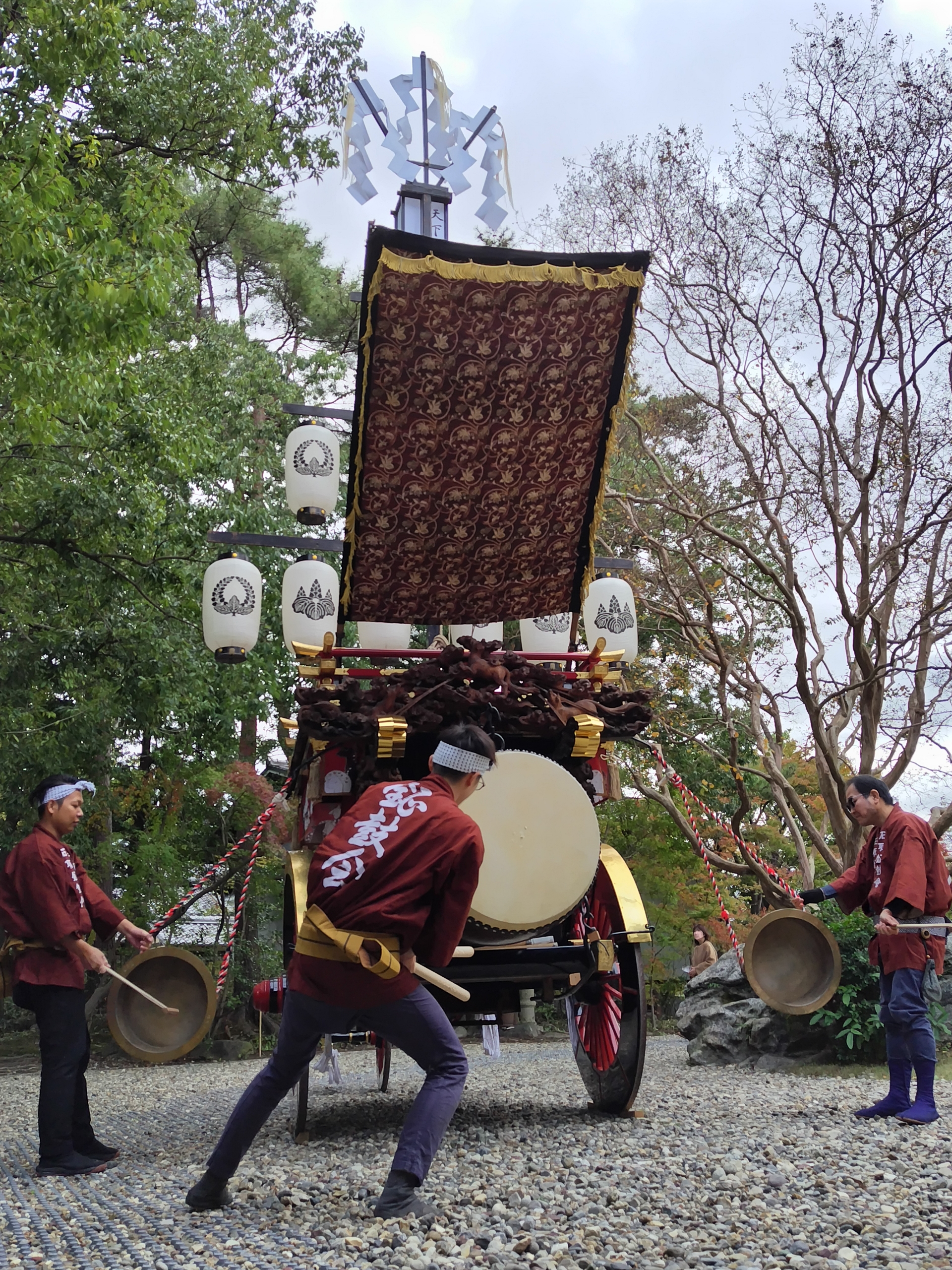 庭園内に曳き込む際は、山形十二張での飾り付けです。