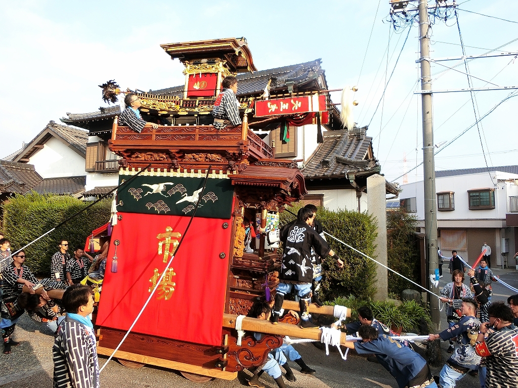 午前8時過ぎ、市場会館を曳き出します。