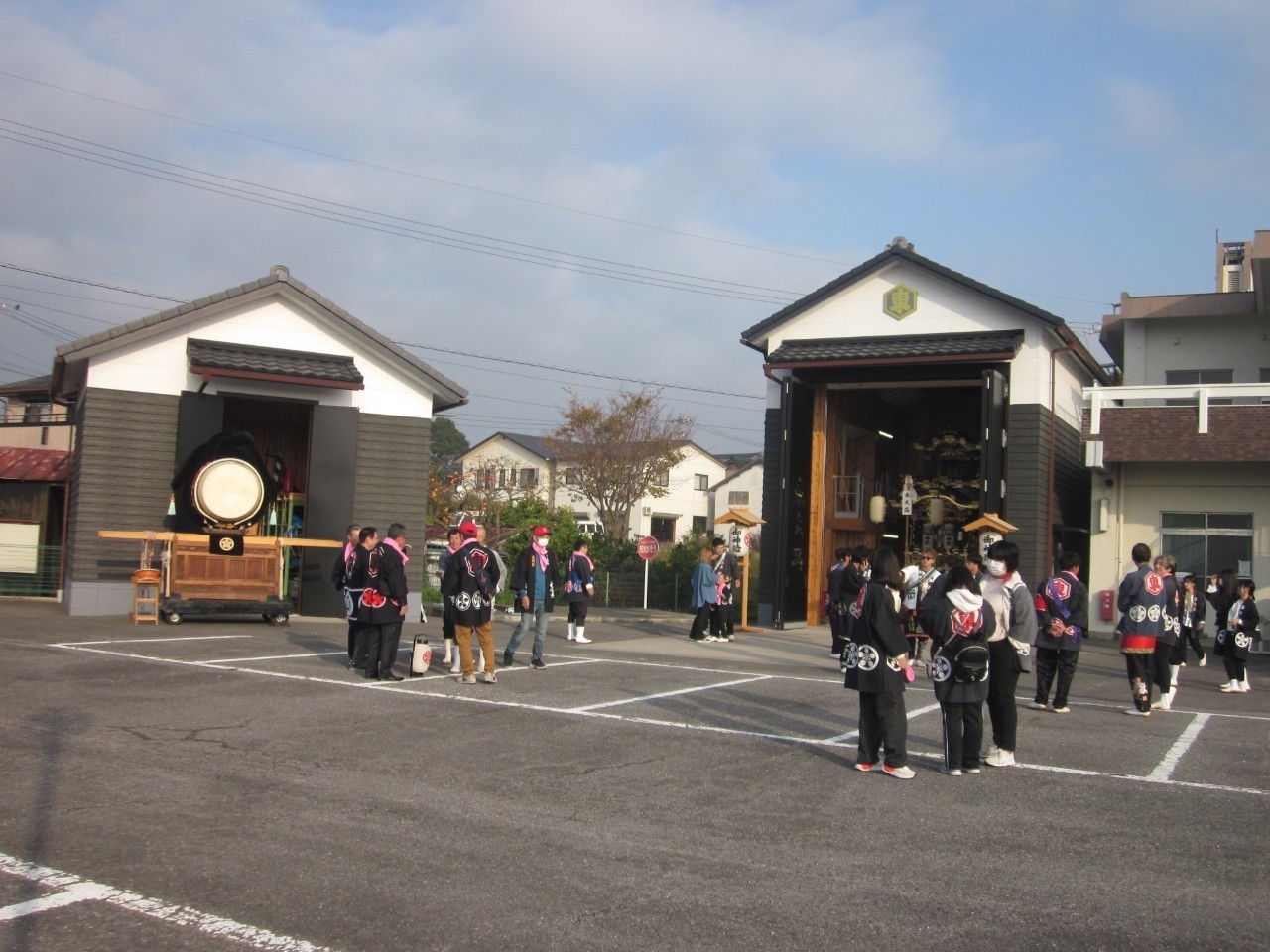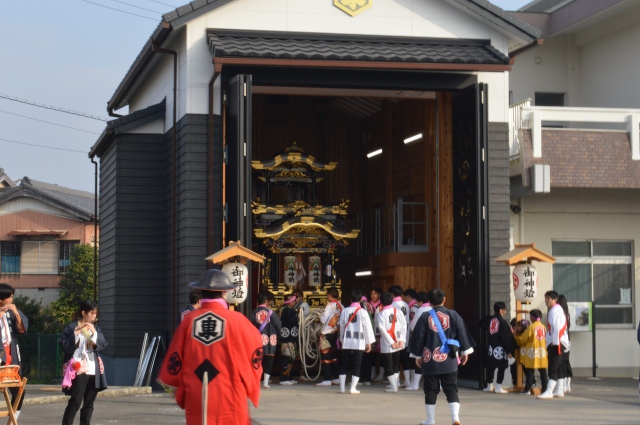 朝8時前、各地区のサヤから山車が準備されます。