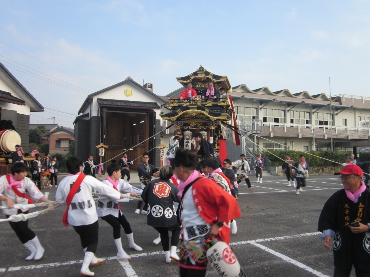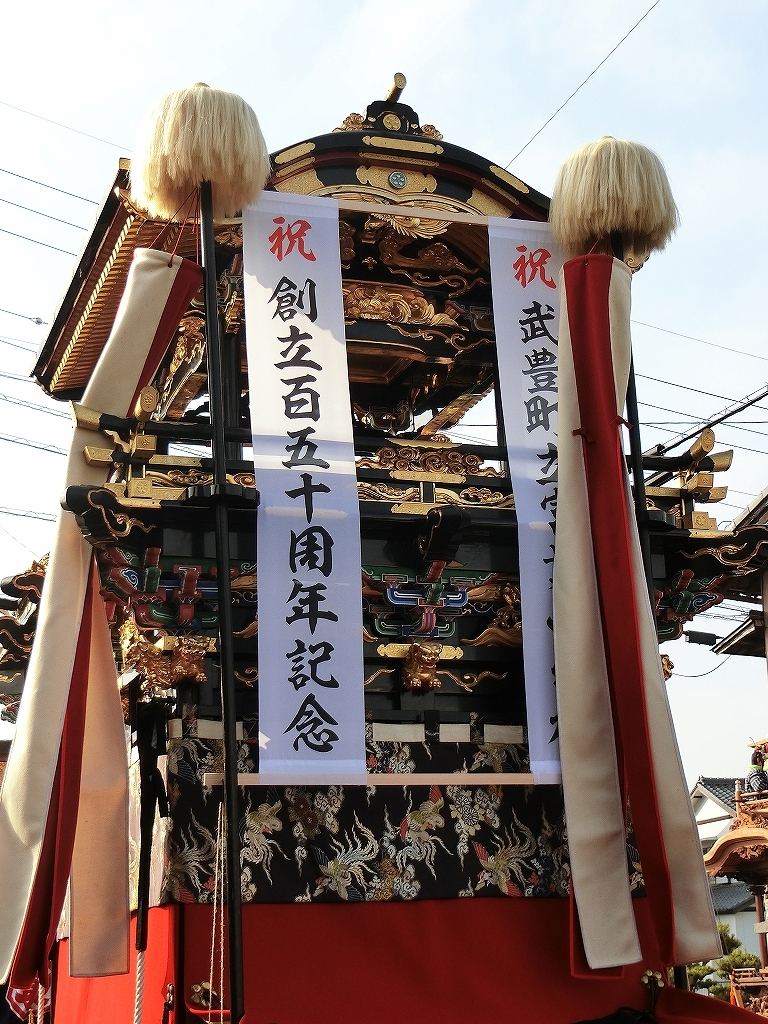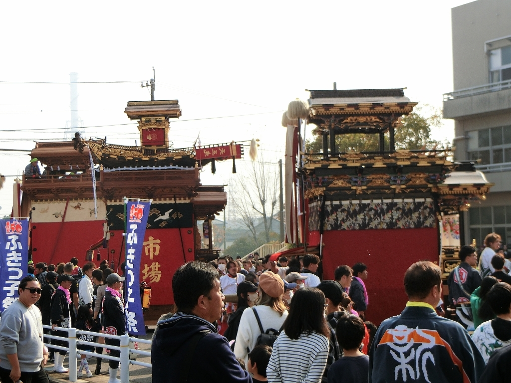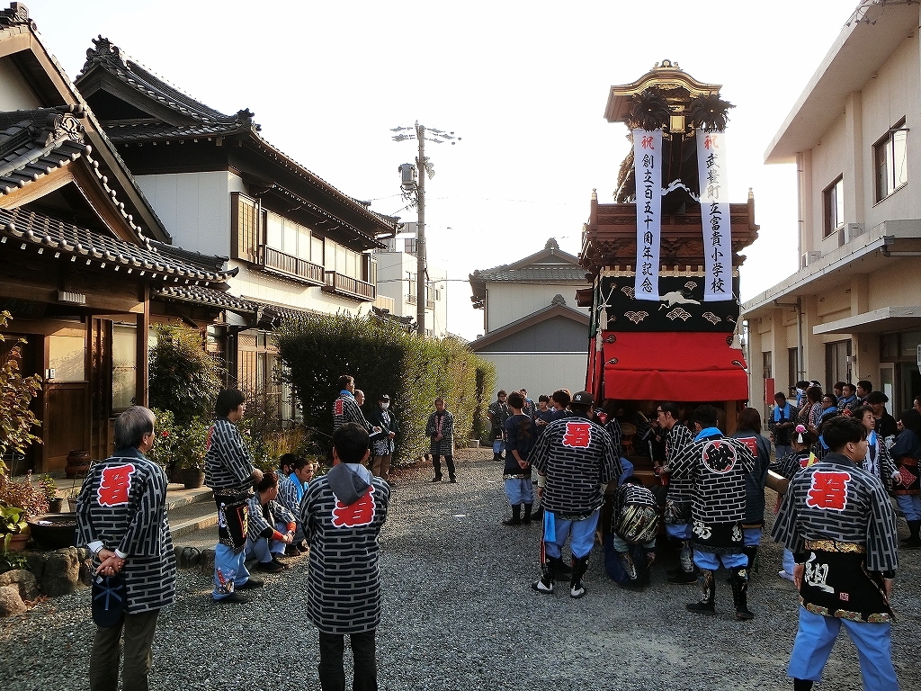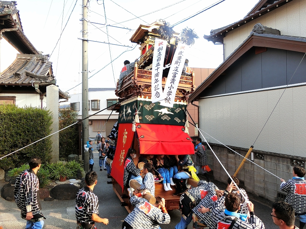 今回の富貴小学校は、旧富貴村から山車3台と神輿1基が奉祝に参加しました。