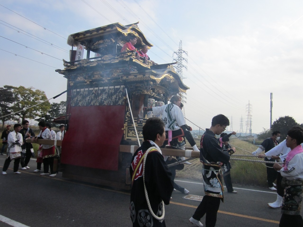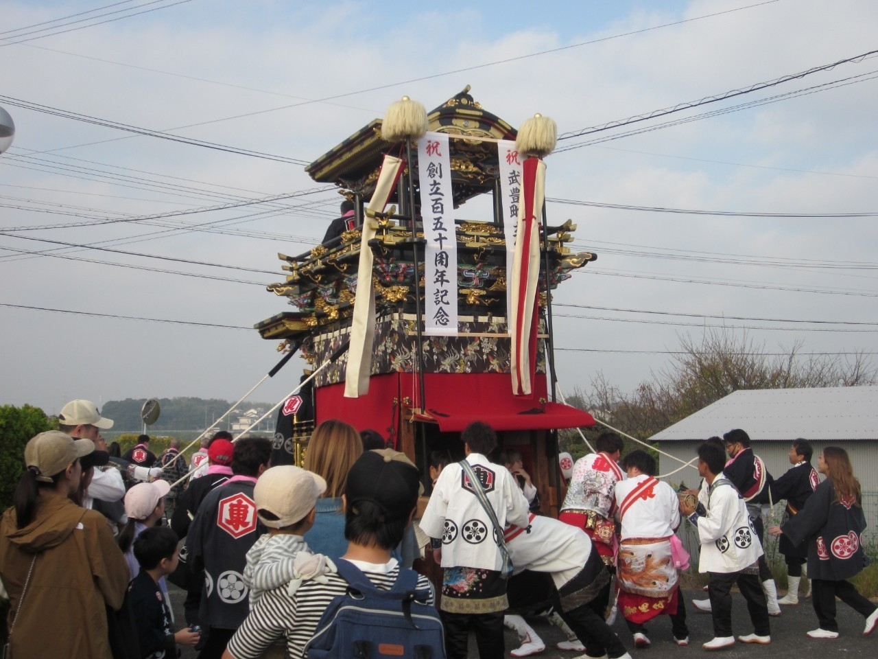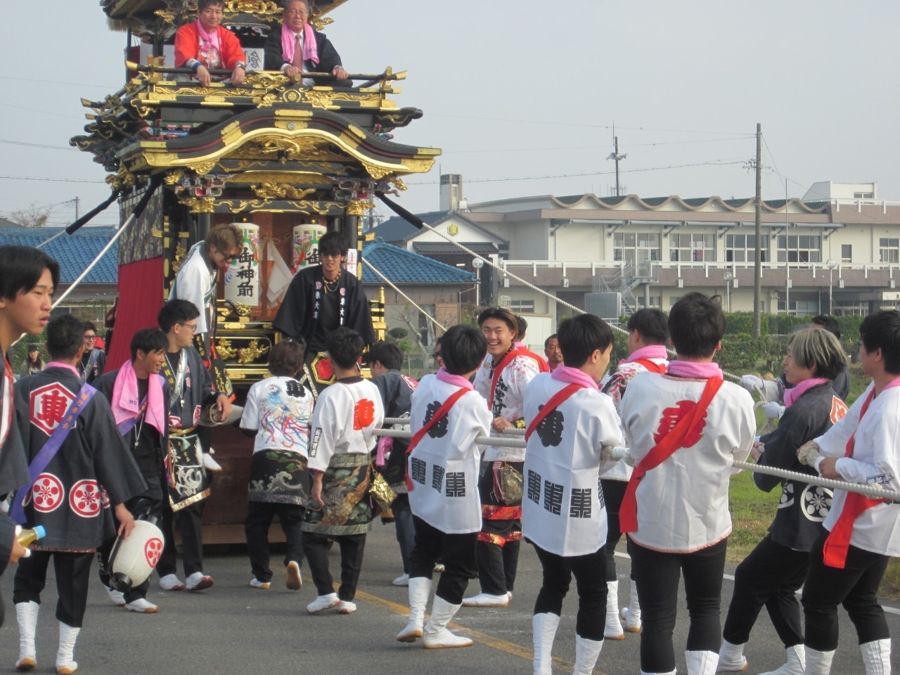 今回の富貴小学校は、旧富貴村から山車3台と神輿1基が奉祝に参加しました。