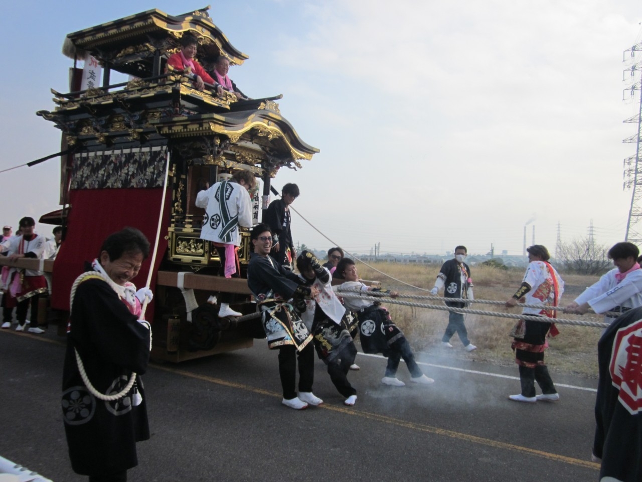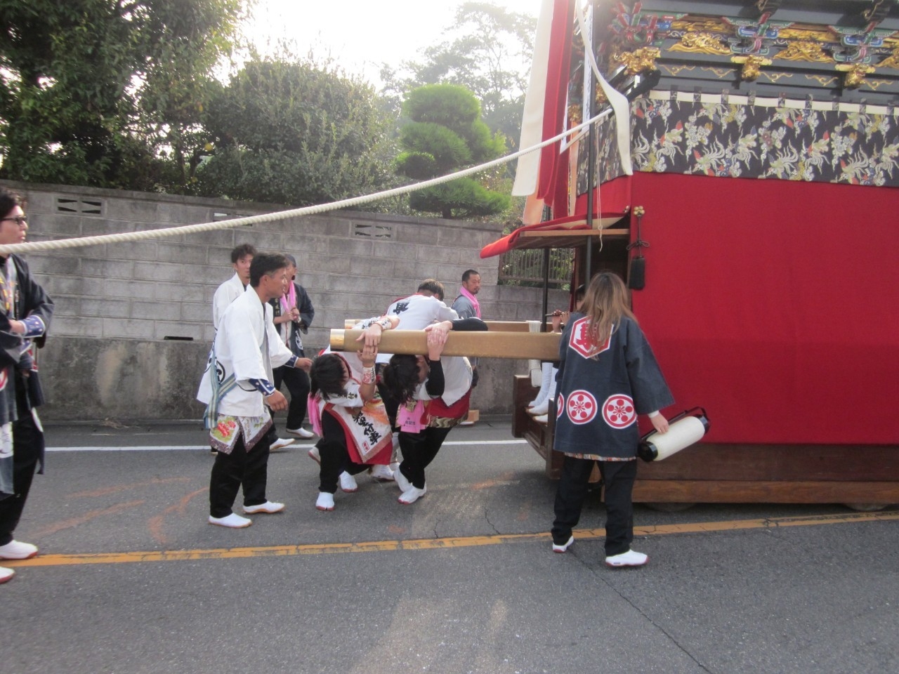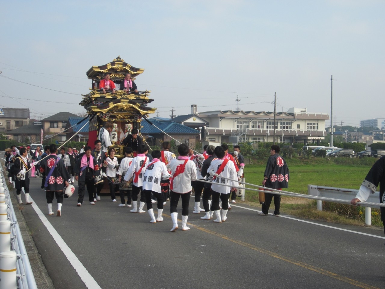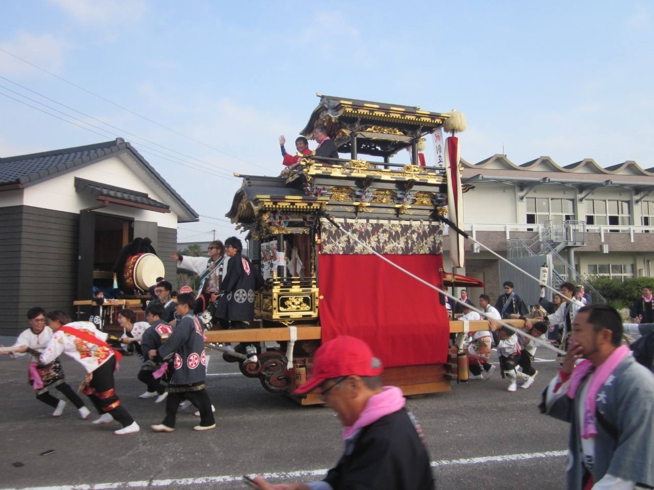 今回の富貴小学校は、旧富貴村から山車3台と神輿1基が奉祝に参加しました。