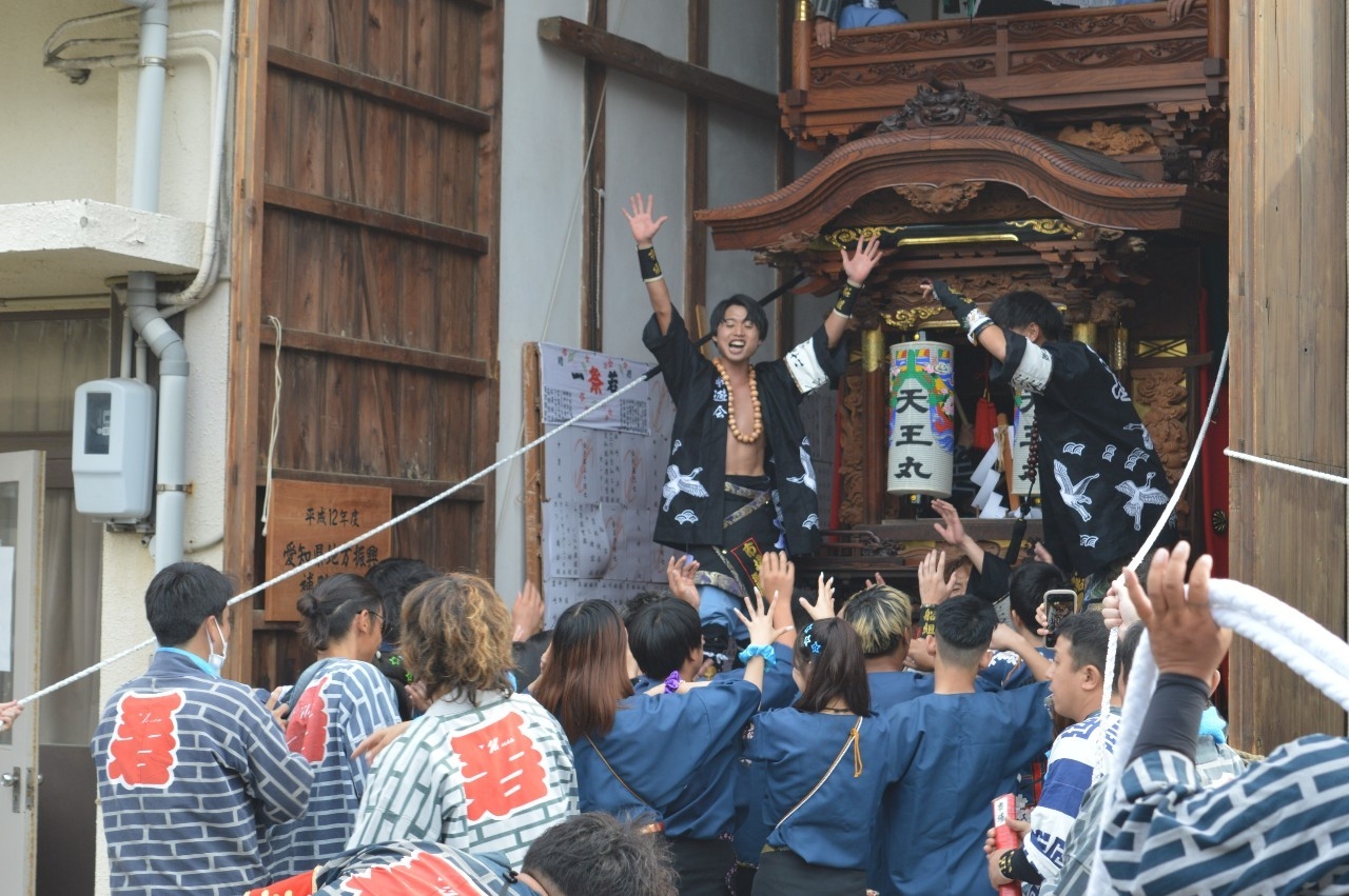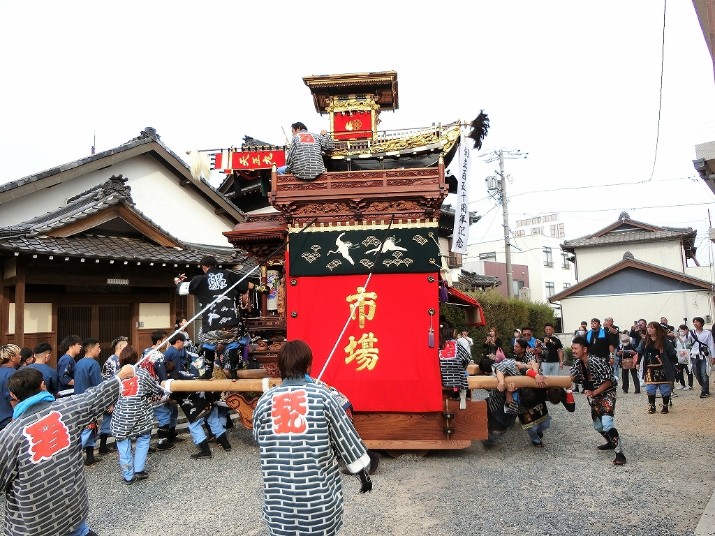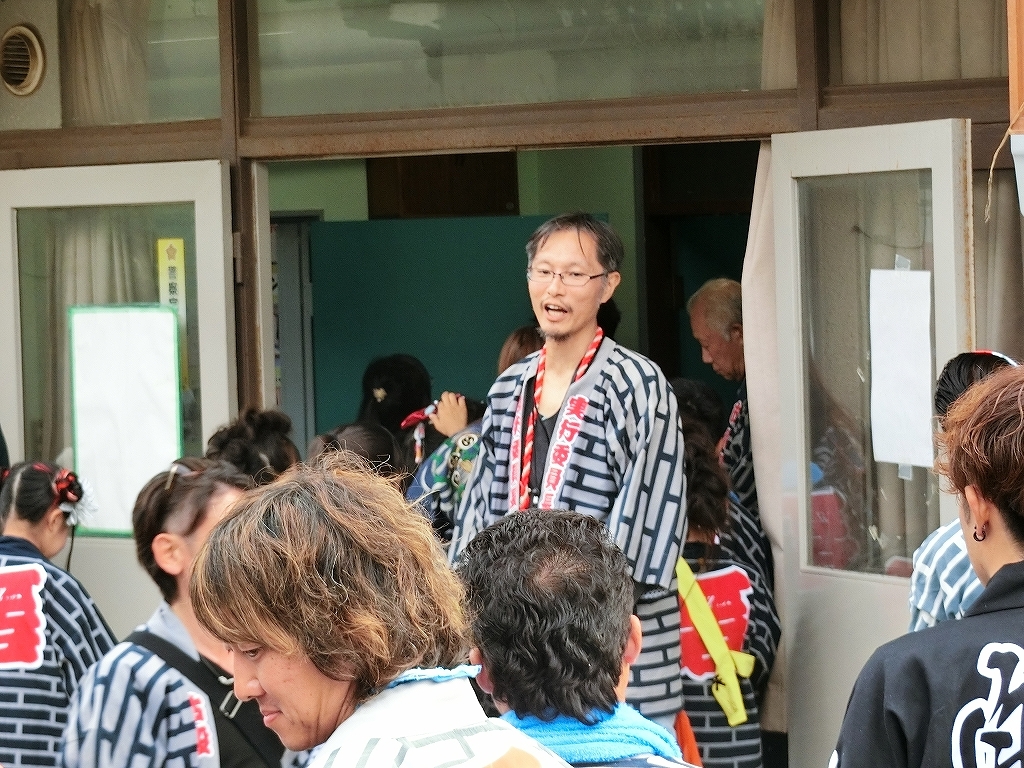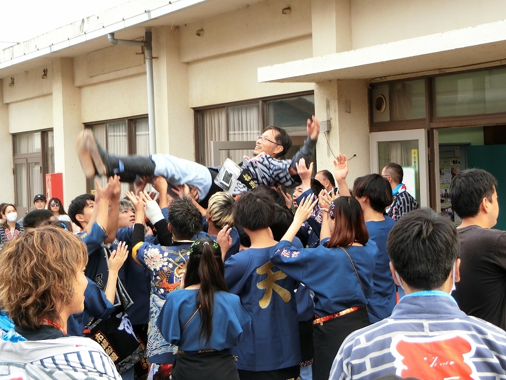 市場会館の前では、実行委員長の挨拶のあと、胴上げが行われました。