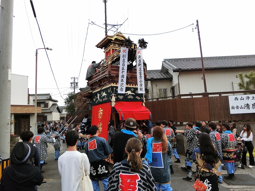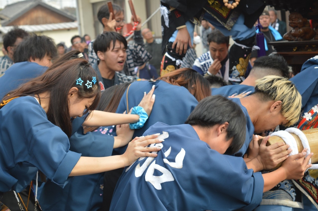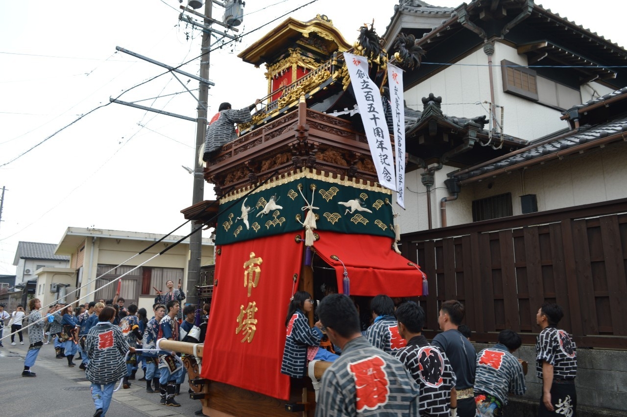 市場会館の前では、実行委員長の挨拶のあと、胴上げが行われました。