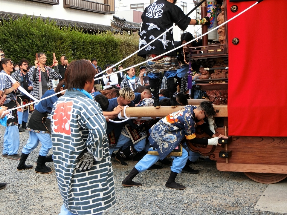 成岩式に後ろを向き、後見の指示を見ながら後楫方が微調整します。