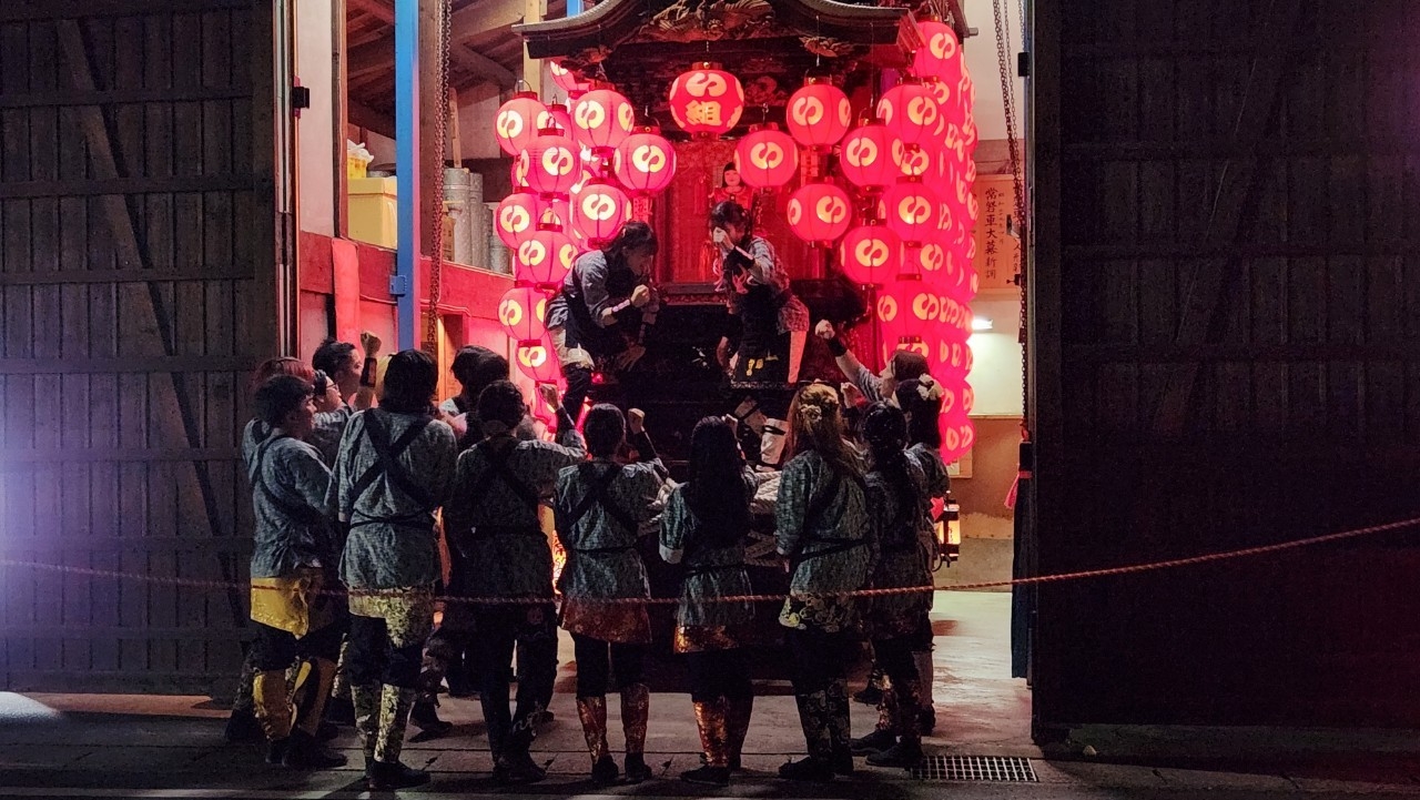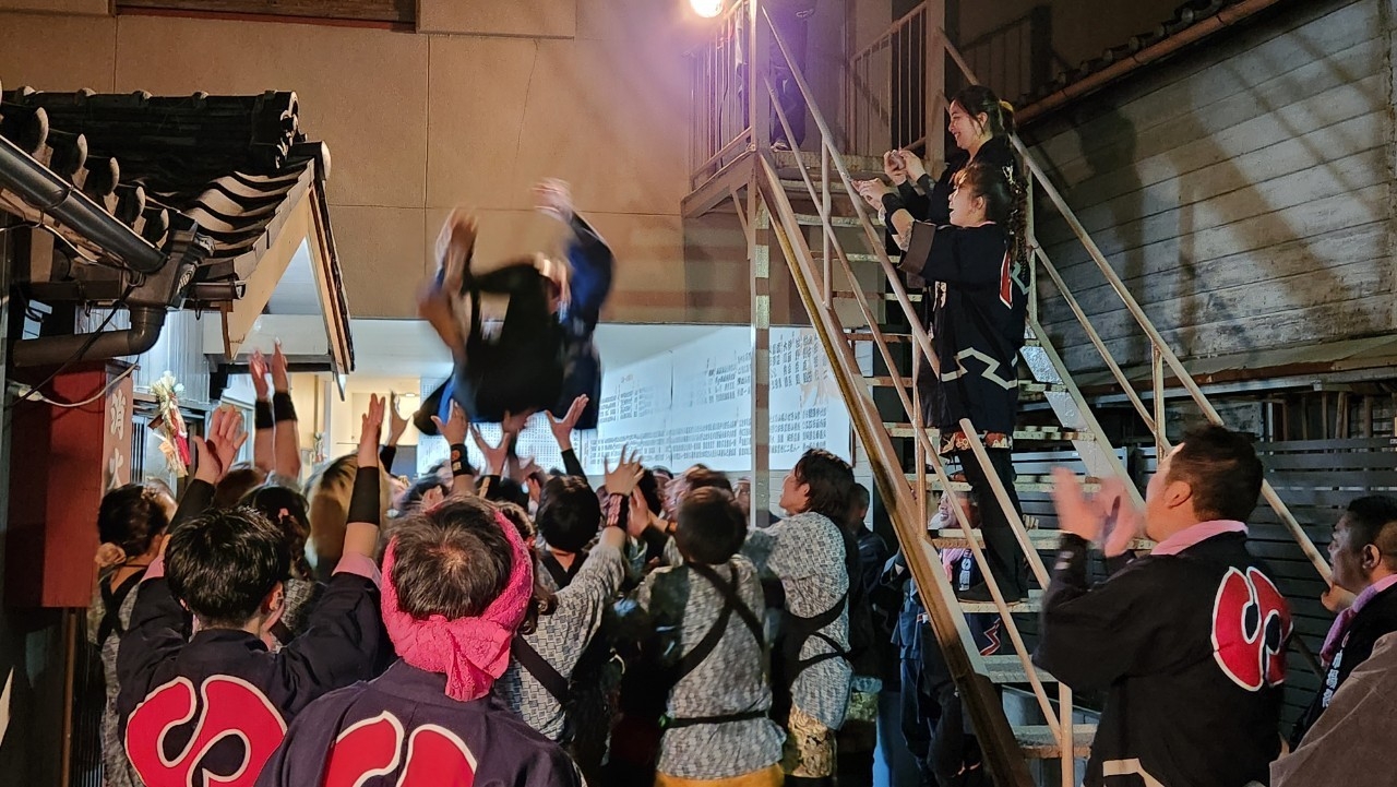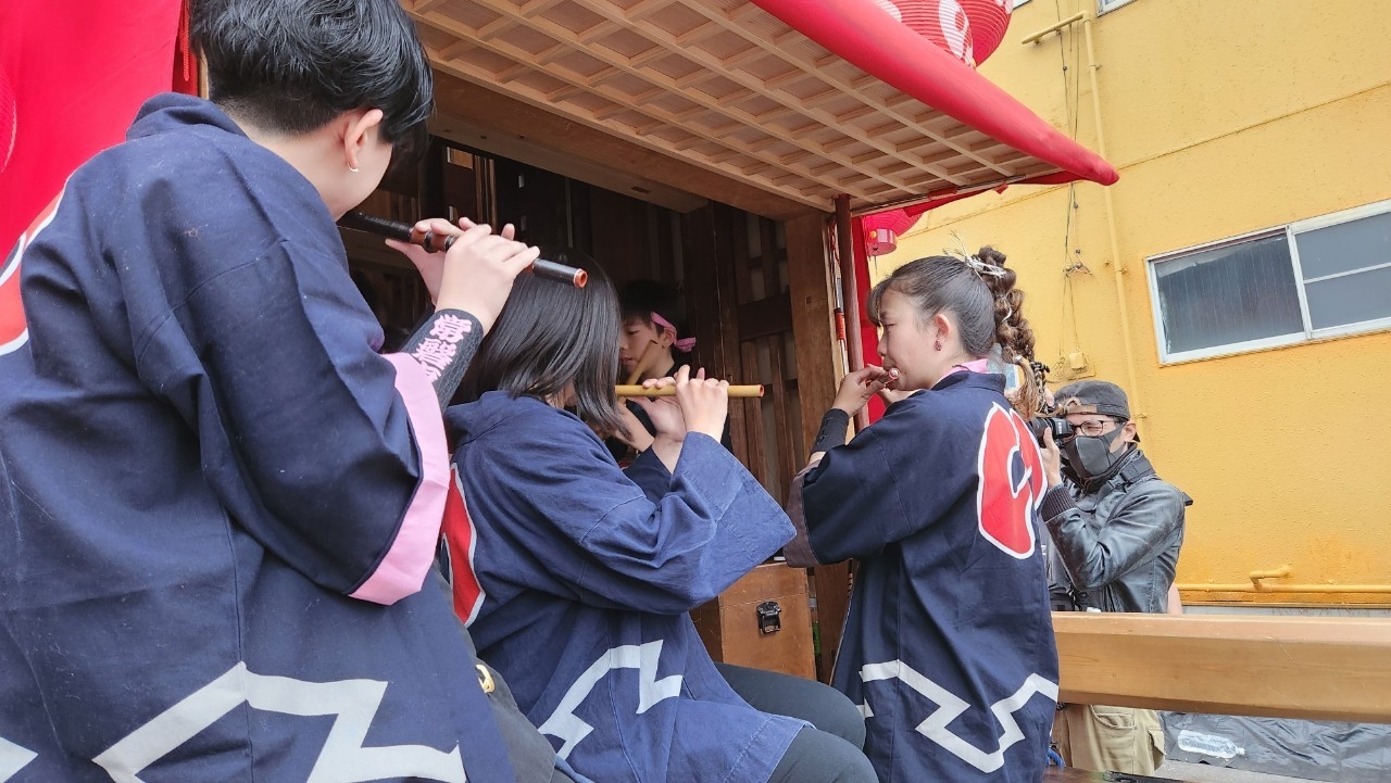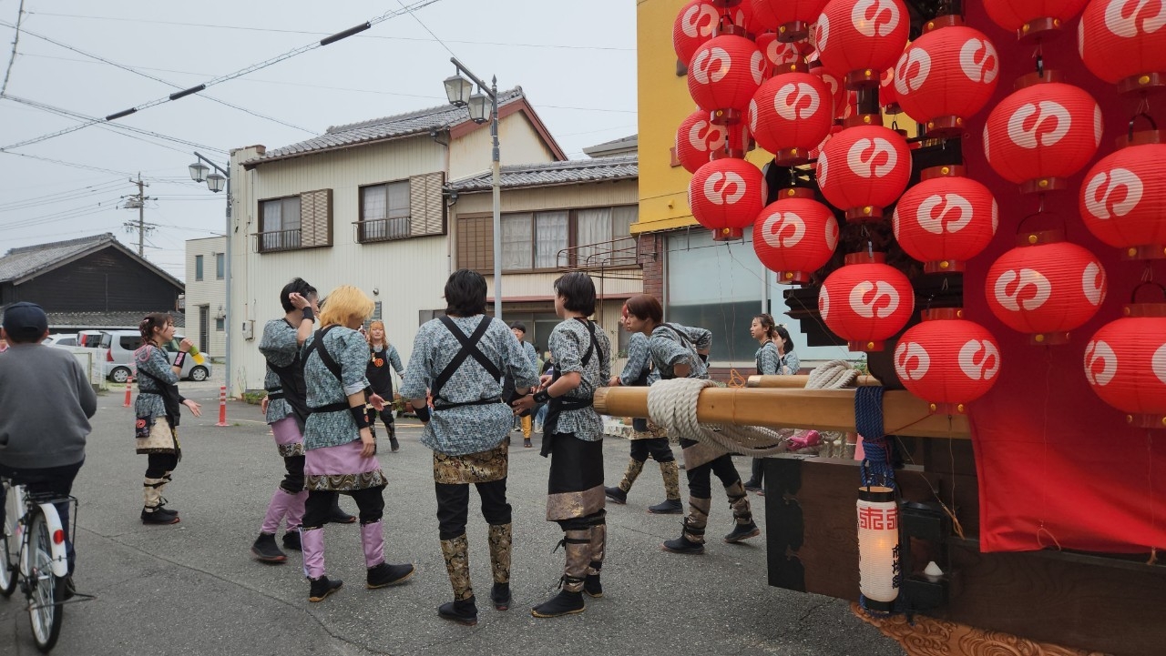 自組の曳き初めを終えた、奥条の若衆が遊びに来ました。