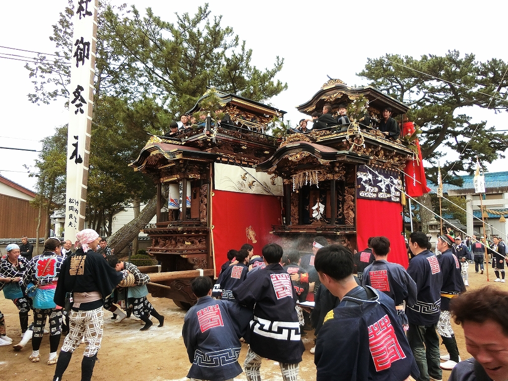 八幡社では、2台の山車が並んでいました。
