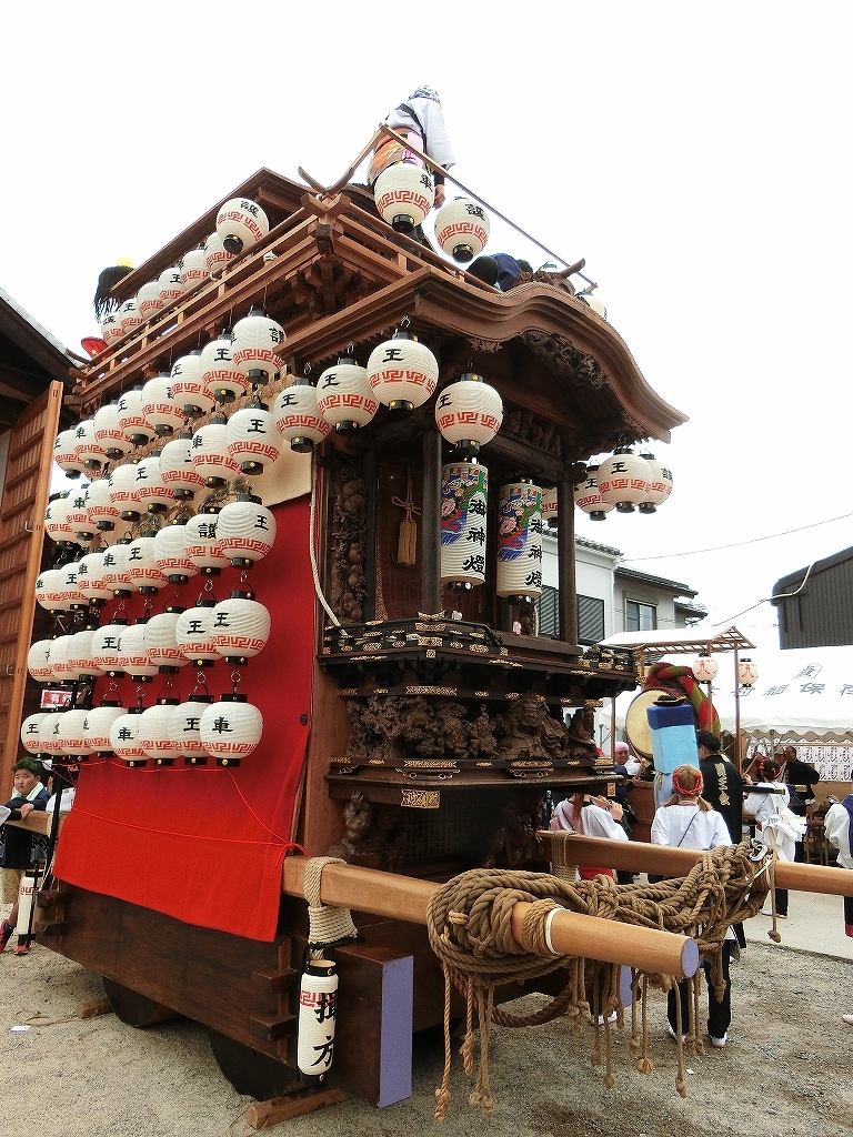 提燈を付けた2台の山車が揃いました。