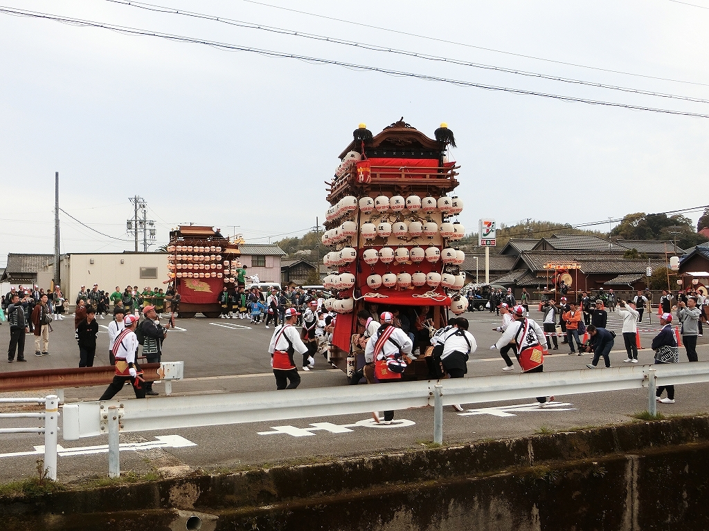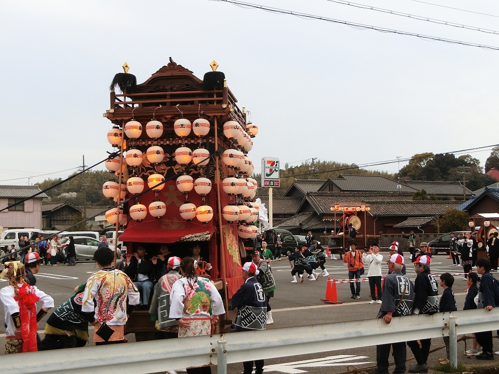 先に出発した迎え太鼓は、セブンイレブンの駐車場にありました。