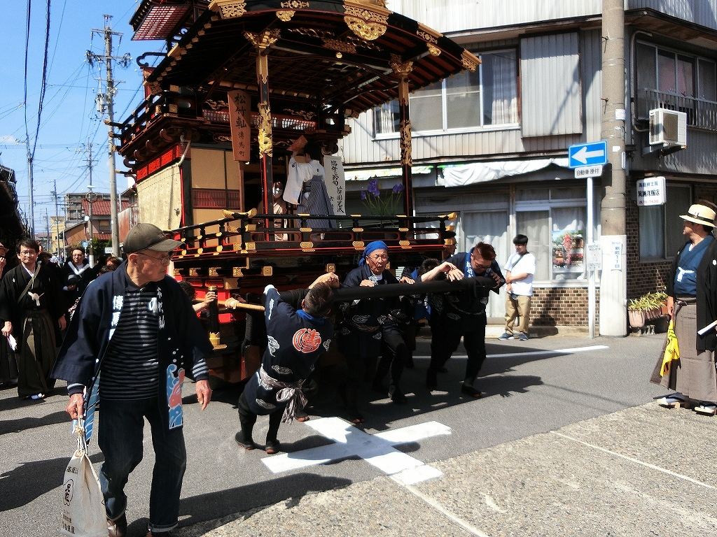 新町界隈は道が狭いため松竹軕が道を譲り、先に相生軕を通しました。