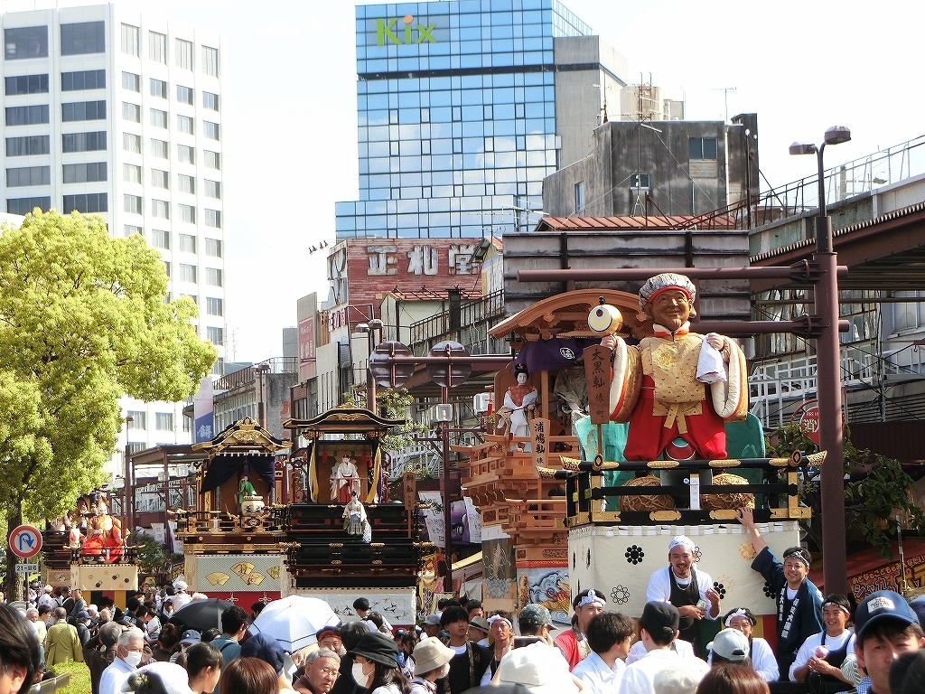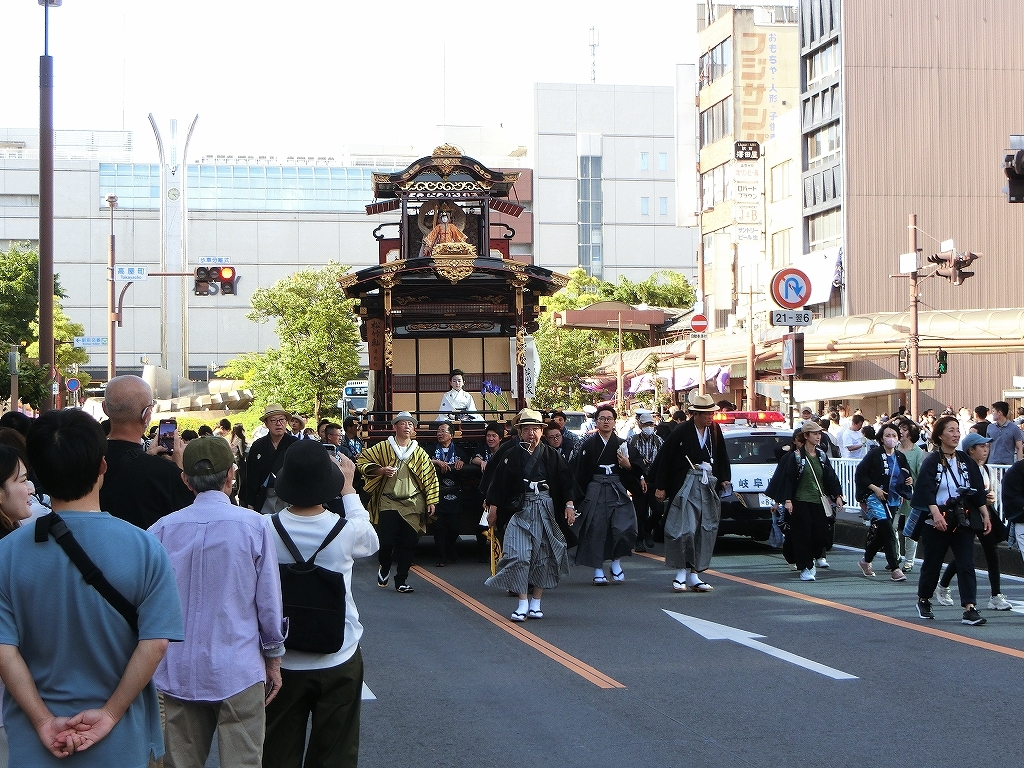他軕が揃った後、松竹軕のみ大垣駅前を曳いていました。