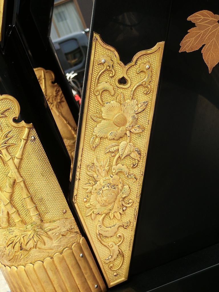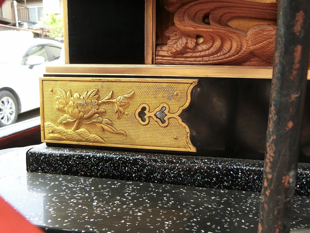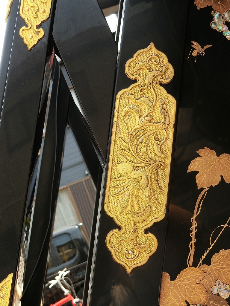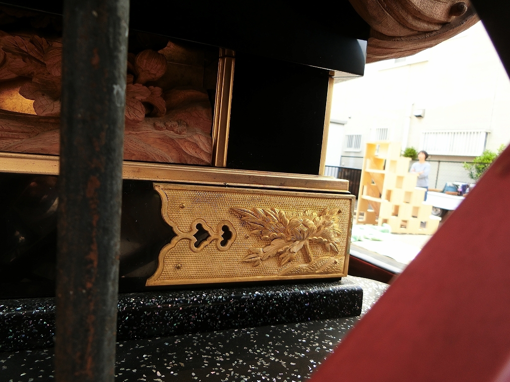 主に祭車前部に平成3年、田口俊雄により錺金具が施されました。