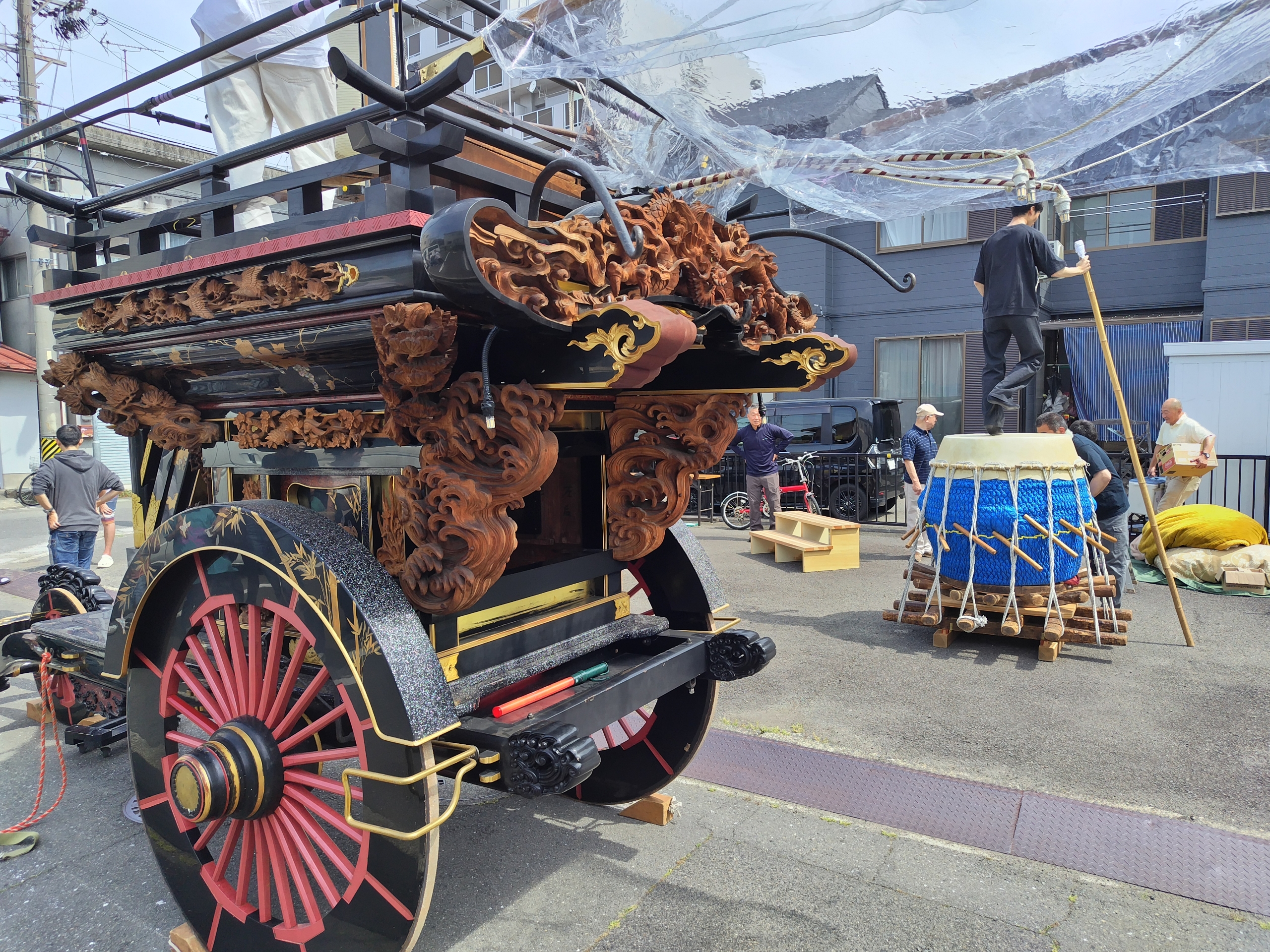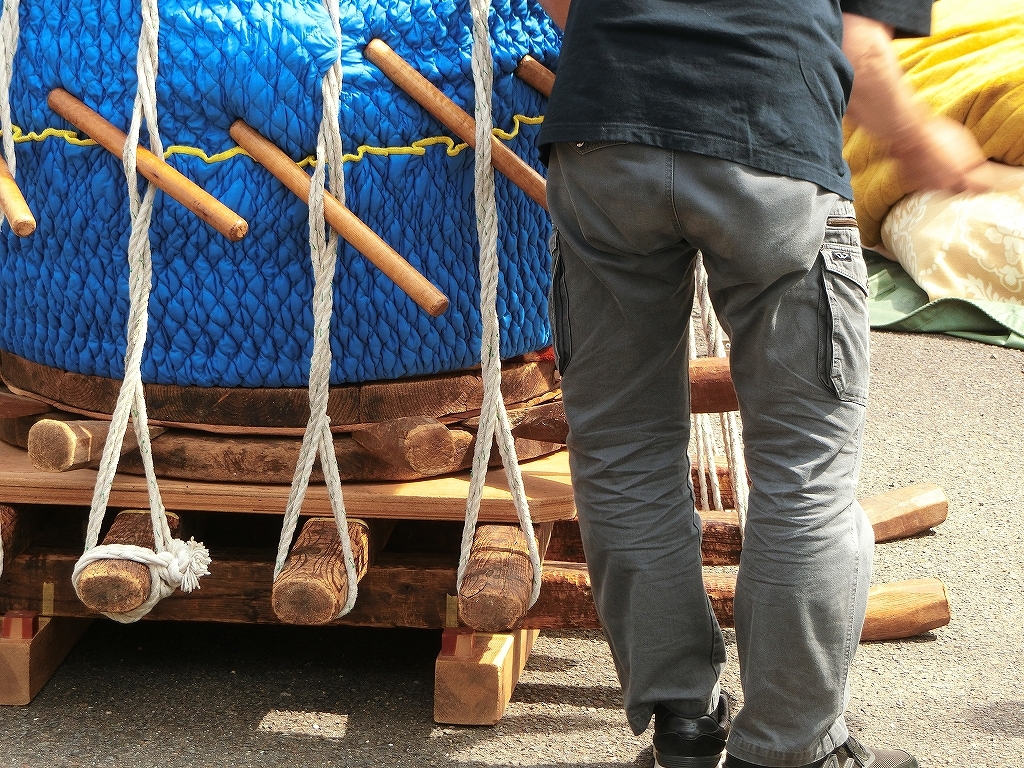 というのも、雨装束の採寸を行うためで、採寸後には大太鼓を取り付けるようです。