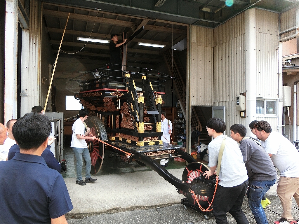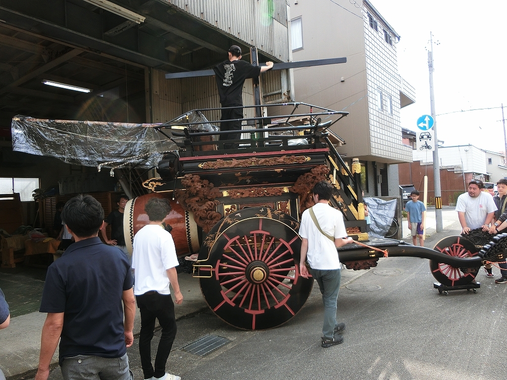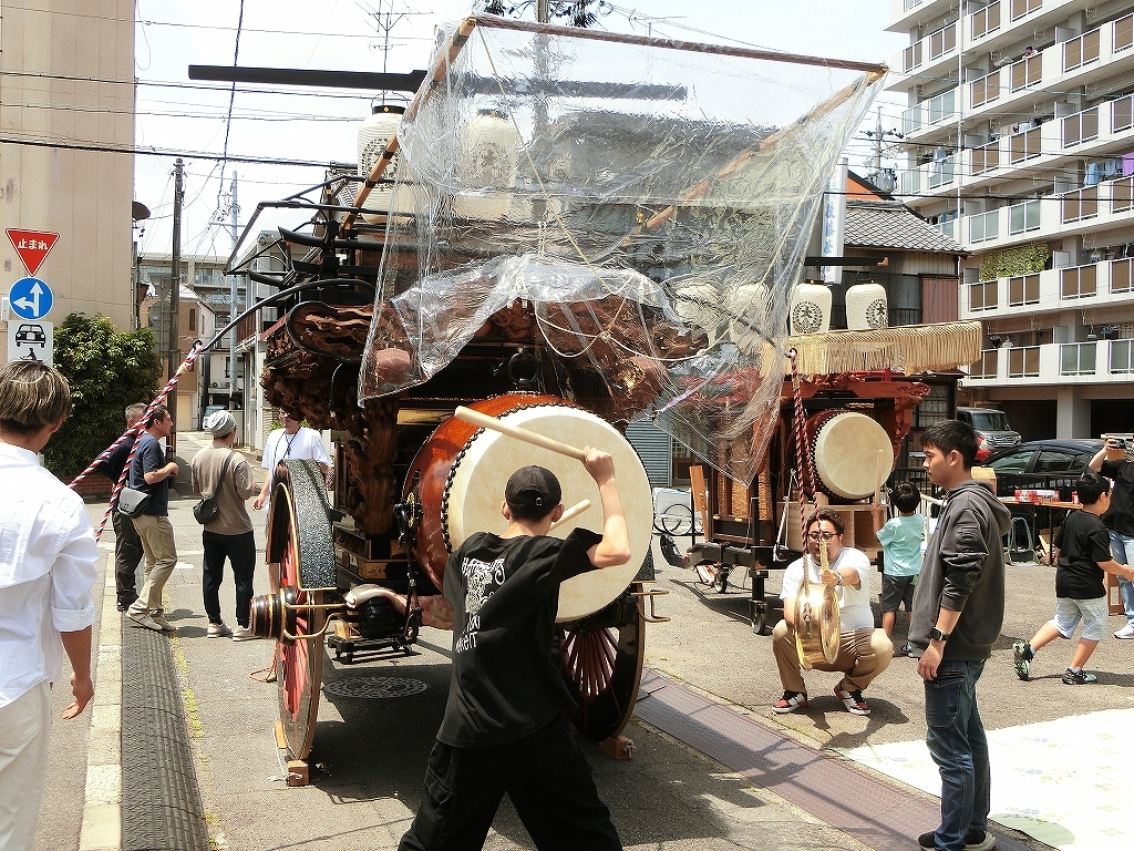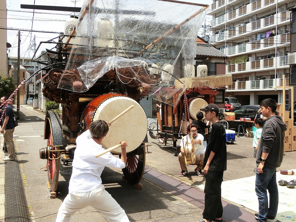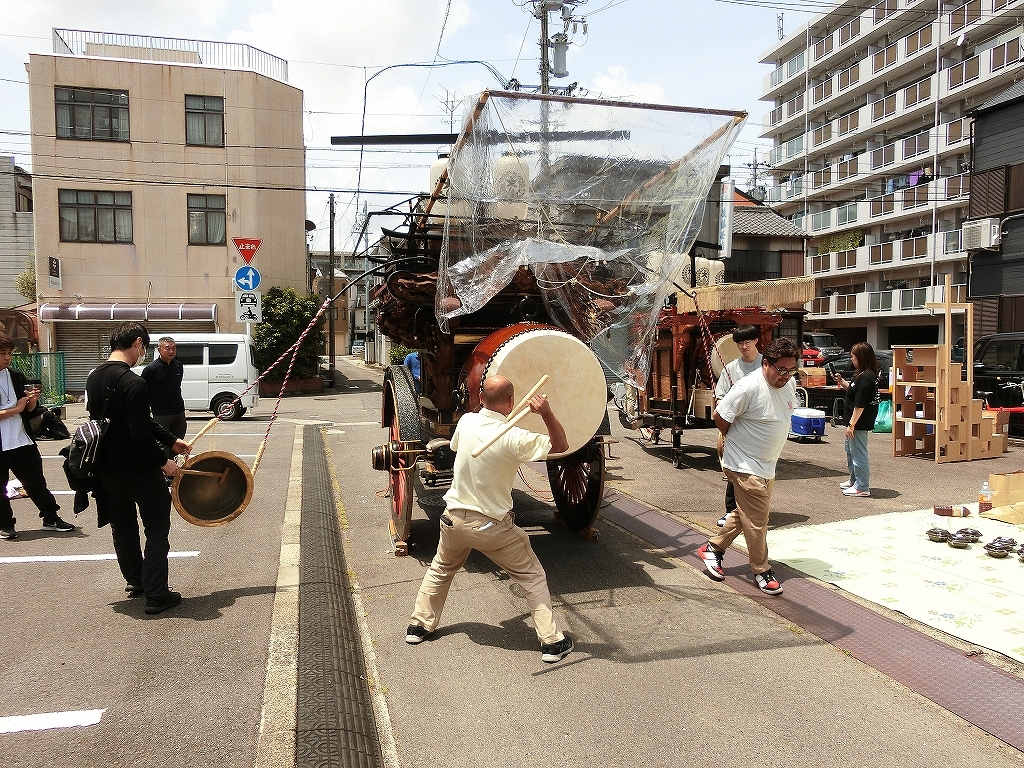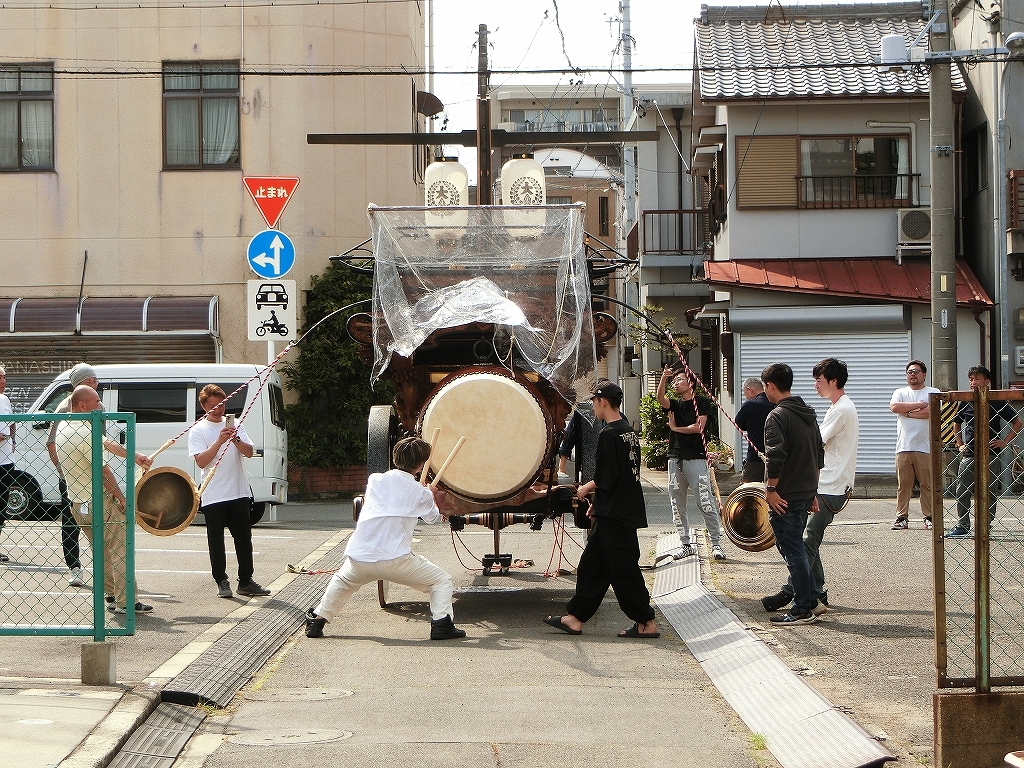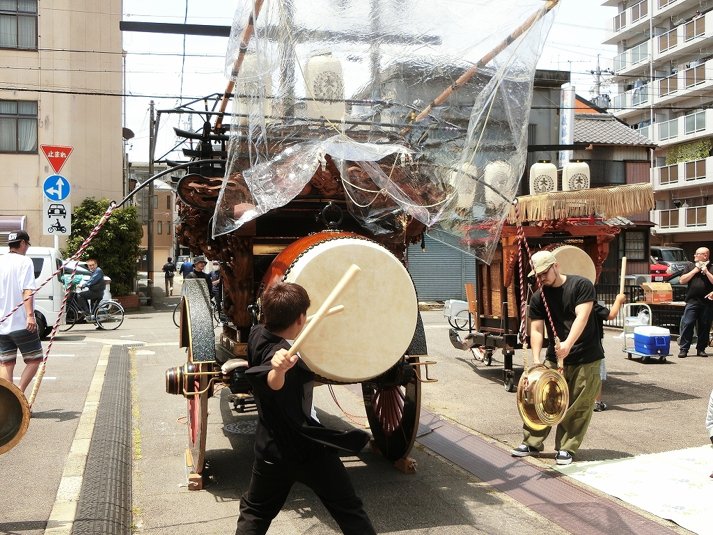 さて、太鼓の皮が伸びるにつれ石取感が出てきたのか、均車で青年会も叩きはじめました。