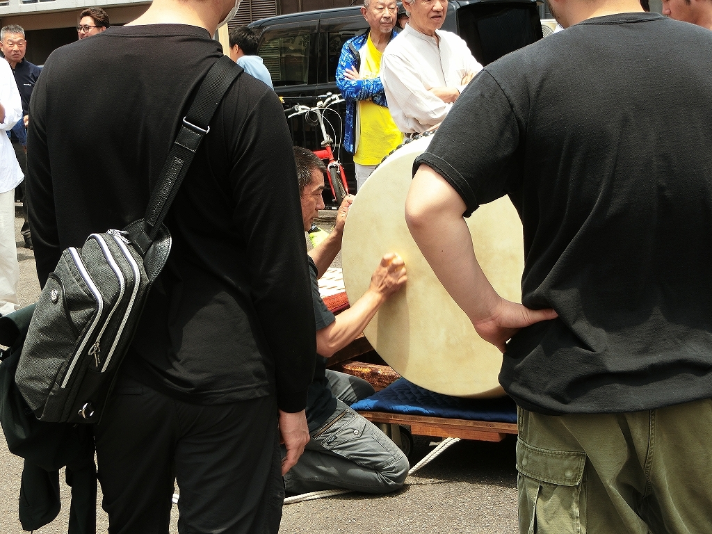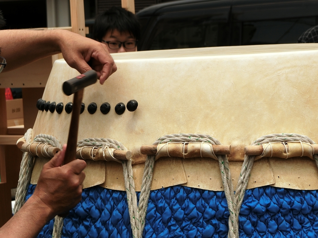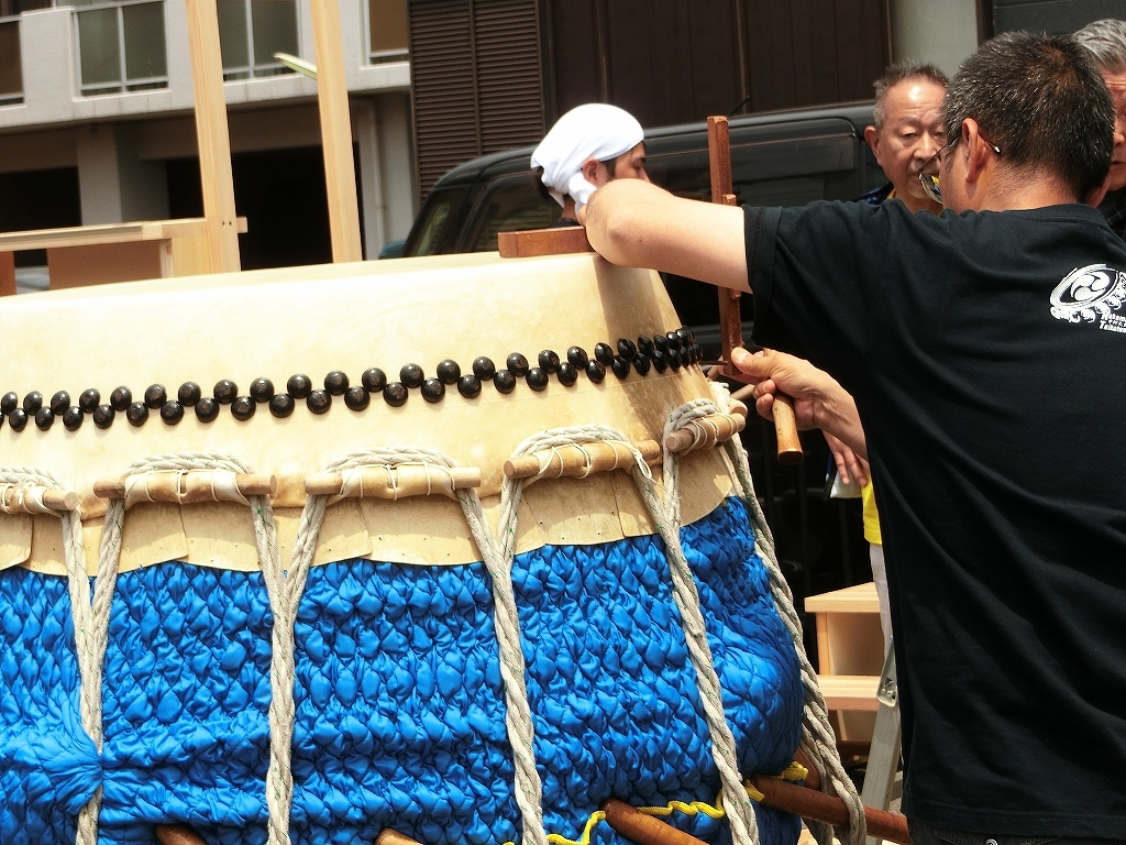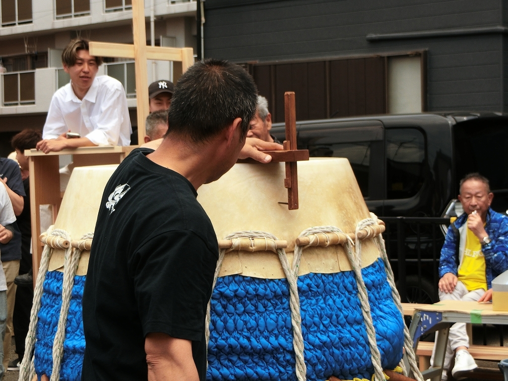 東矢田町でも太鼓の張り替えが午後から行われました。