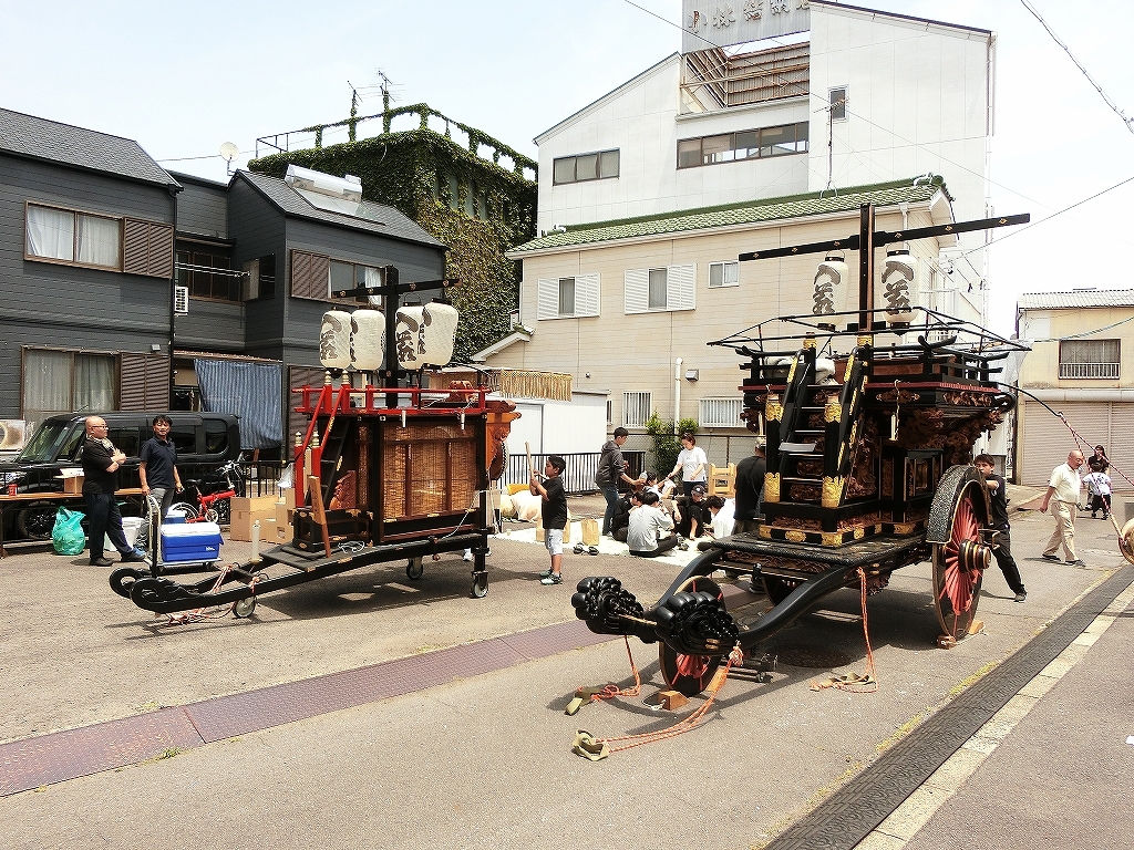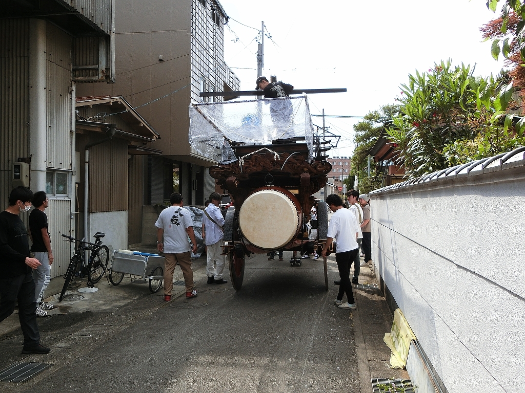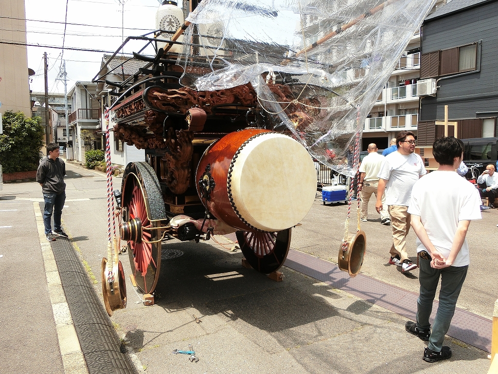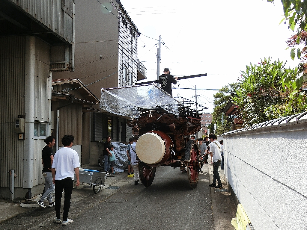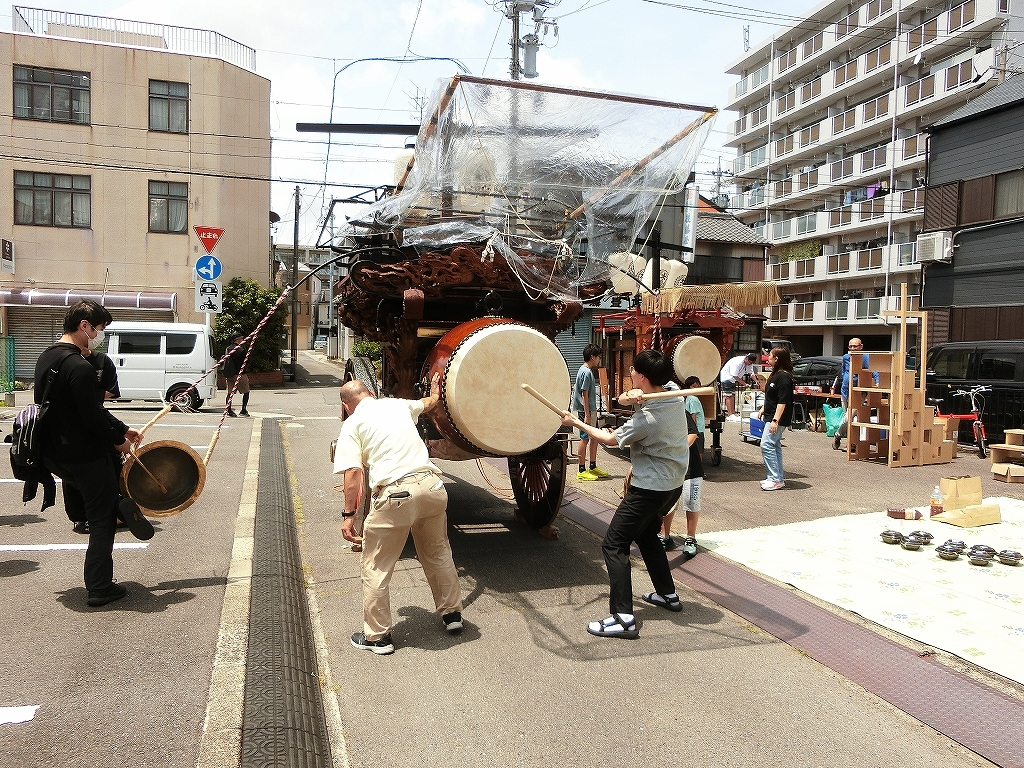 東矢田町でも太鼓の張り替えが午後から行われました。