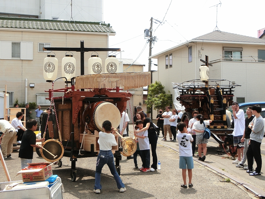 午後からも試し叩きは続けられ、一足早い石取囃子を楽しんでいました。