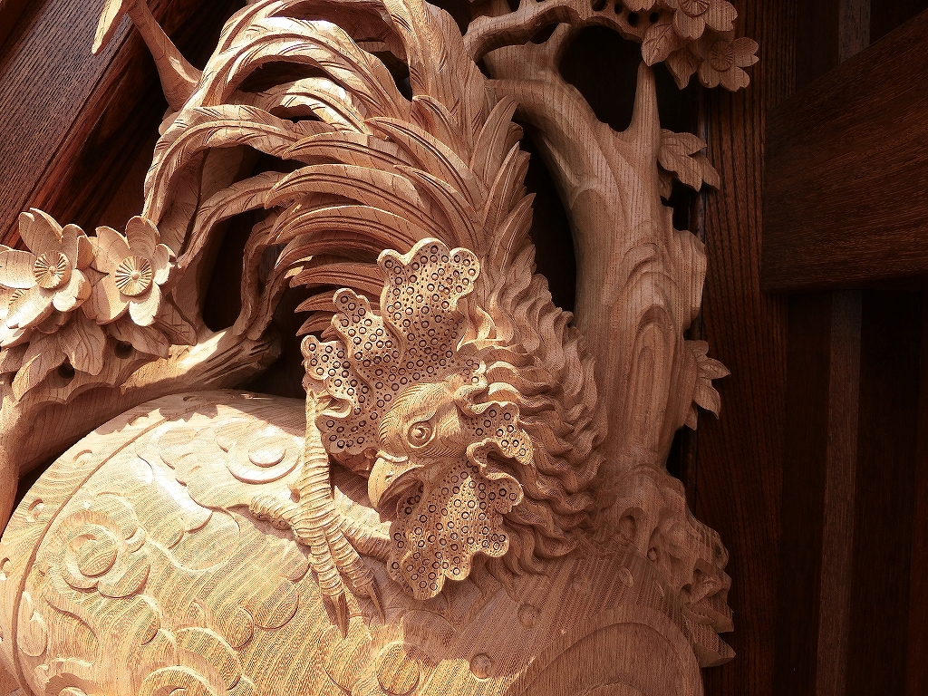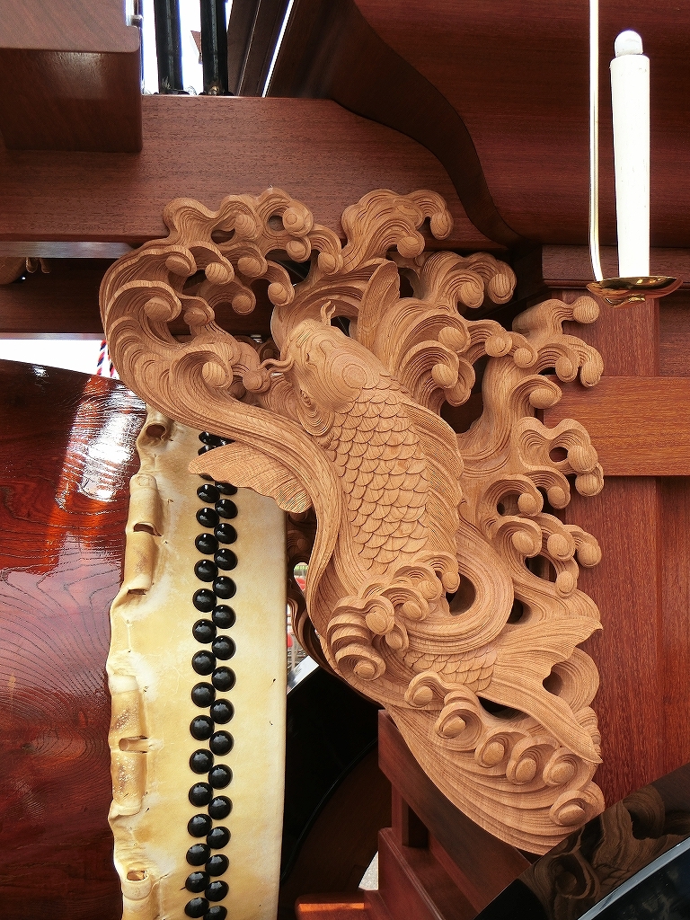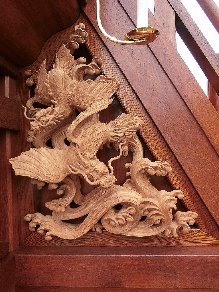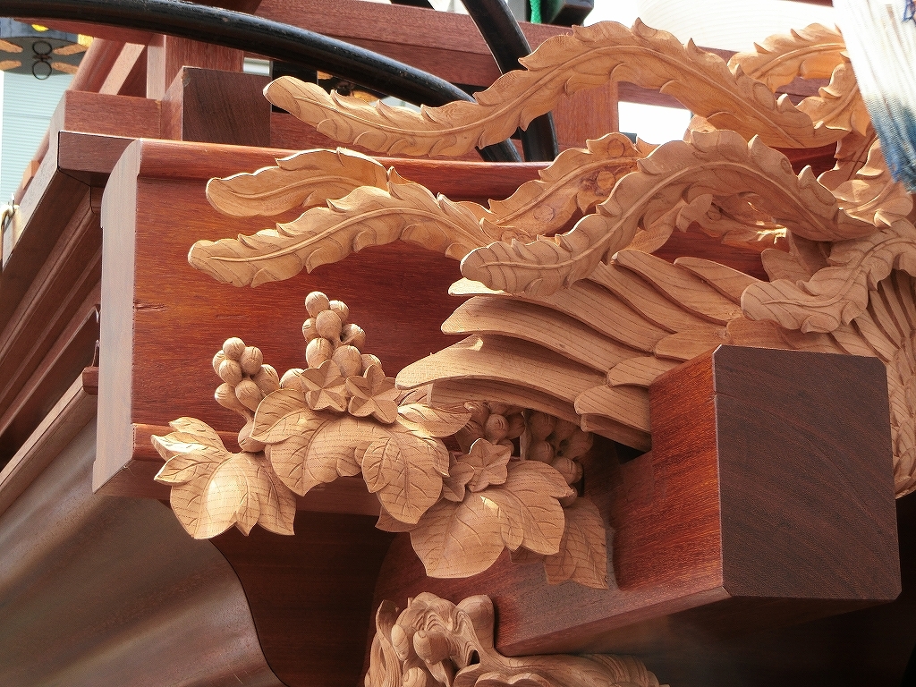 総彫りではなく、本来の太鼓掛枠に大型の彫刻が取り付けられました。