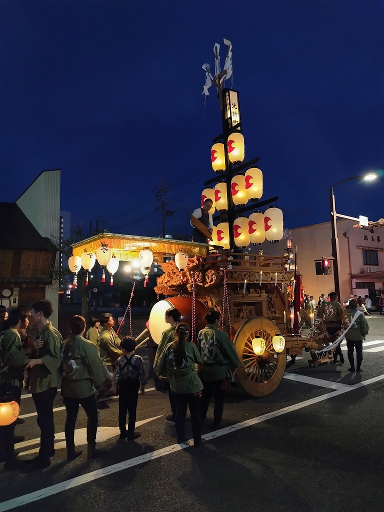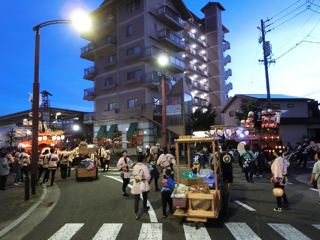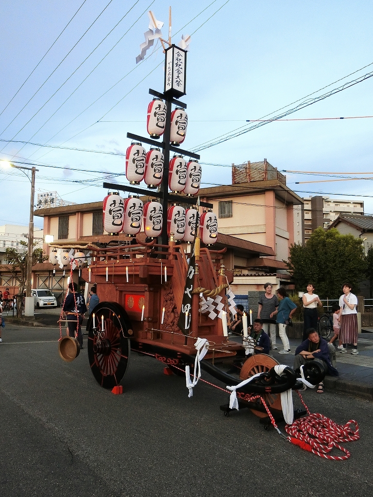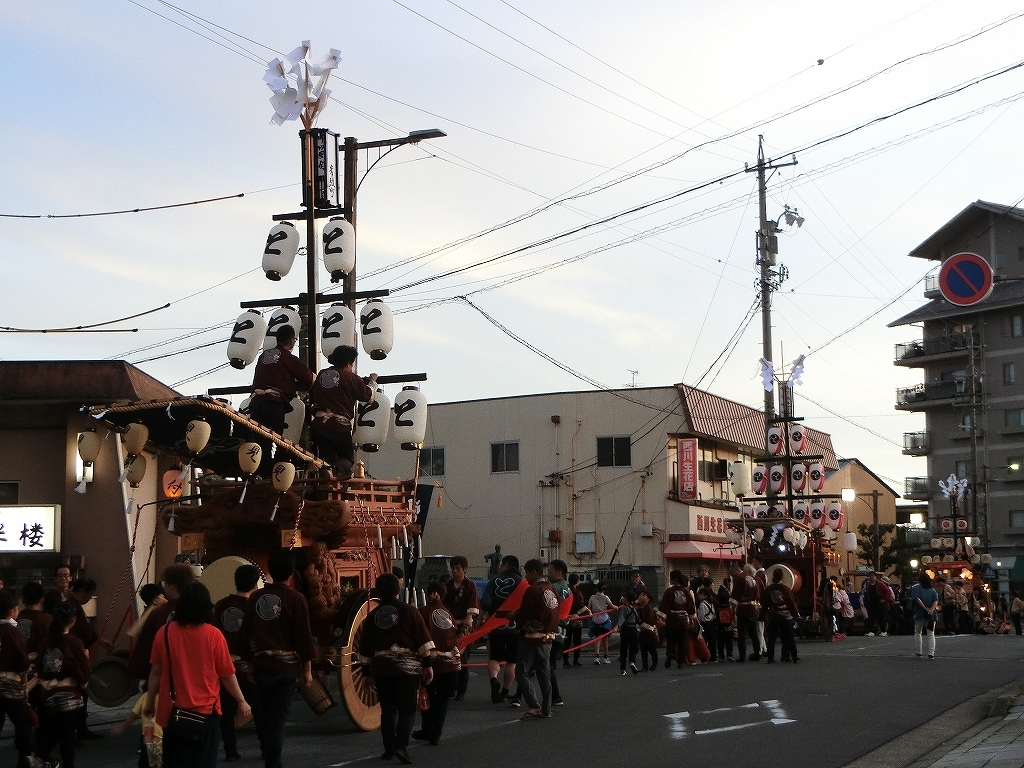 総叩きで最西端に並ぶ北萱町祭車は、北新町方向へと進んでいきました。