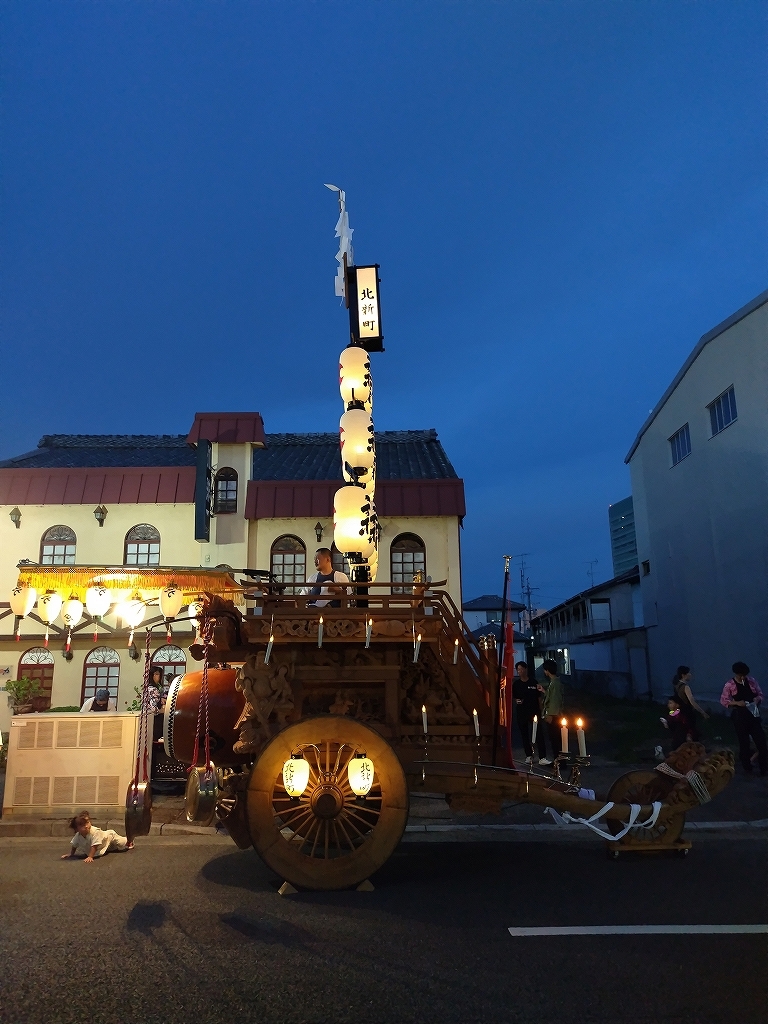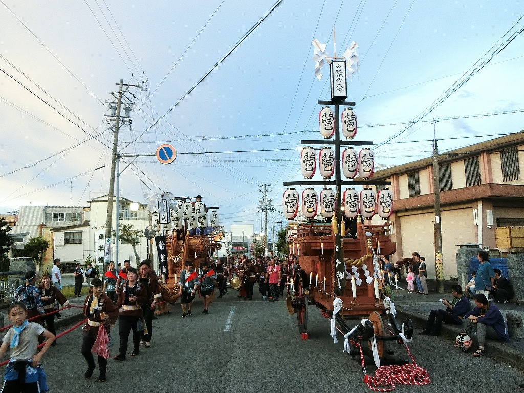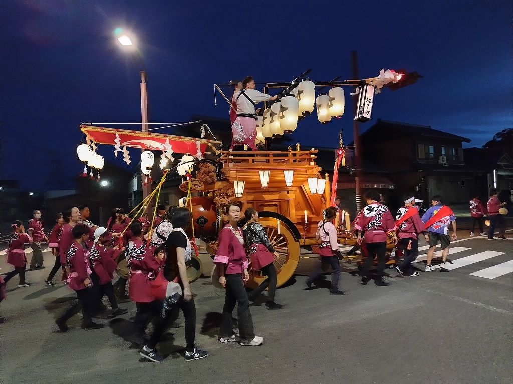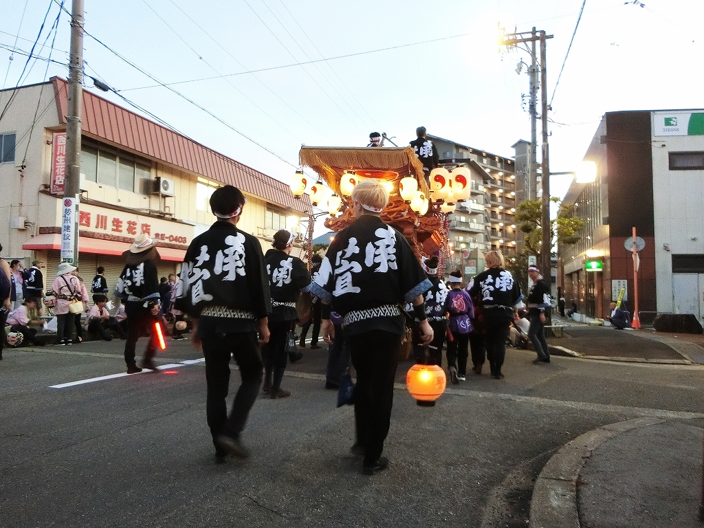 総叩きで最西端に並ぶ北萱町祭車は、北新町方向へと進んでいきました。