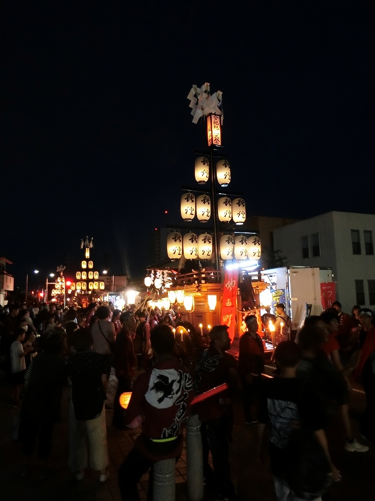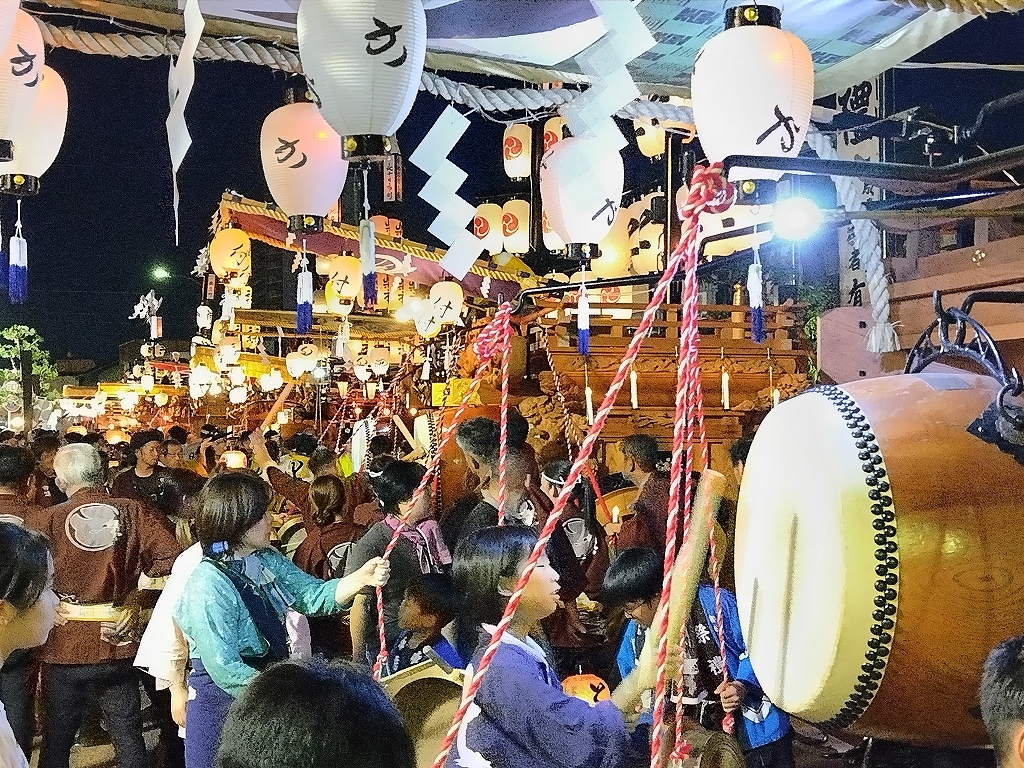 午後8時、神戸宗社前で8台の祭車が横並びになり、総叩きが行われます。