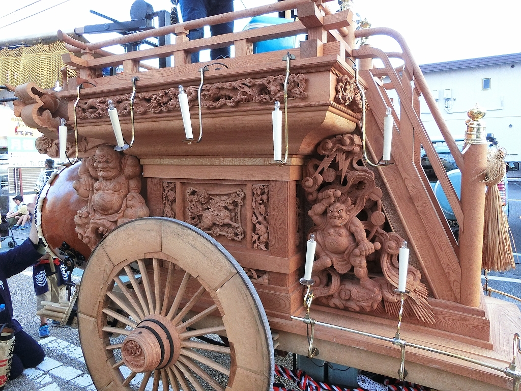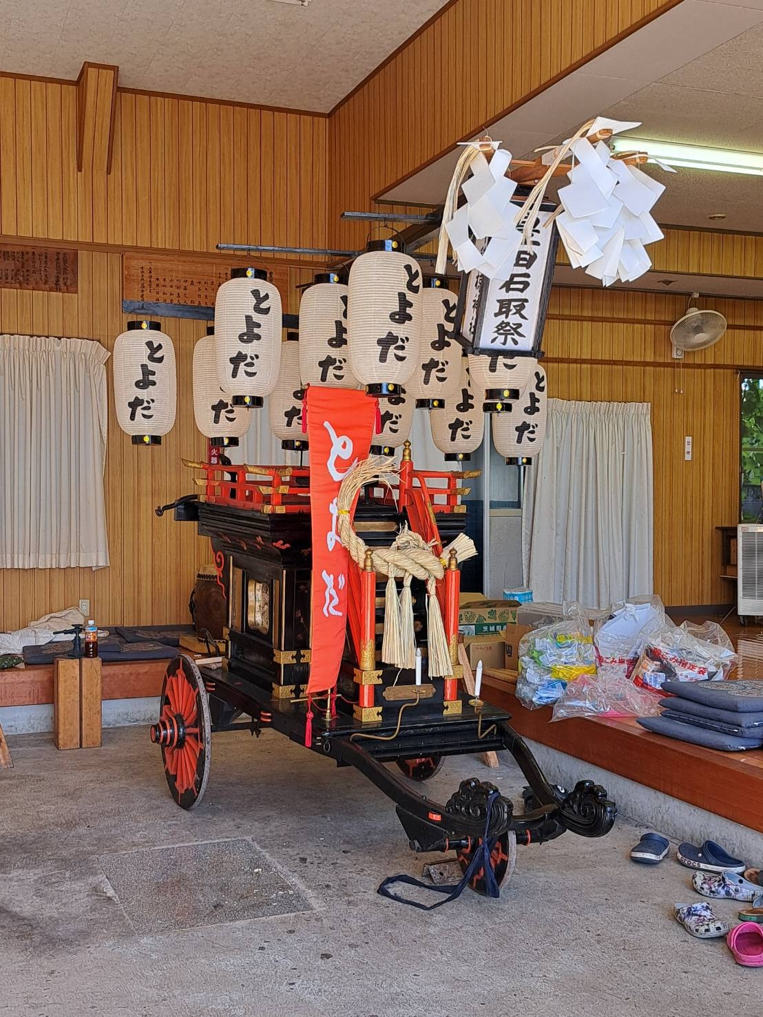 子供祭車は祭車庫内で飾り付けられています。