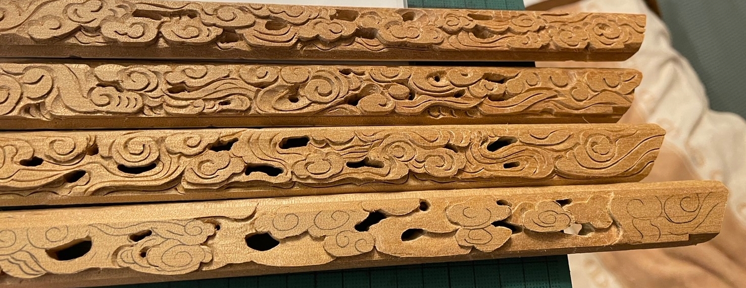 支輪の彫刻も下絵を描いて、彫る凝りようです。