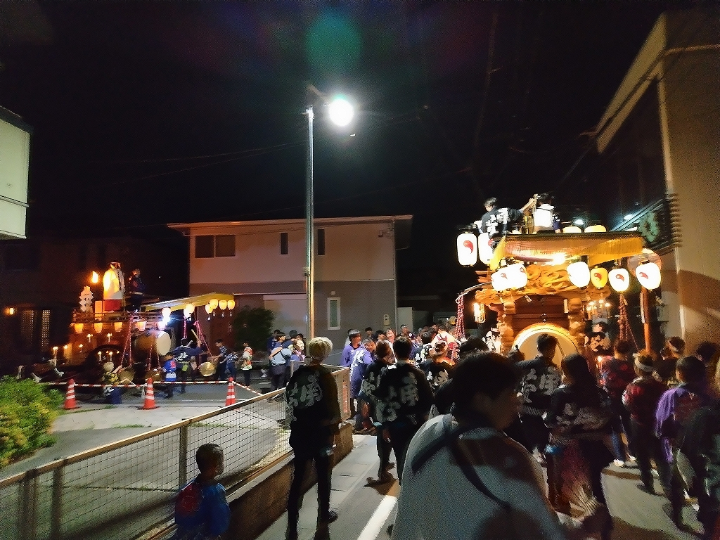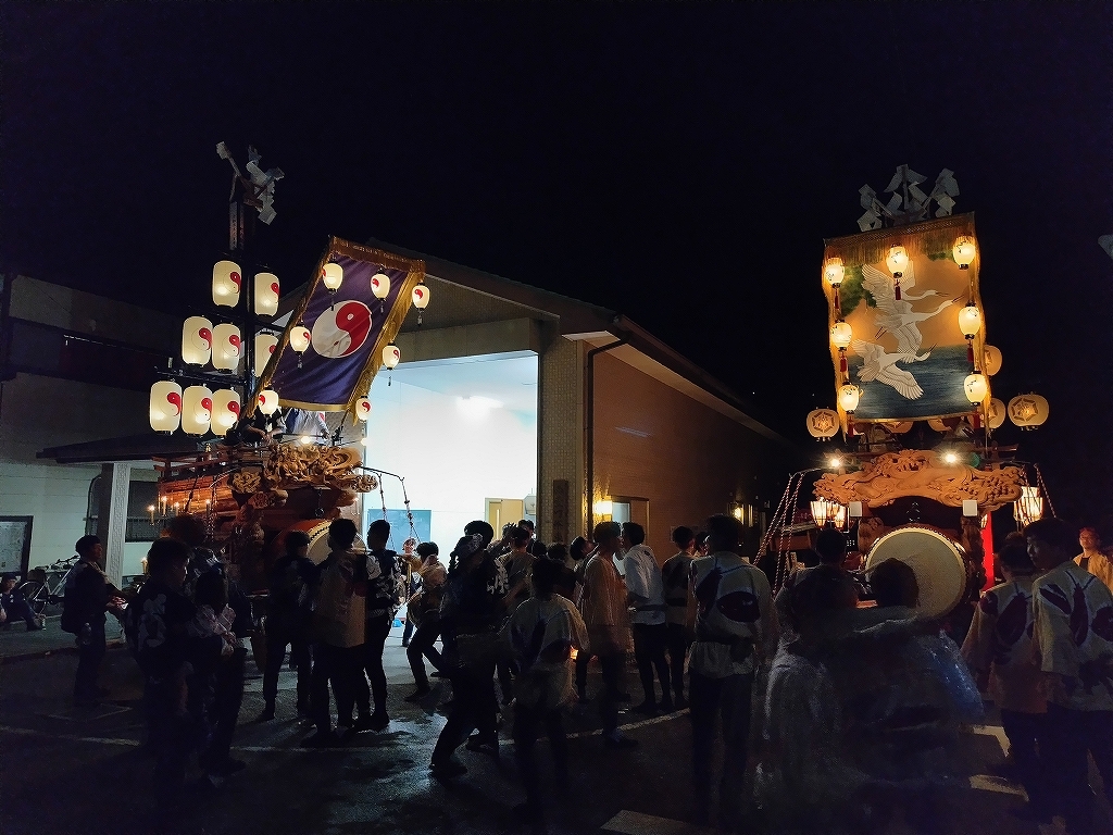 南萱町と六郷連は、南萱町祭車庫横で曳き別れを行います。