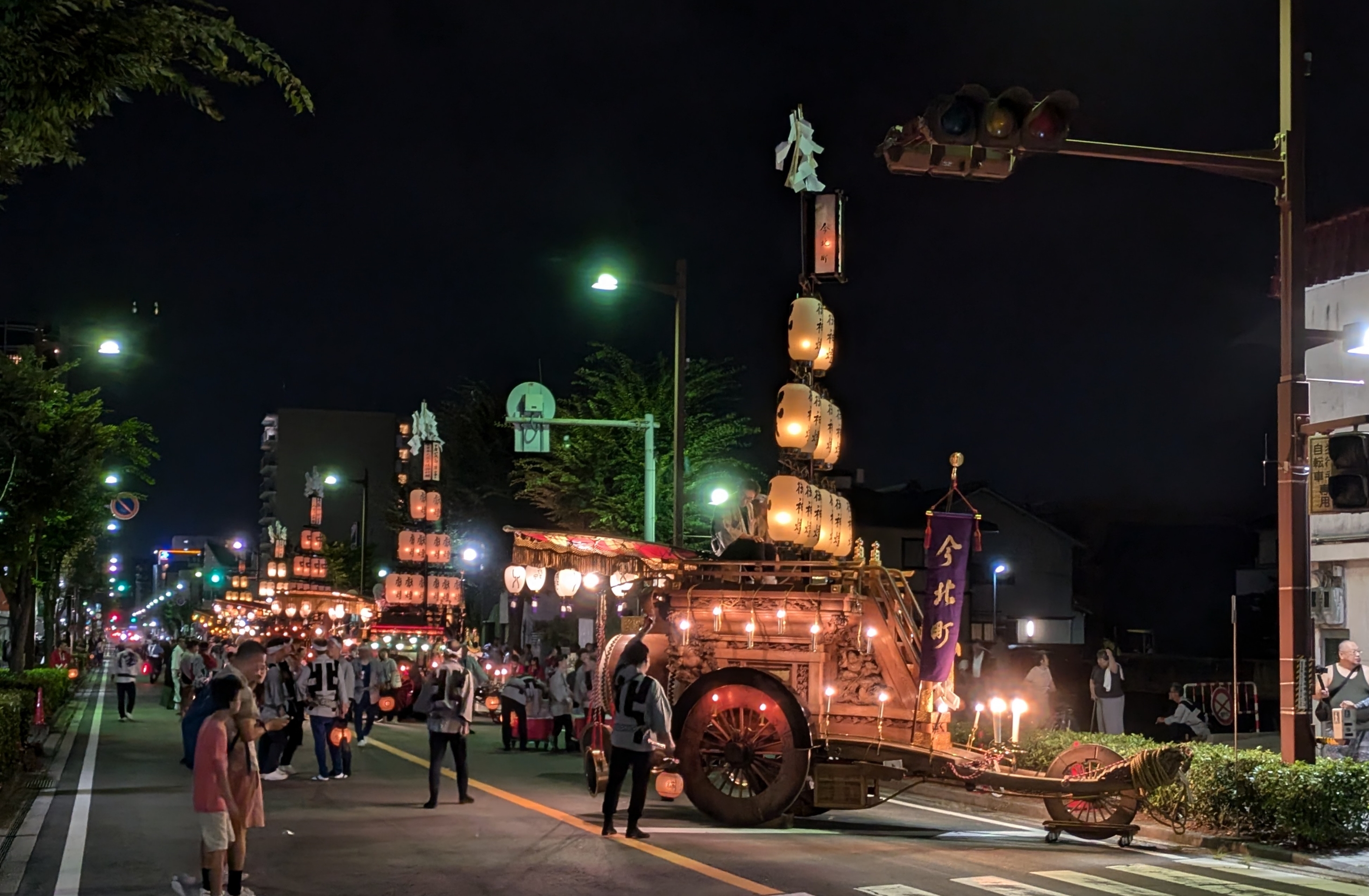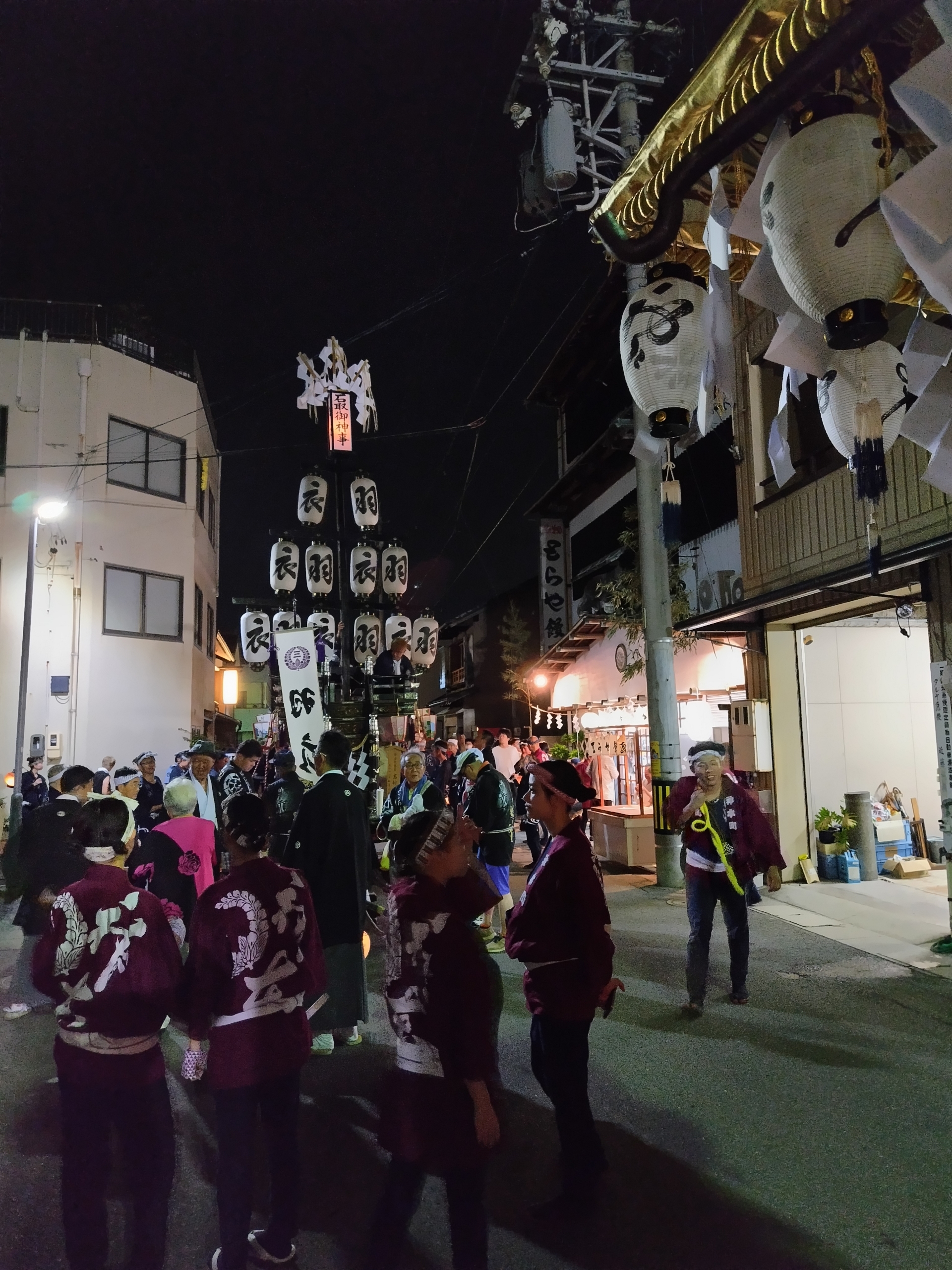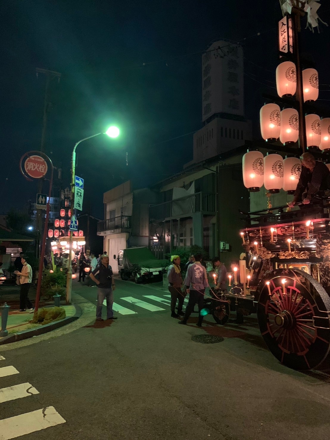 お勝っつぁんの時間が早く済むと、第一組の各町は祭車を迎えに自町に戻りますが、時間が押した時には本町通りで待機します。