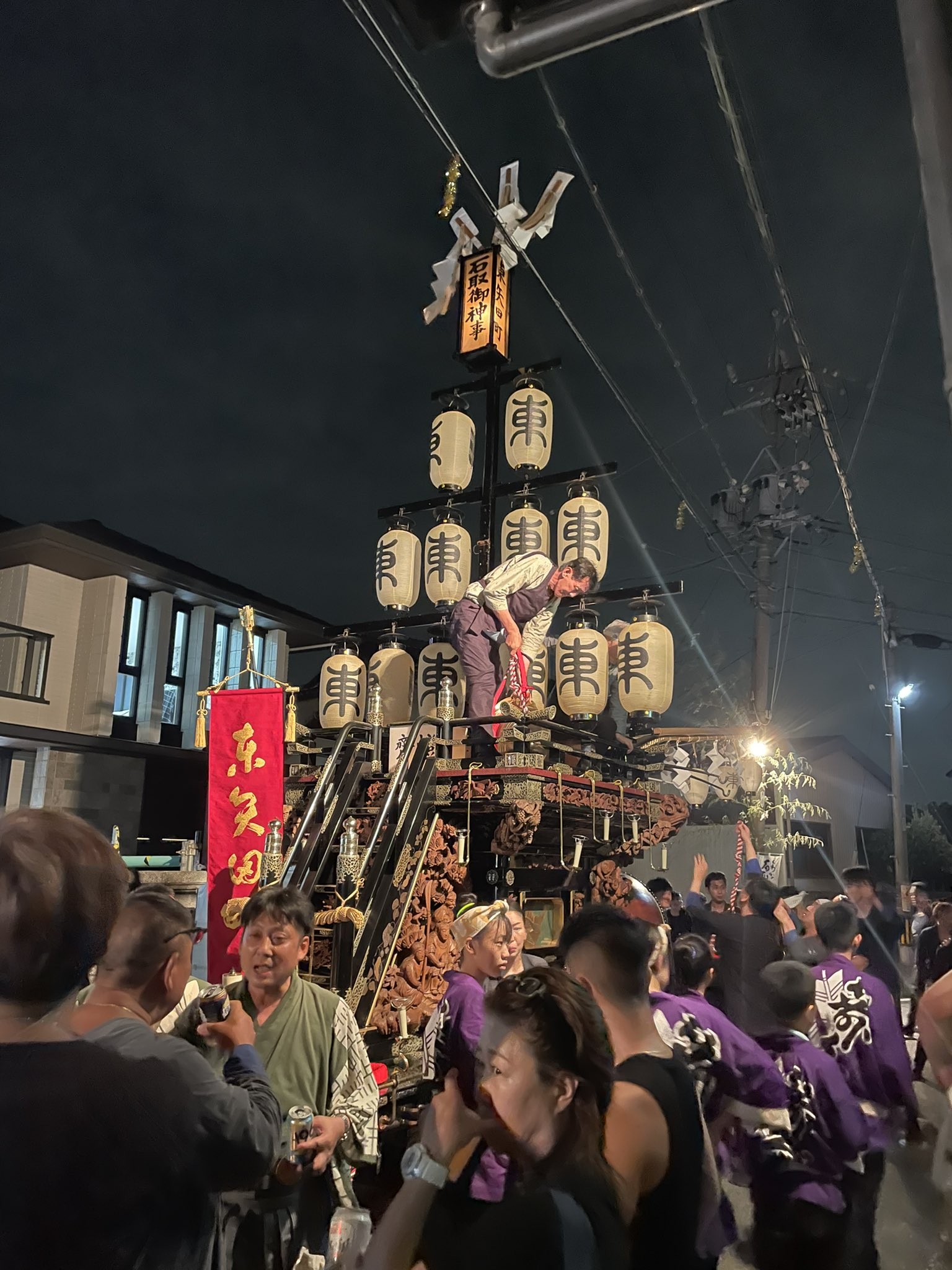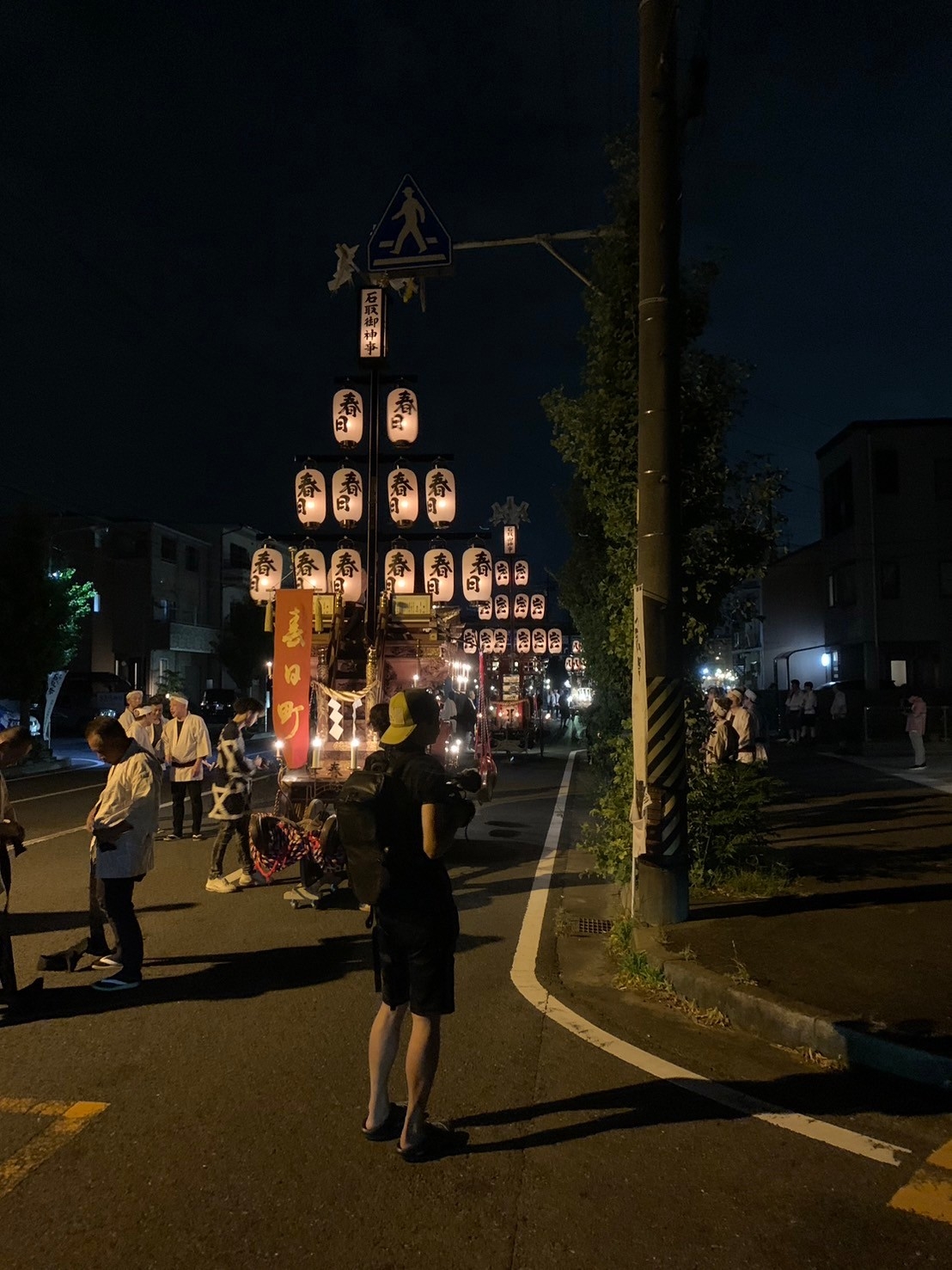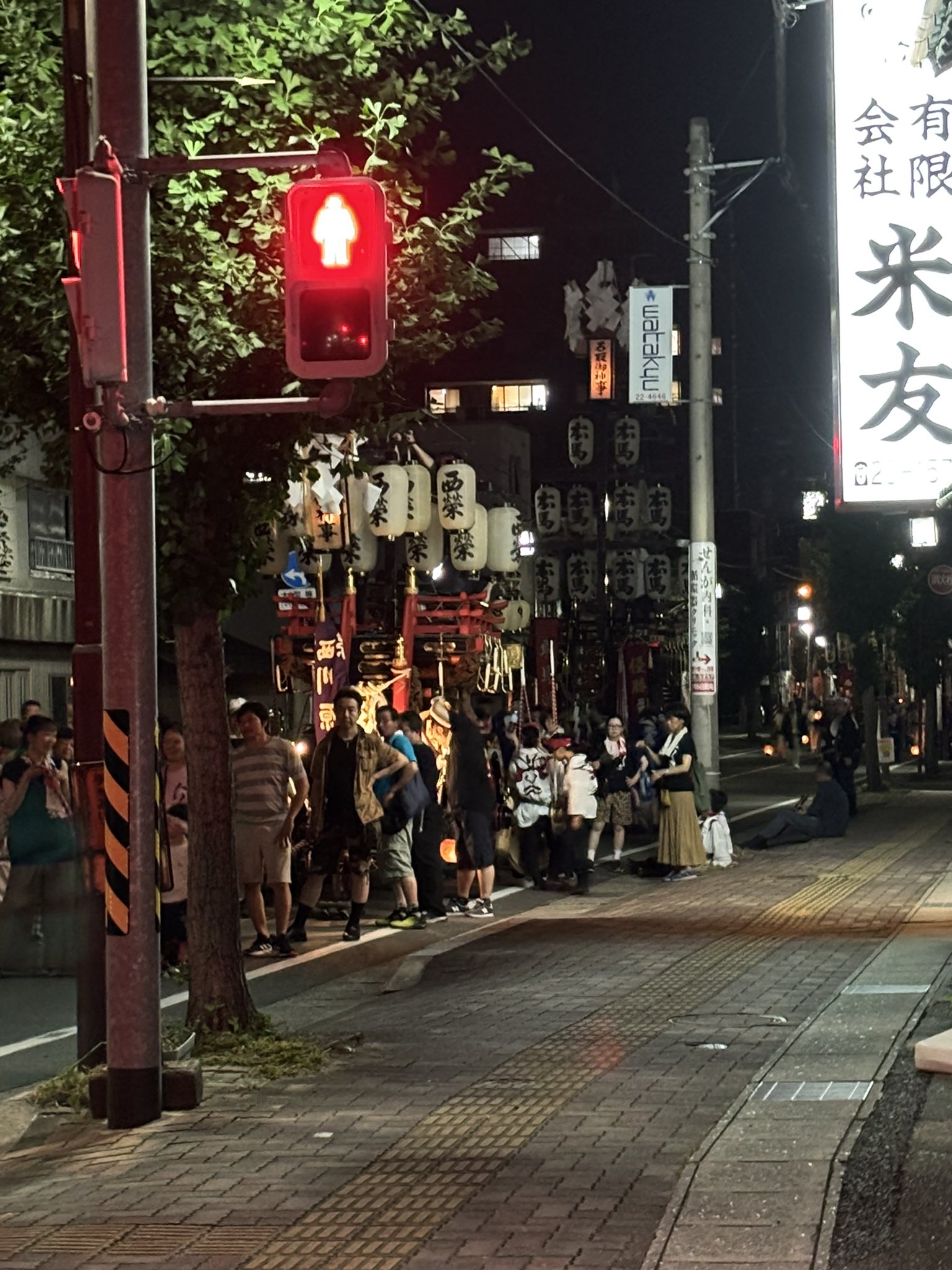 お勝っつぁんの時間が早く済むと、第一組の各町は祭車を迎えに自町に戻りますが、時間が押した時には本町通りで待機します。