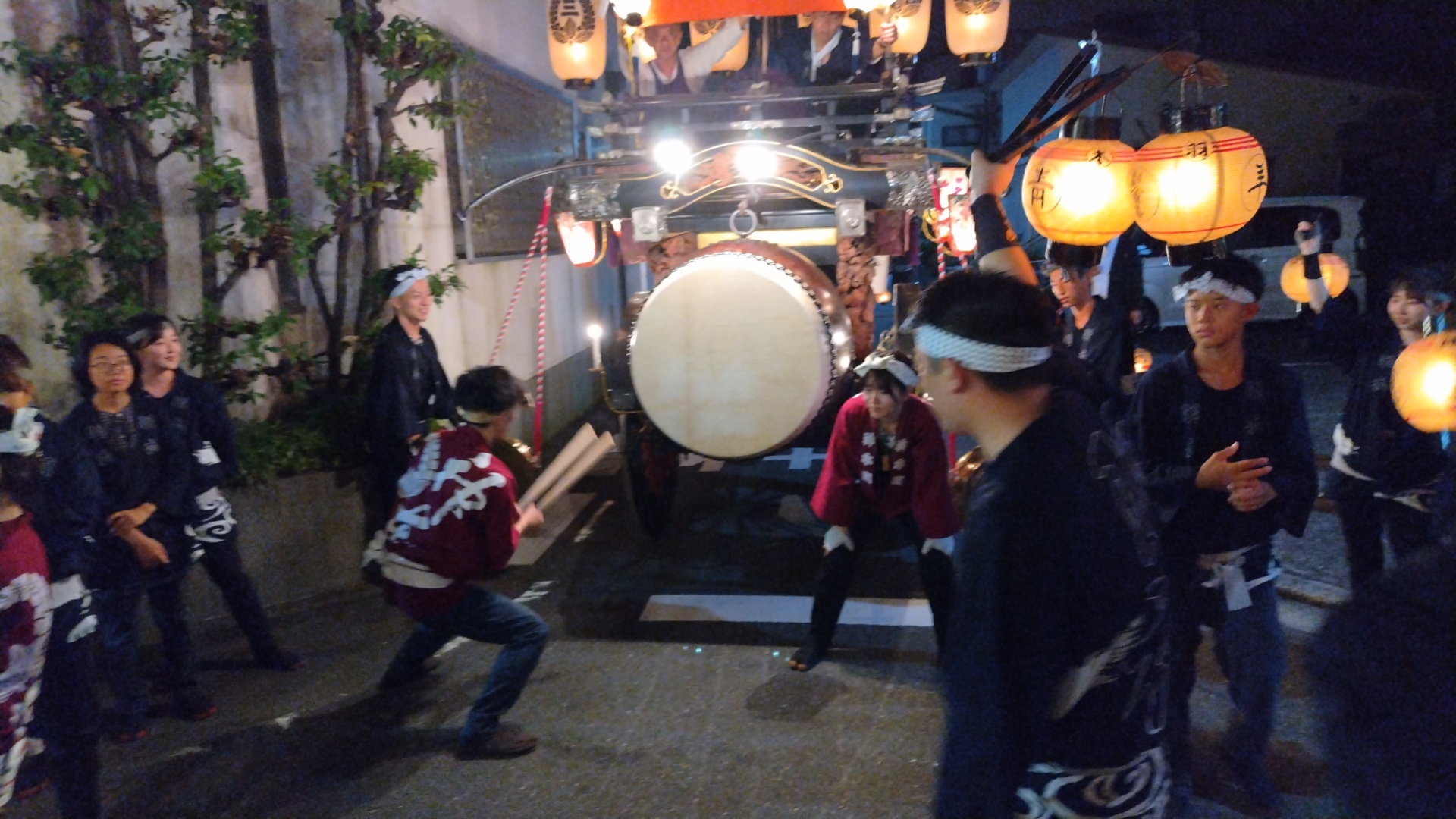 西舩馬町祭車で叩かせていただく、上本町青年会員。