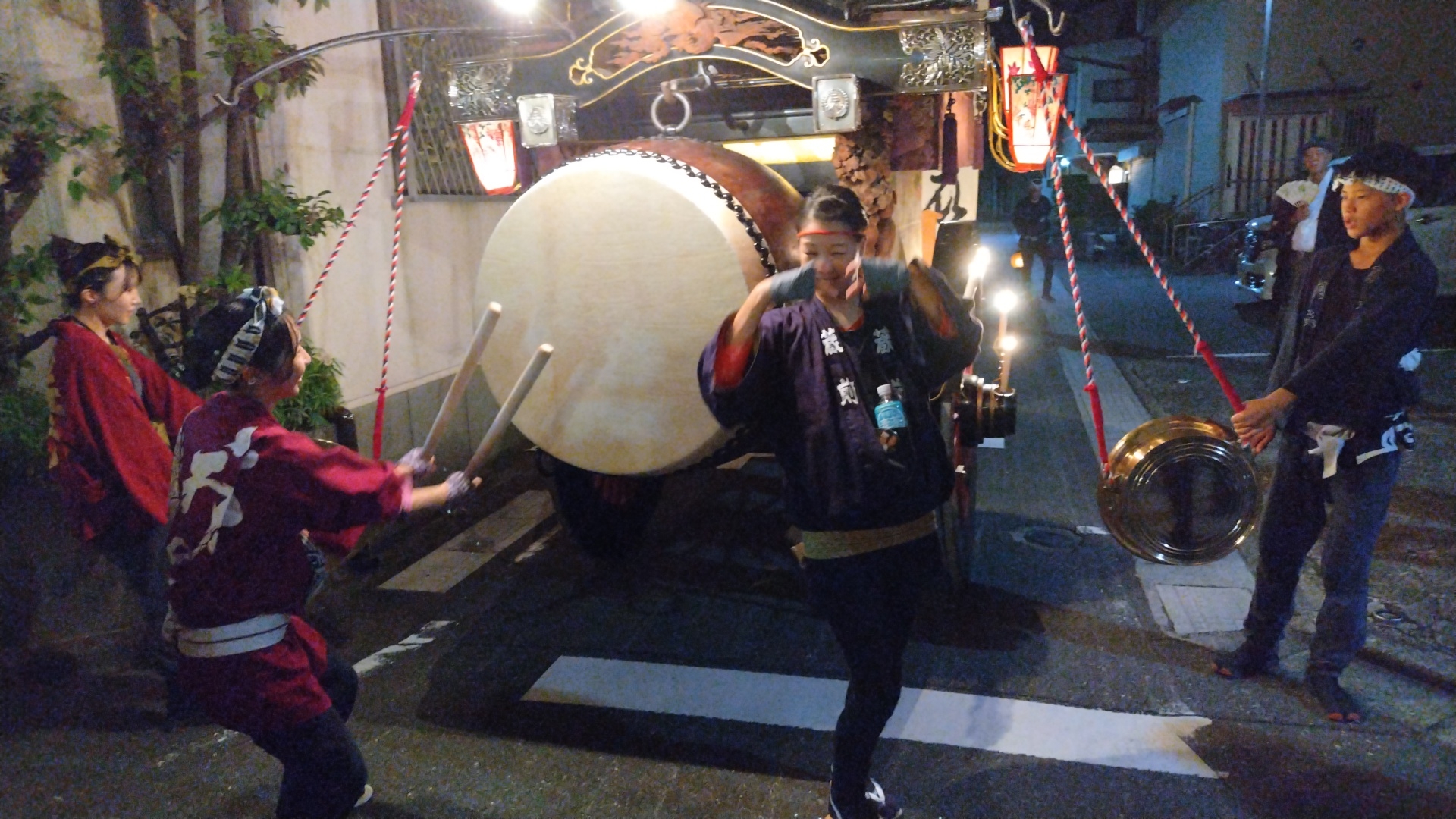 アァデンヤ~デンヤ~でそれぞれの祭車に散り、ソーリャで叩き始めます。