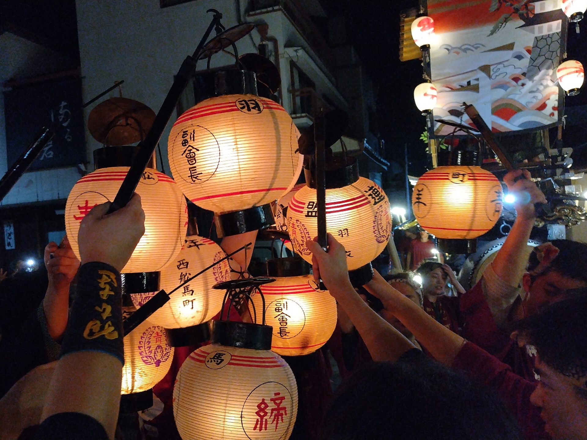 羽衣祭車でポーズを決める、西舩馬町の読者様。