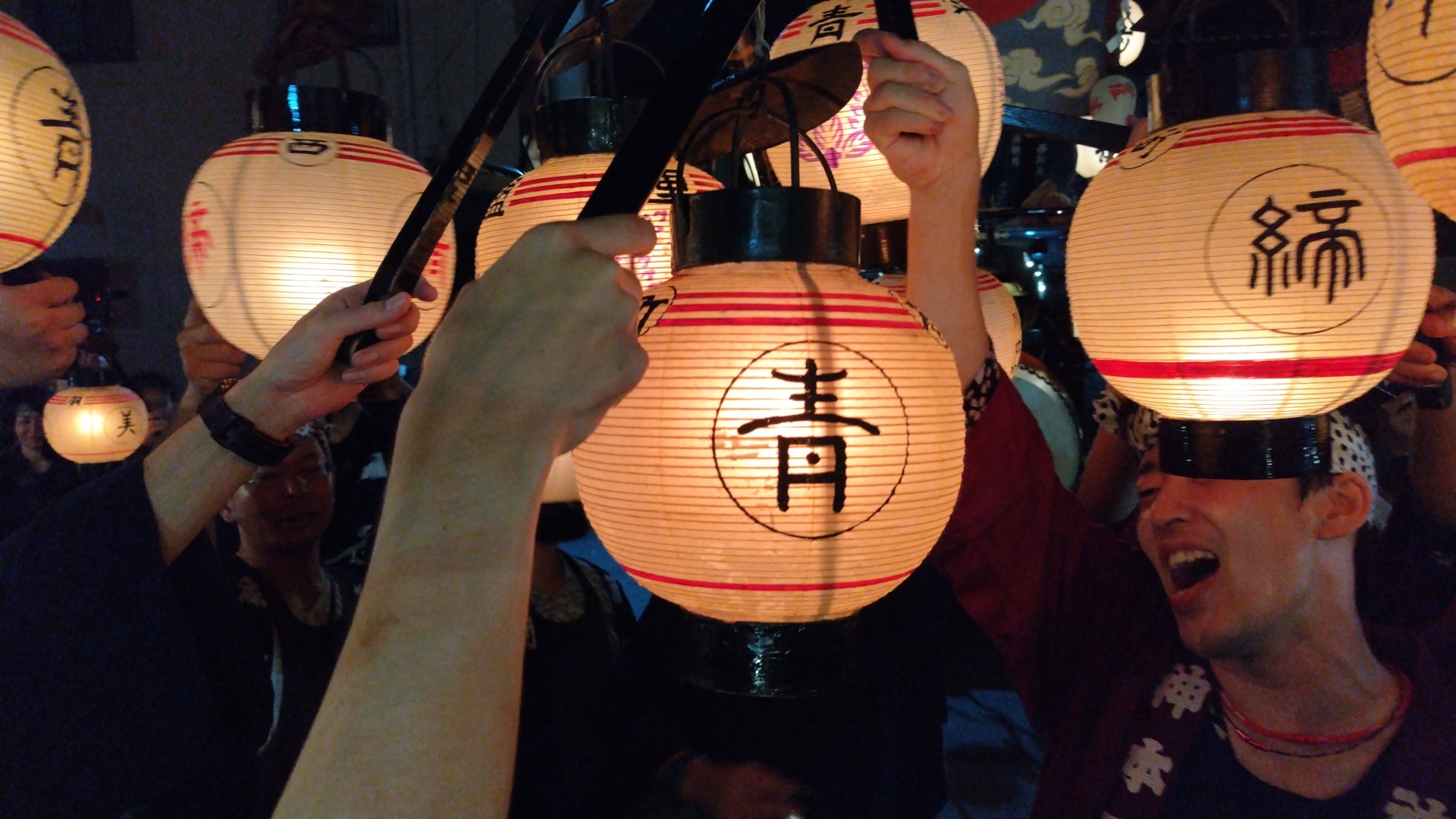 すると役提燈を預かり、他町の方々を自祭車に招き入れて叩いてもらいます。