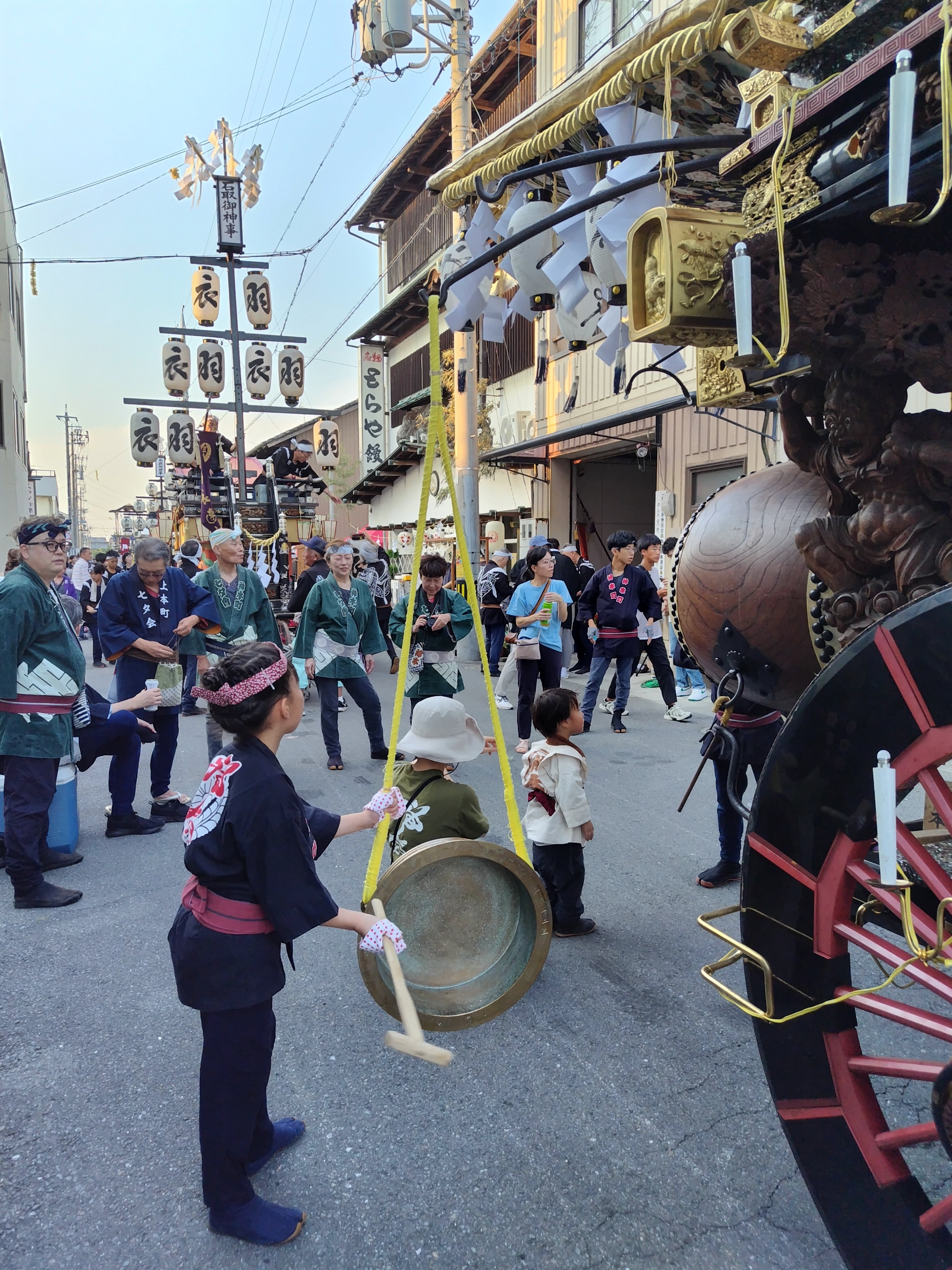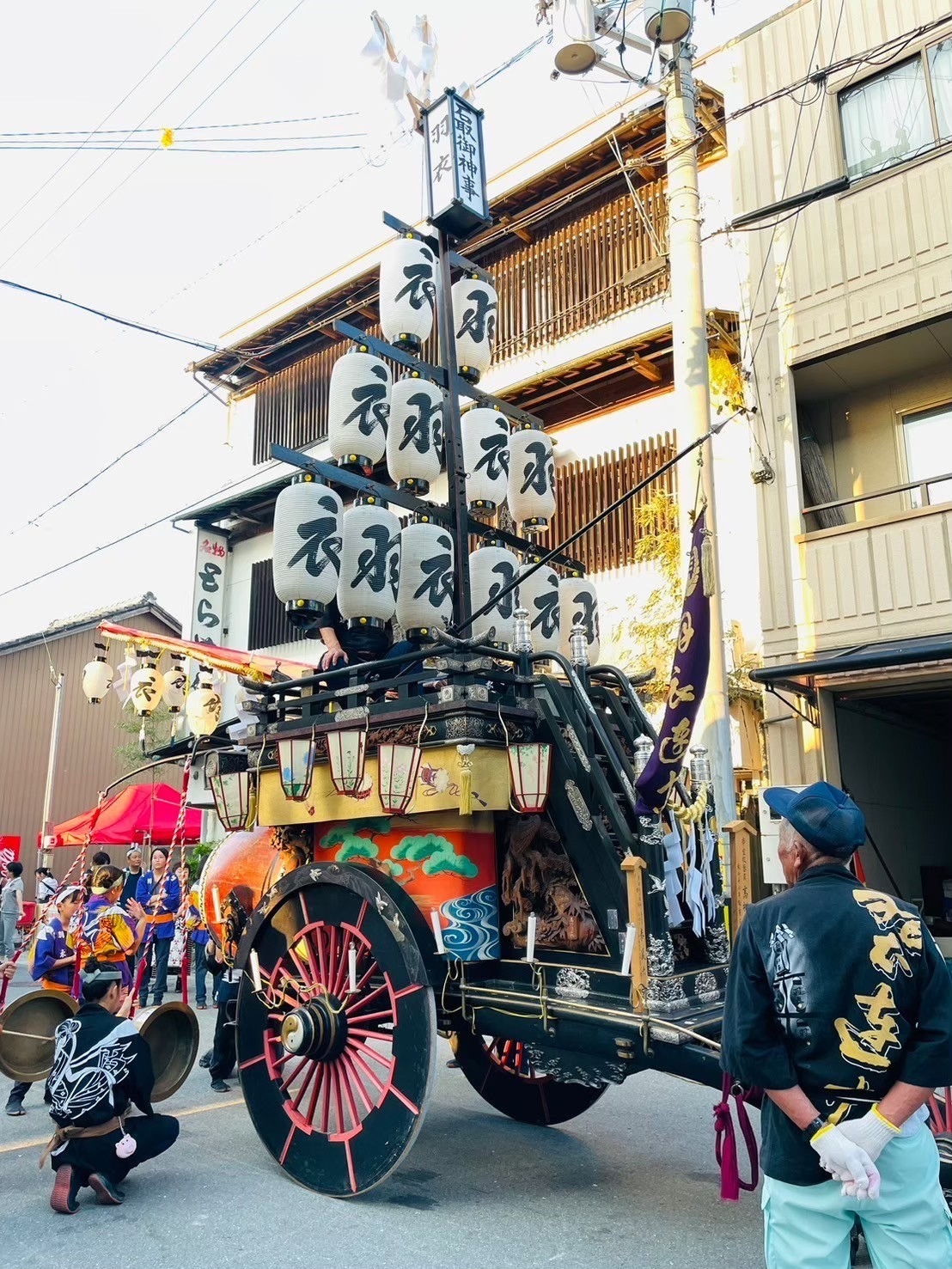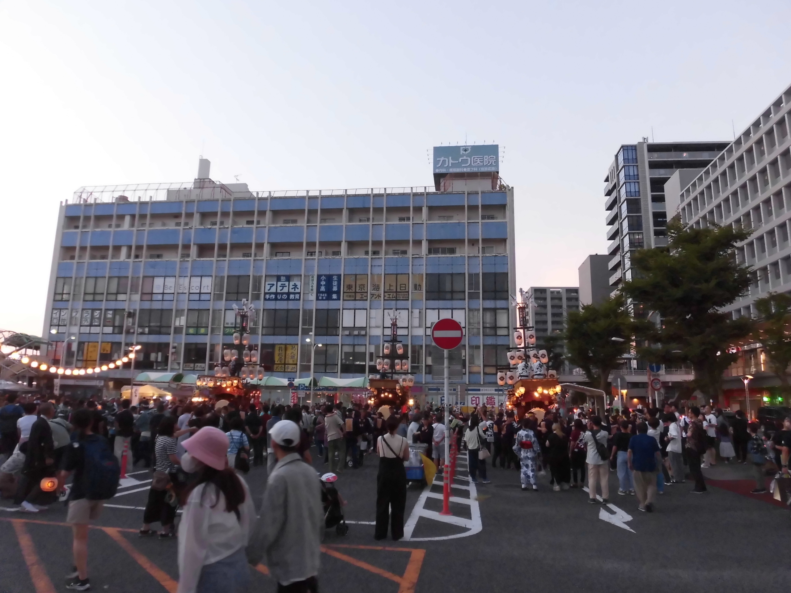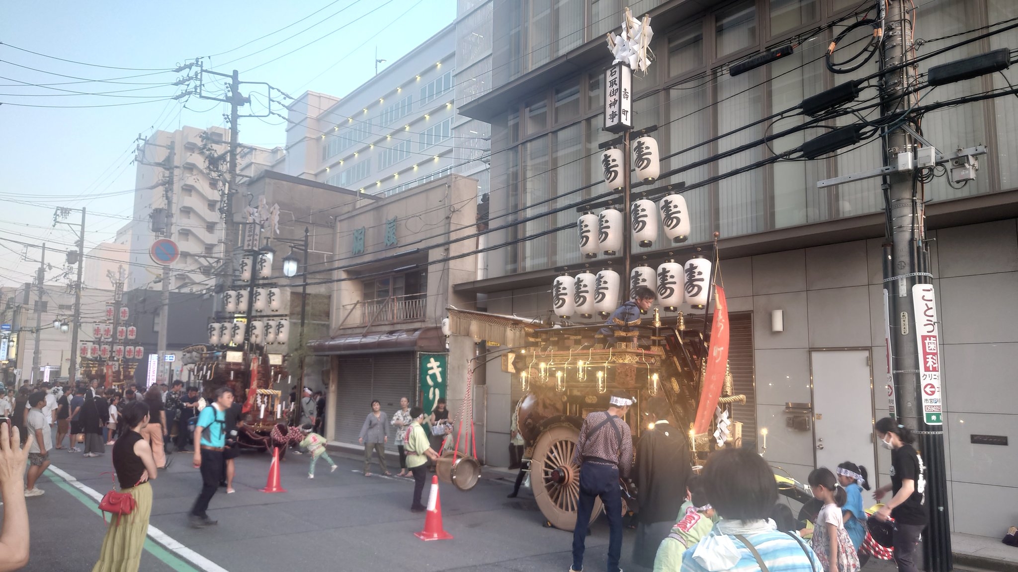 一番近くで3台が集まれる場所(桑名駅前)に祭車を曳き込み、囃子奉納を行います。