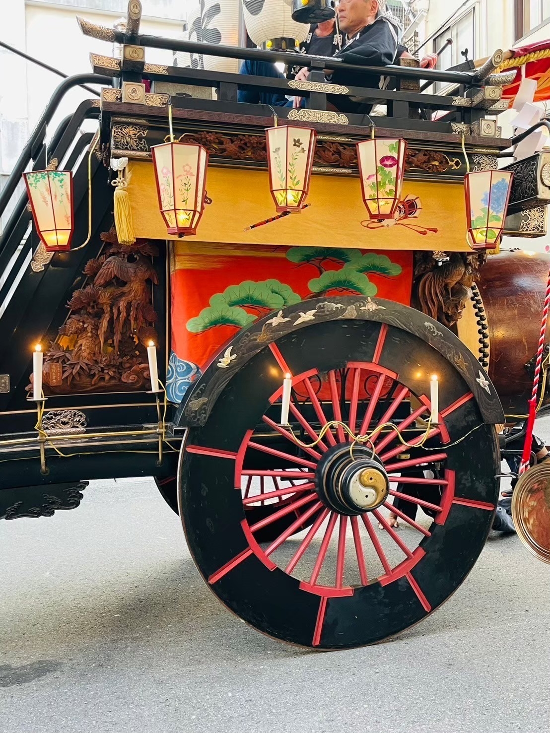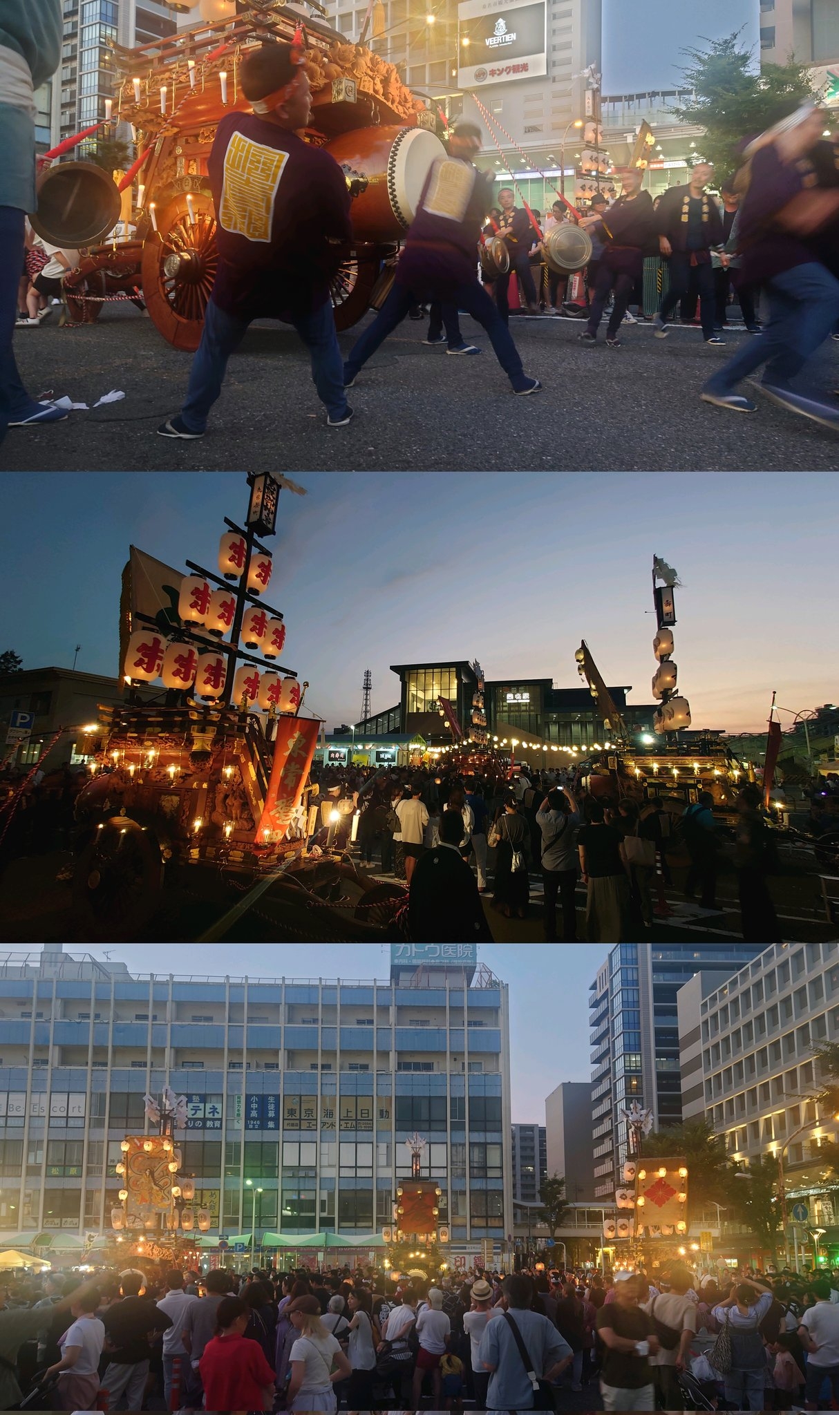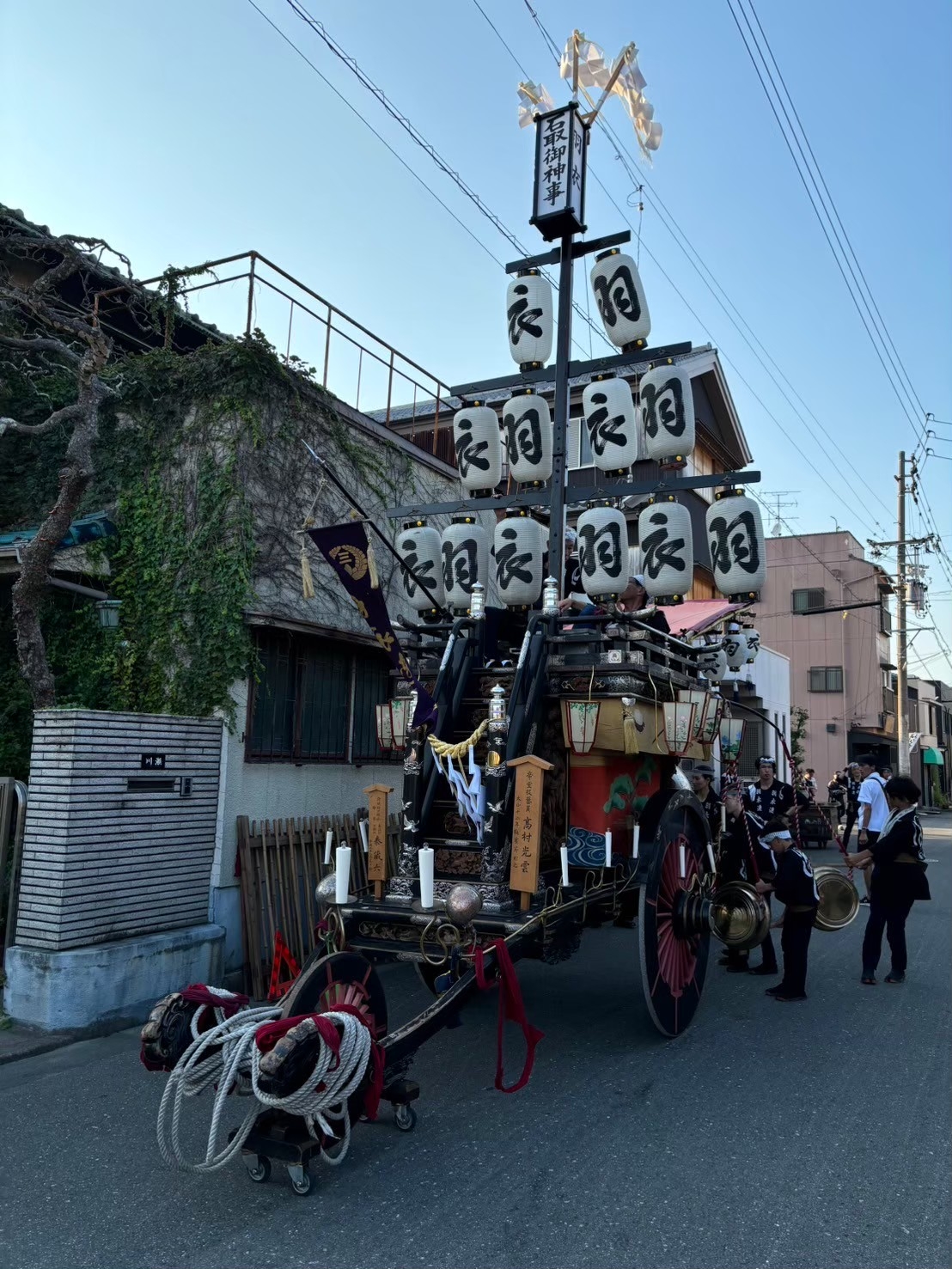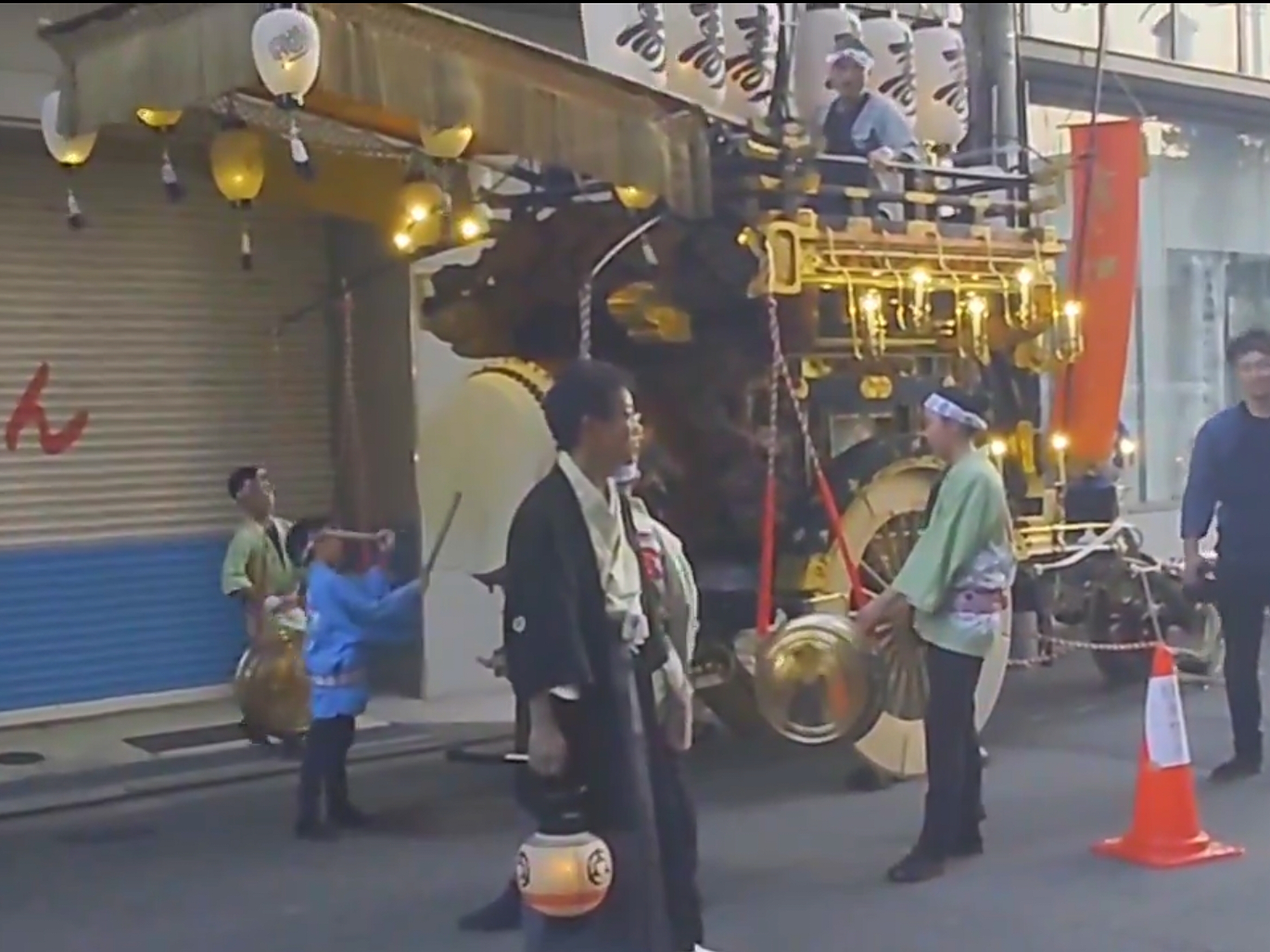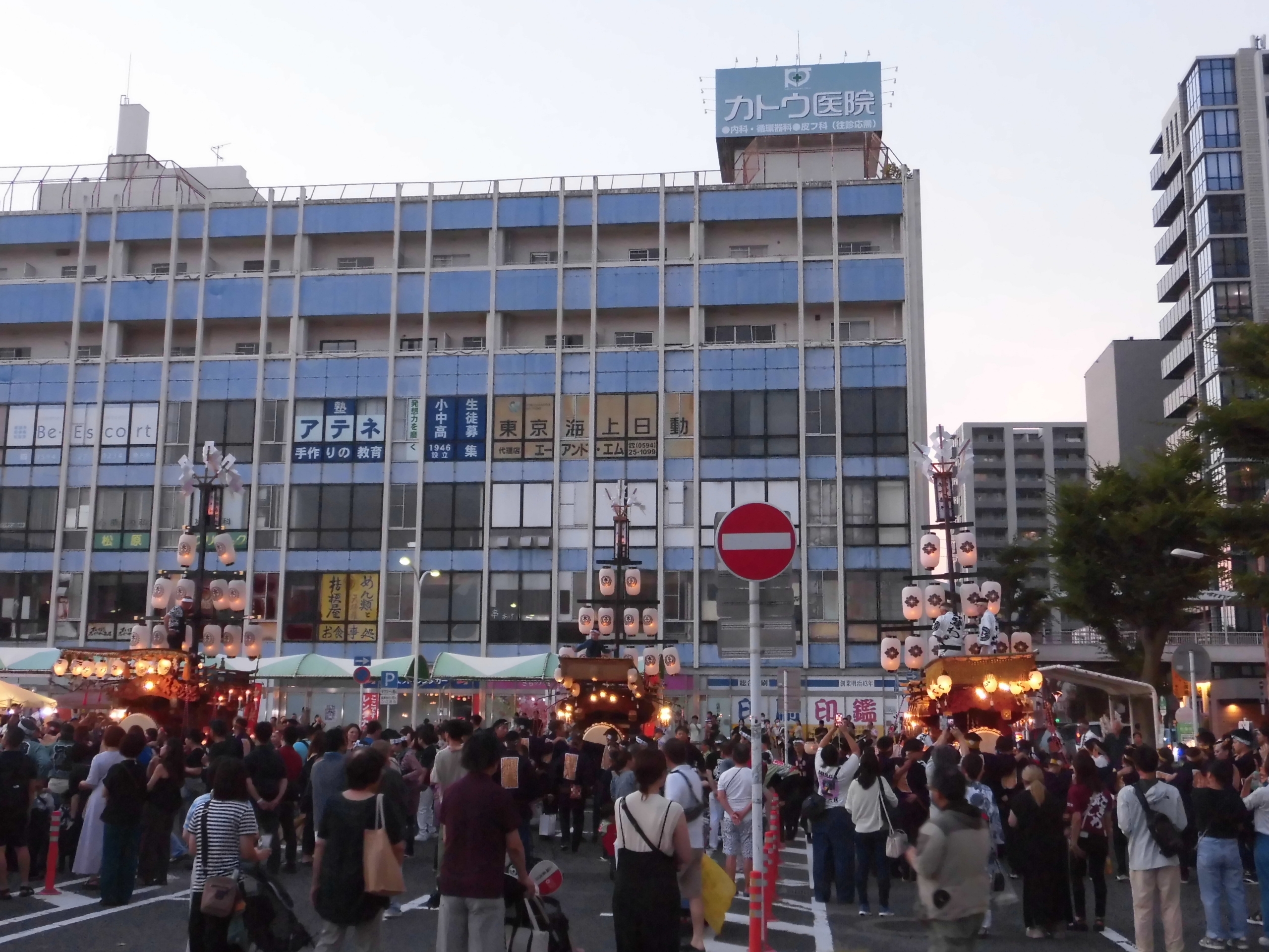 一番近くで3台が集まれる場所(桑名駅前)に祭車を曳き込み、囃子奉納を行います。