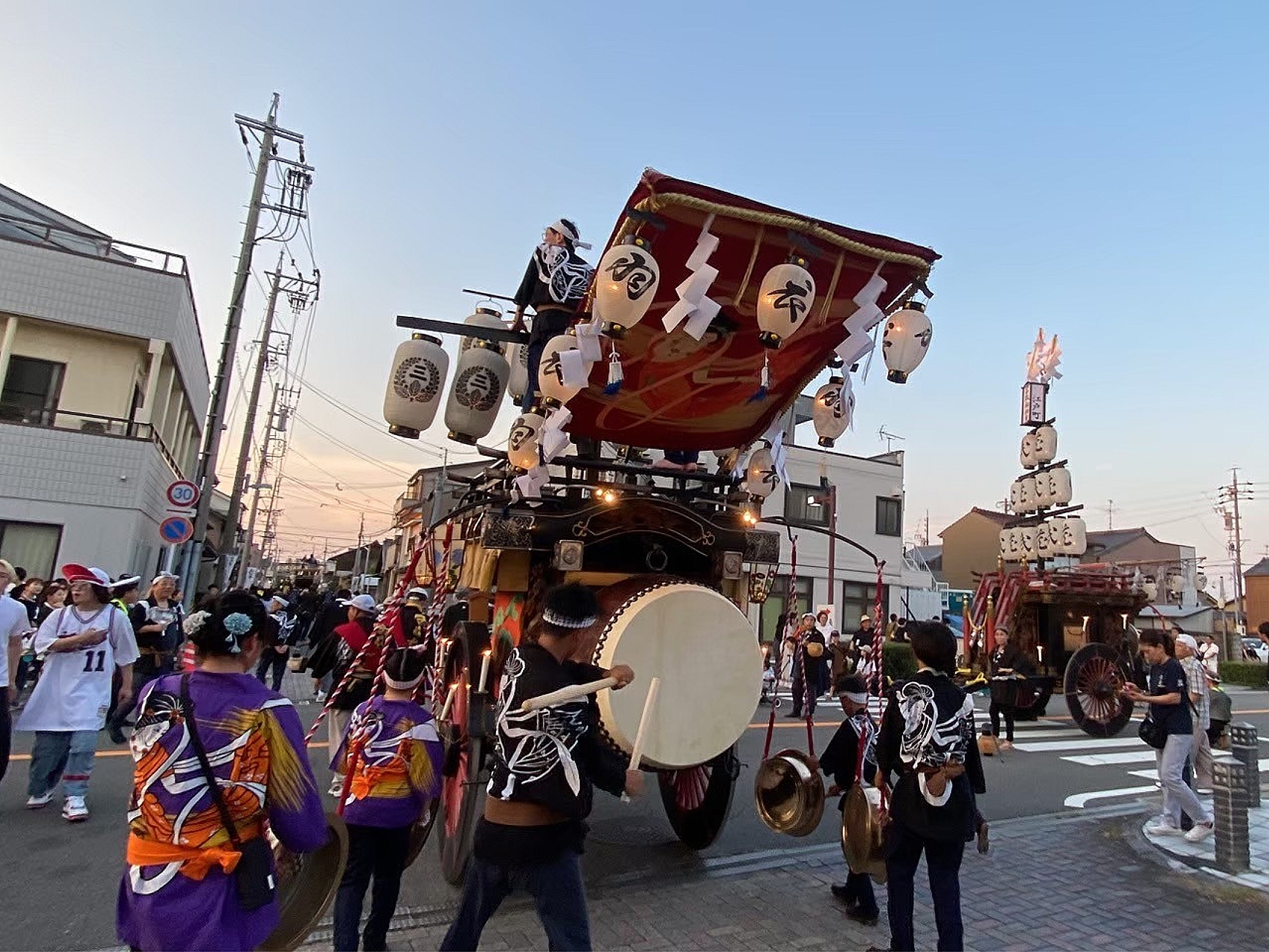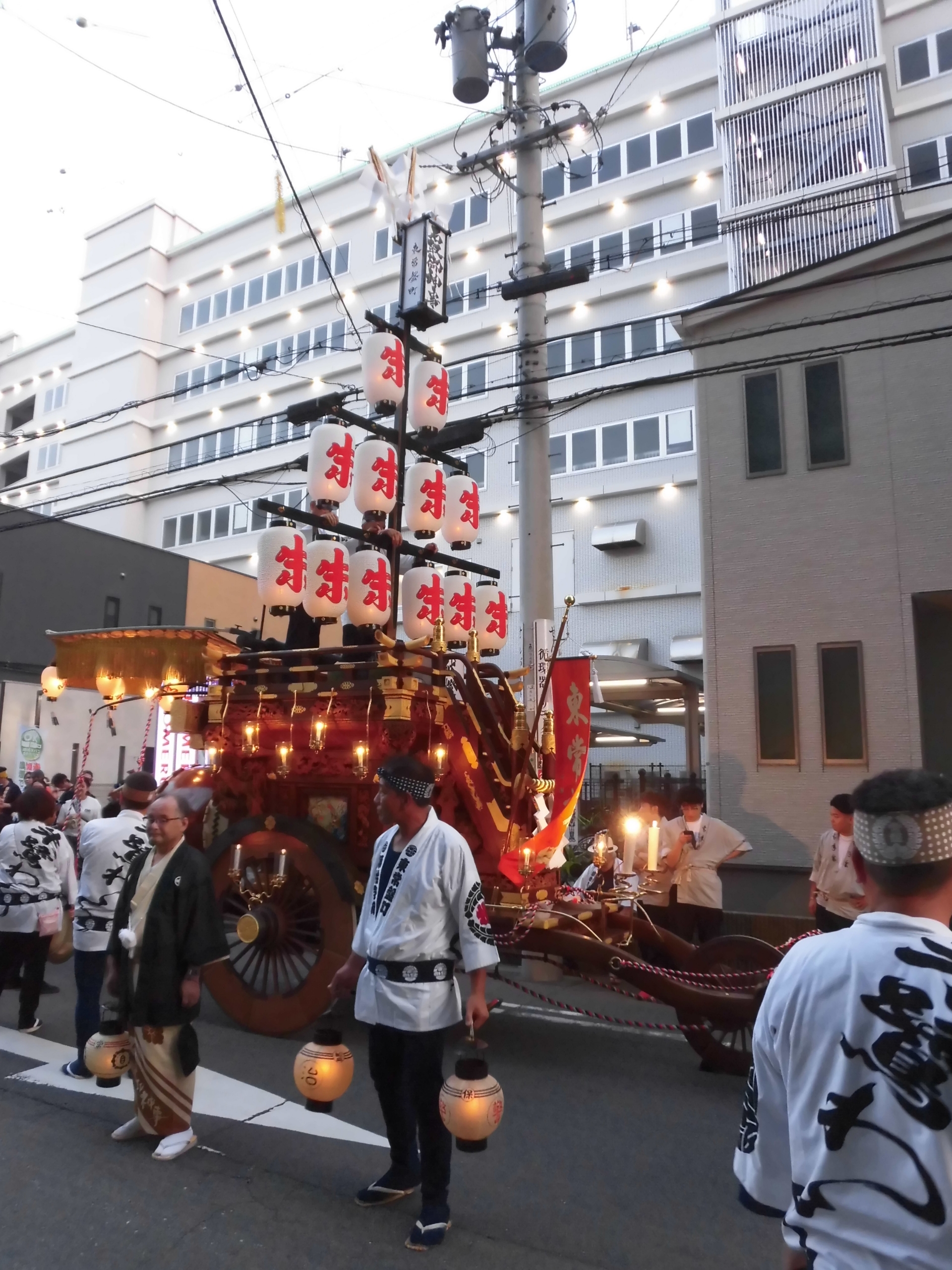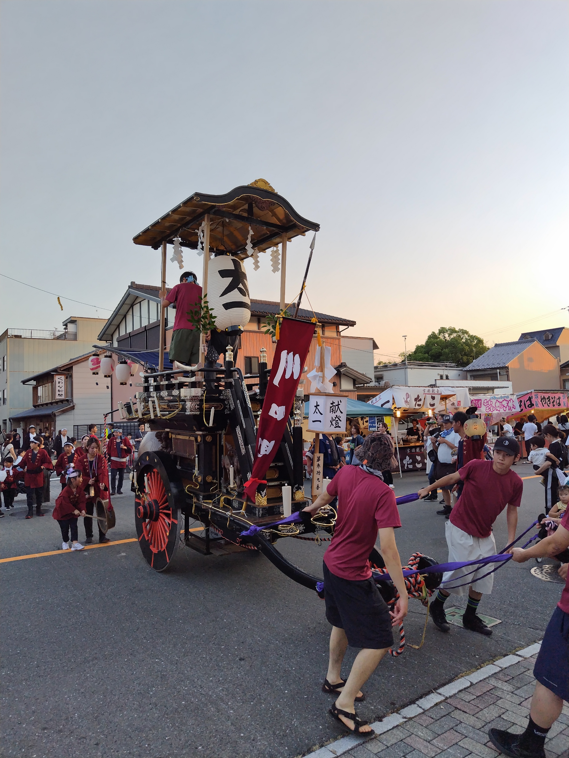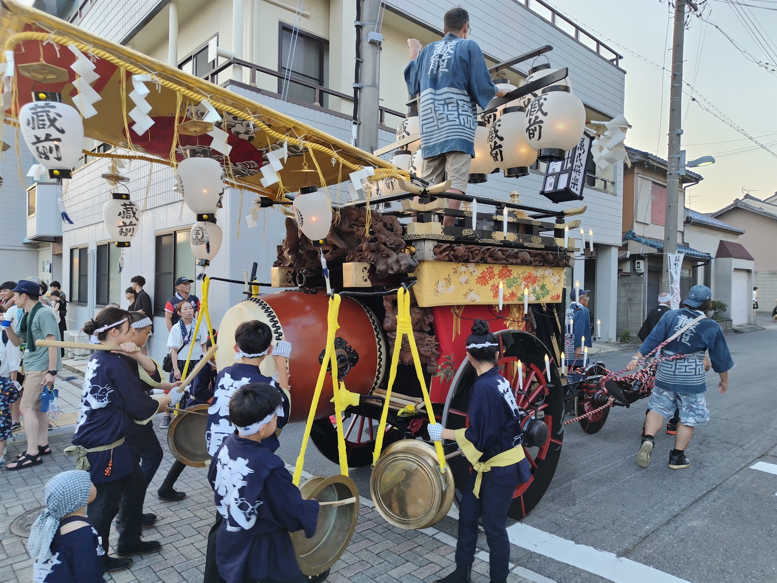 午後5時45分に各町が曳き出します。(西舩馬町は午後5時半)