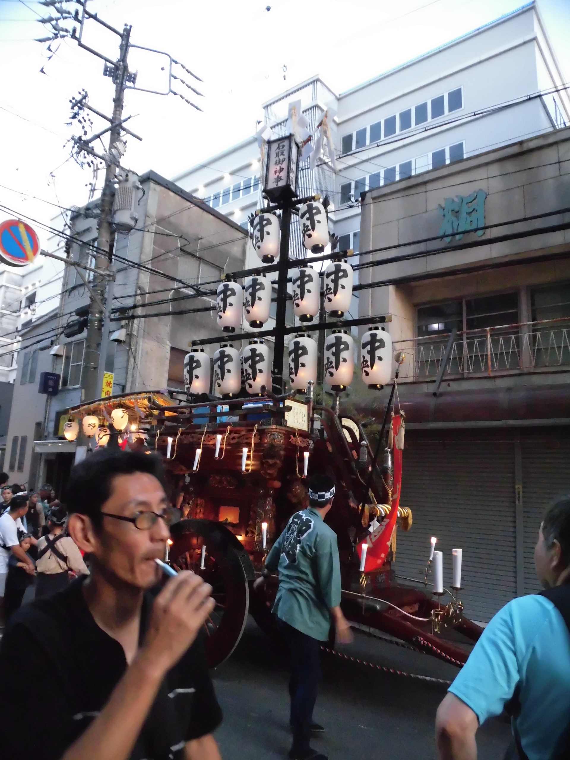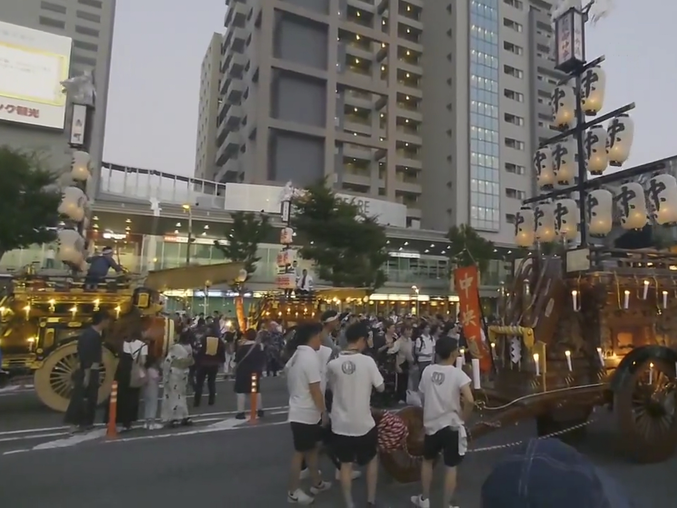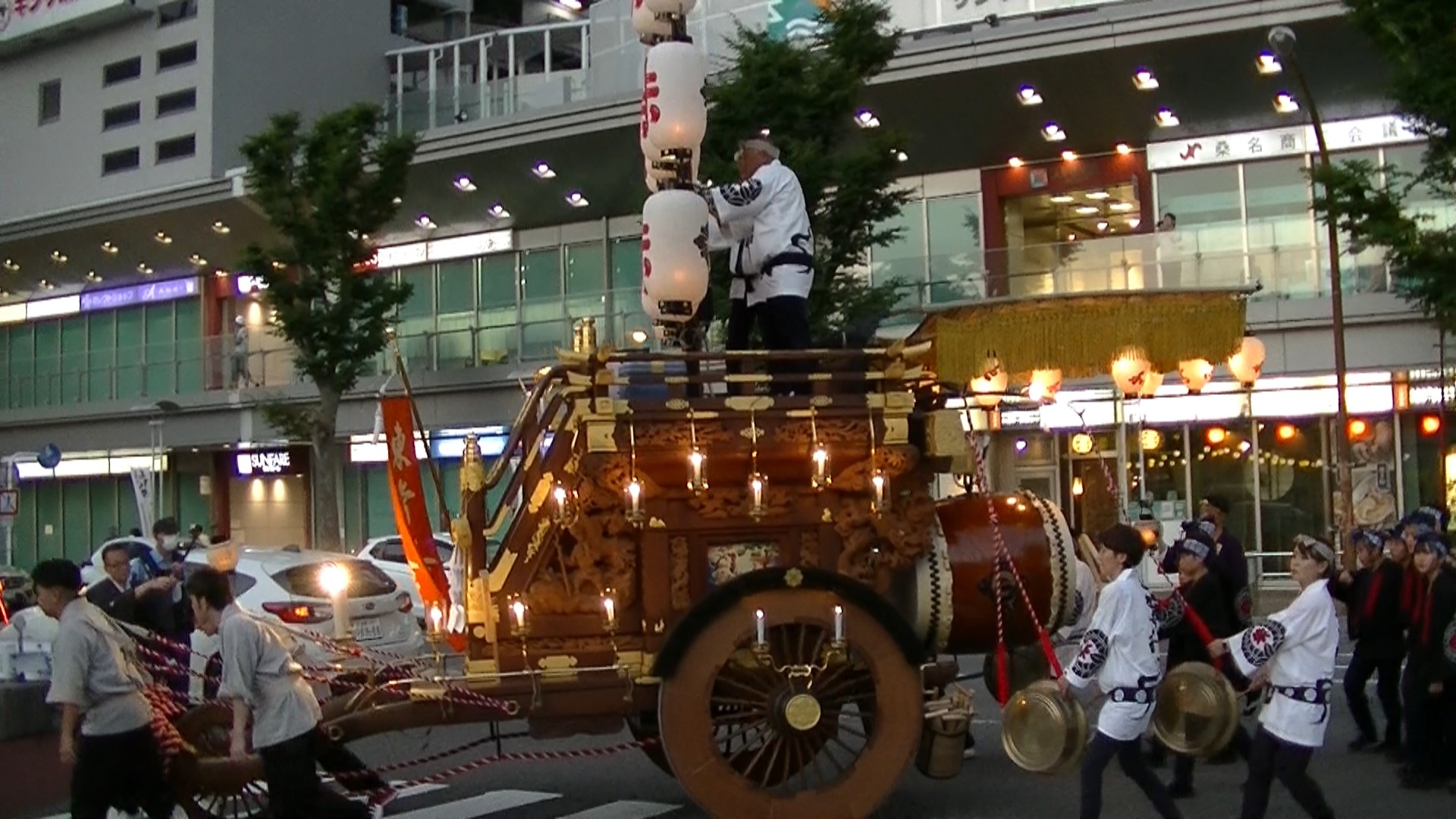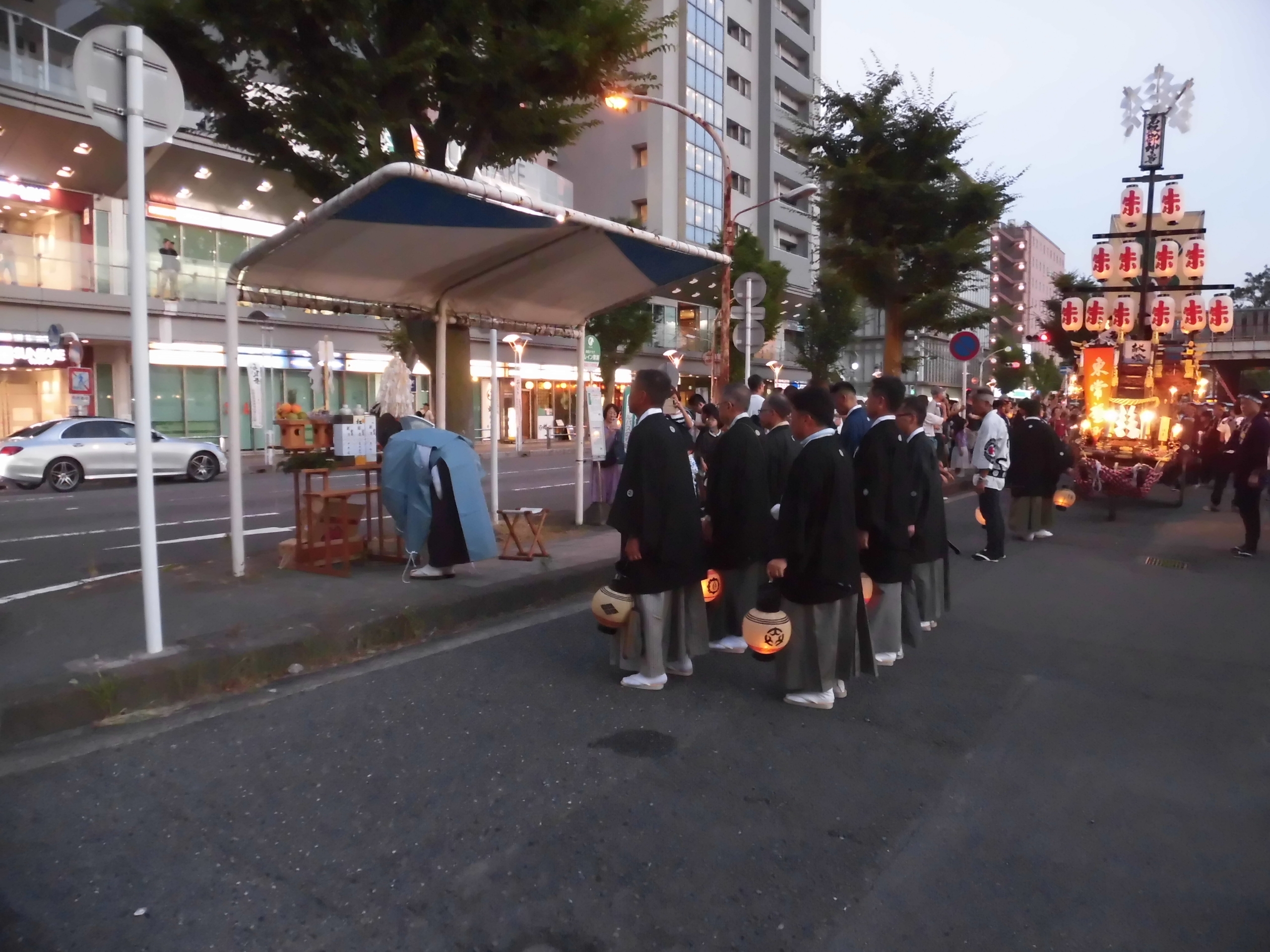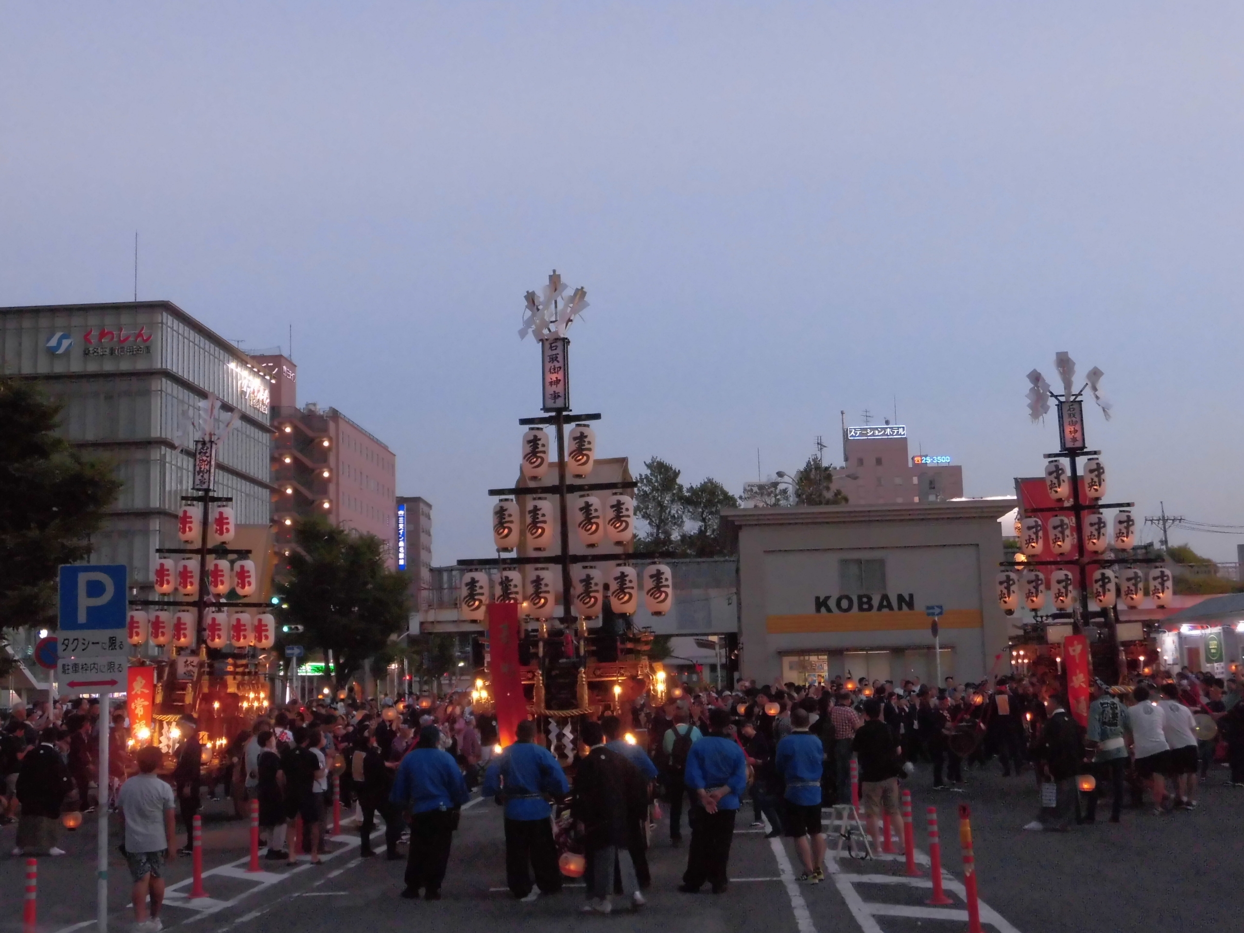 午後7時頃、桑名駅前タクシー乗り場に祭車が揃います。