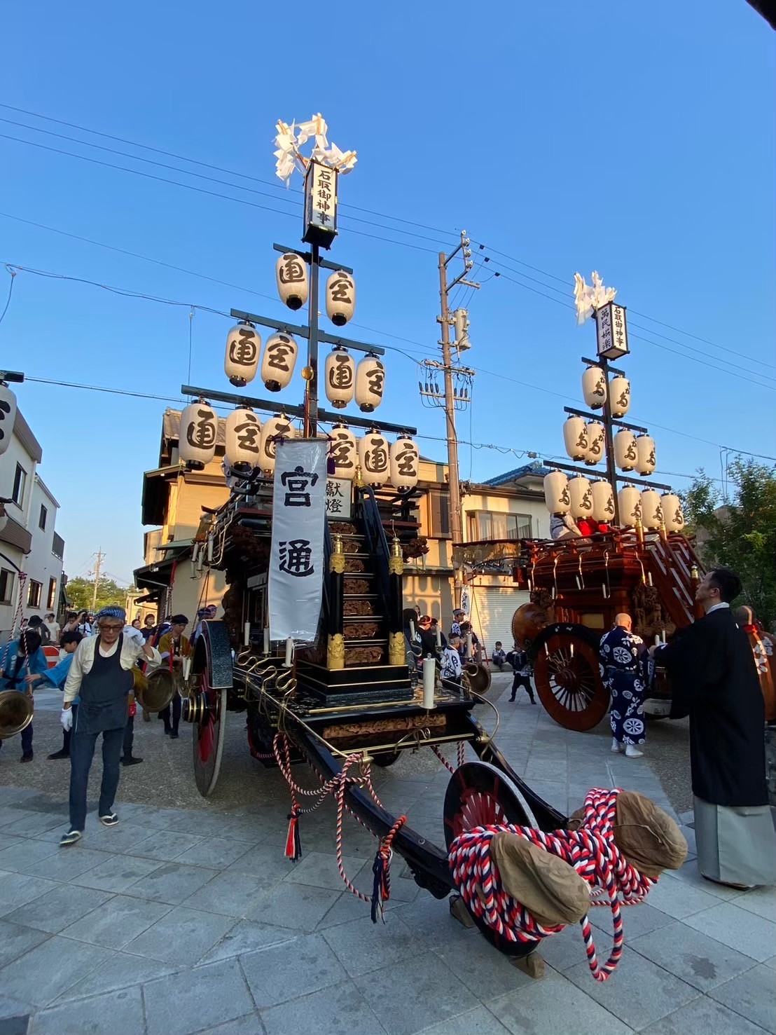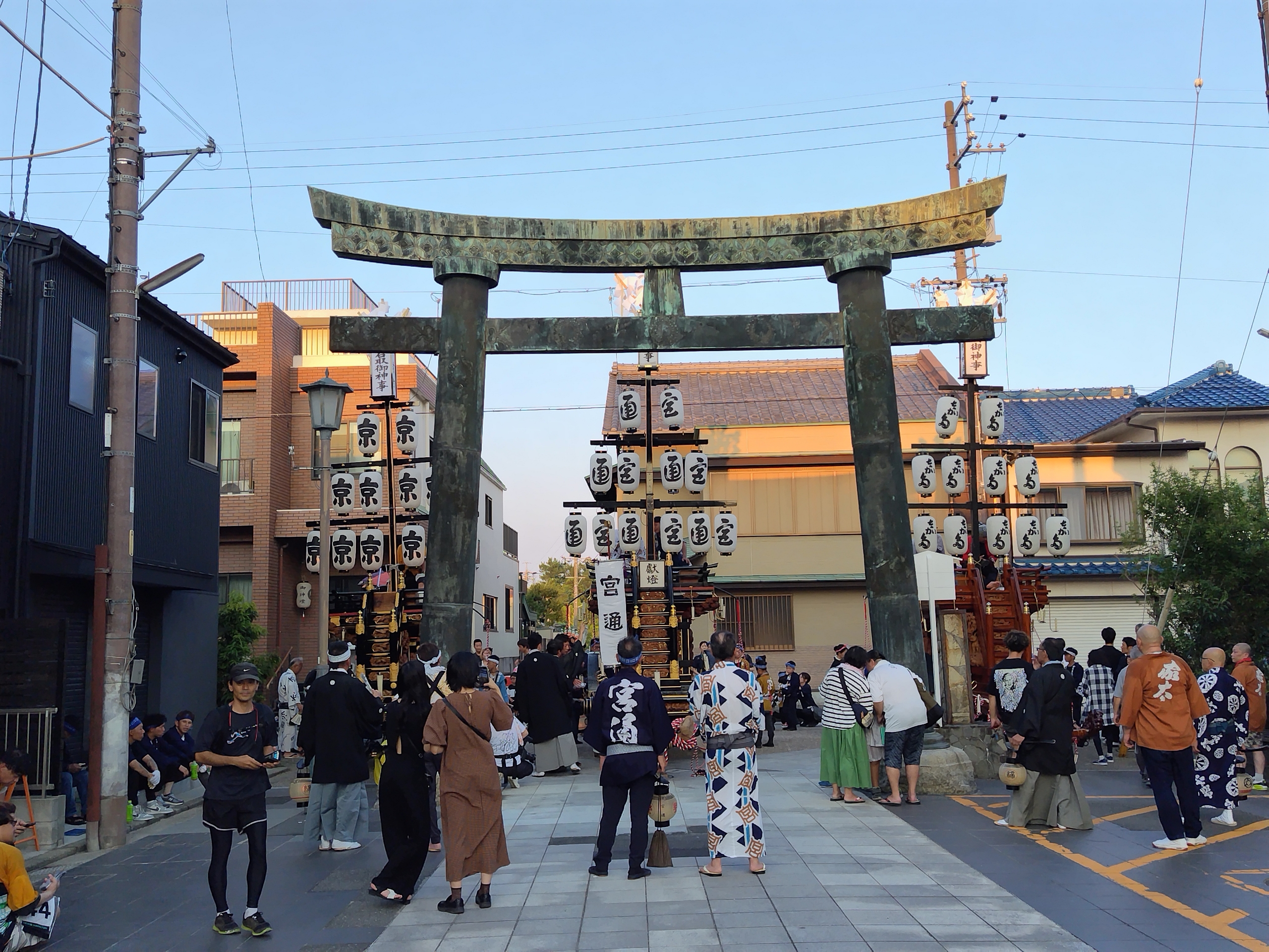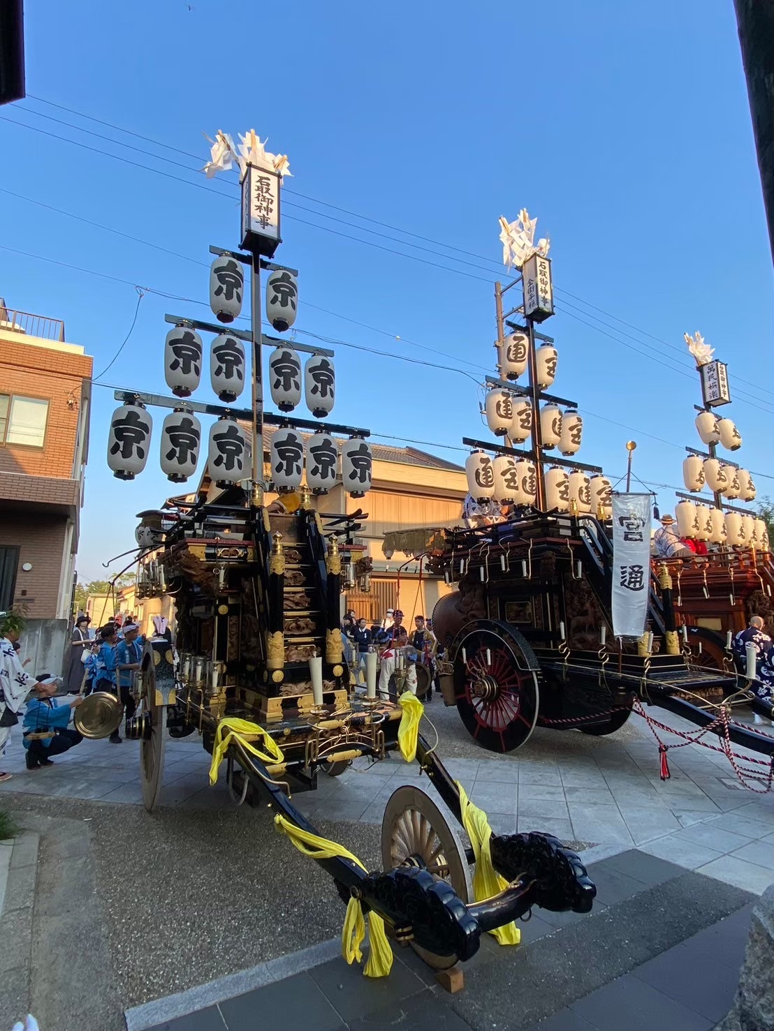 中央に宮通祭車、南側に片町祭車が並びます。