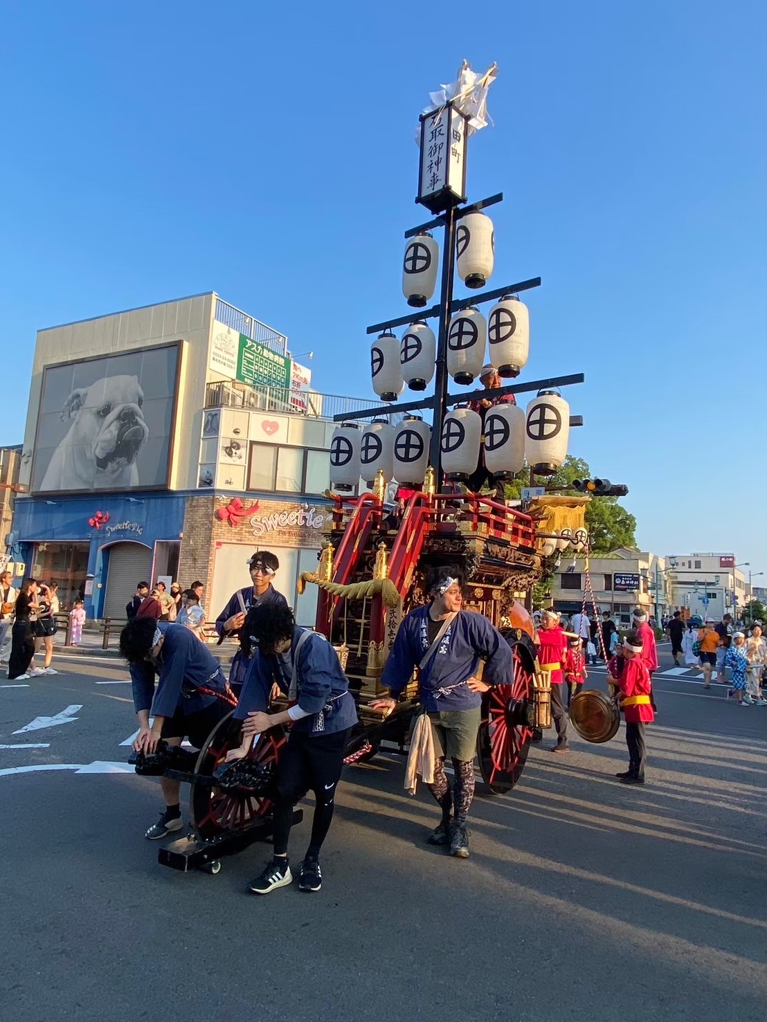 8/3 第一組祭車が八間通りを渡る頃、観光客の数が凄く増えました!