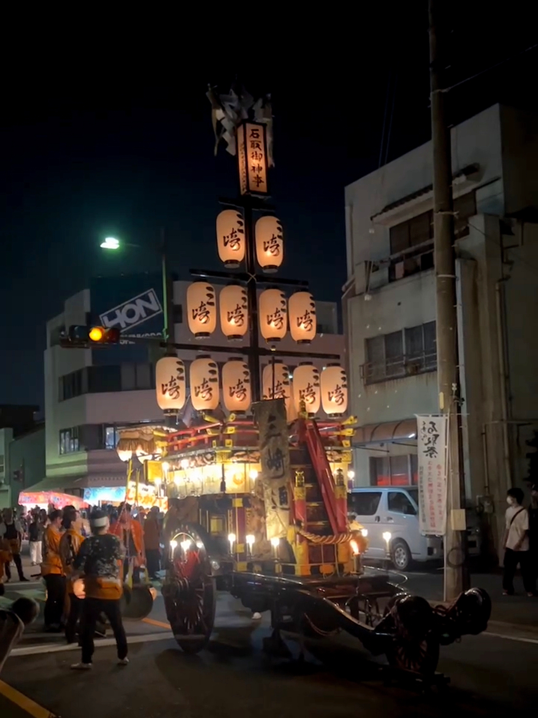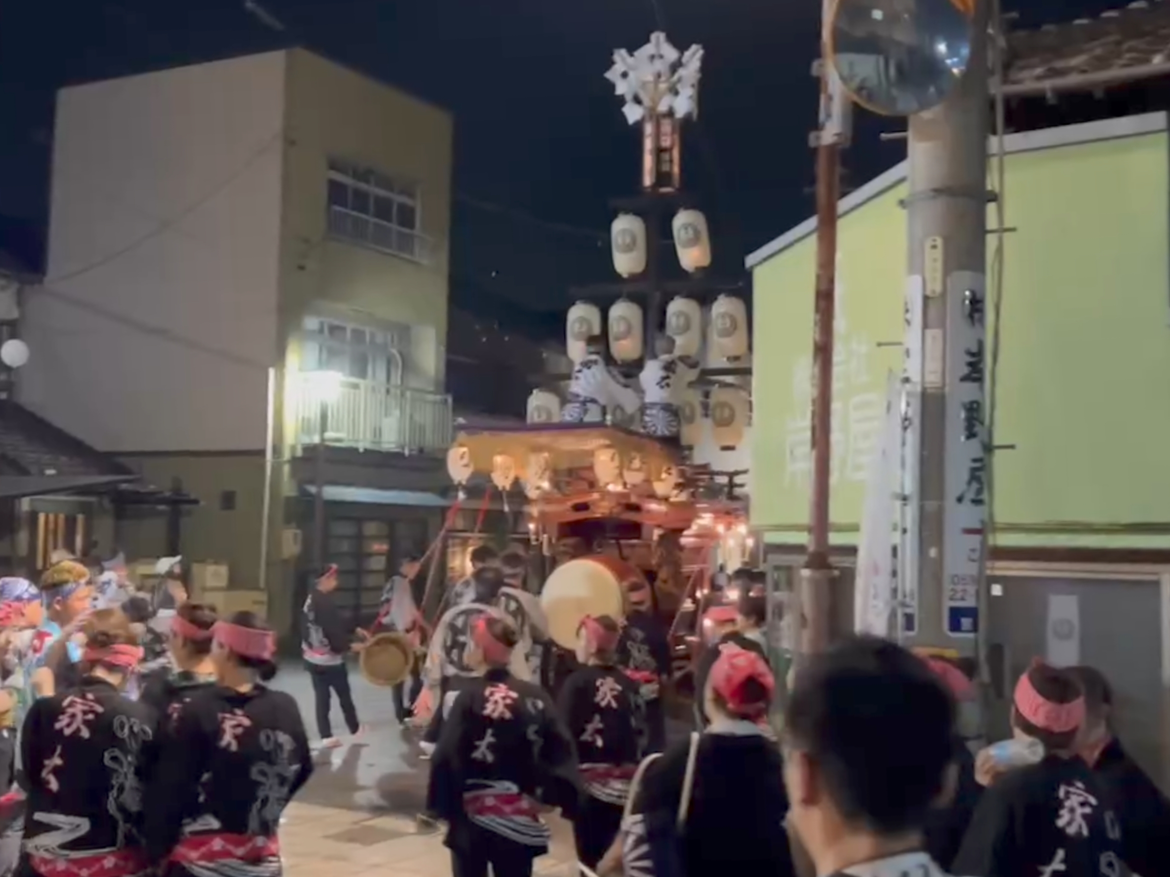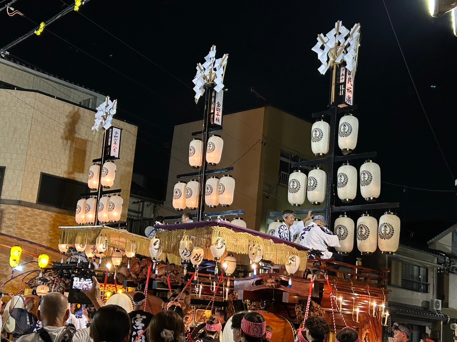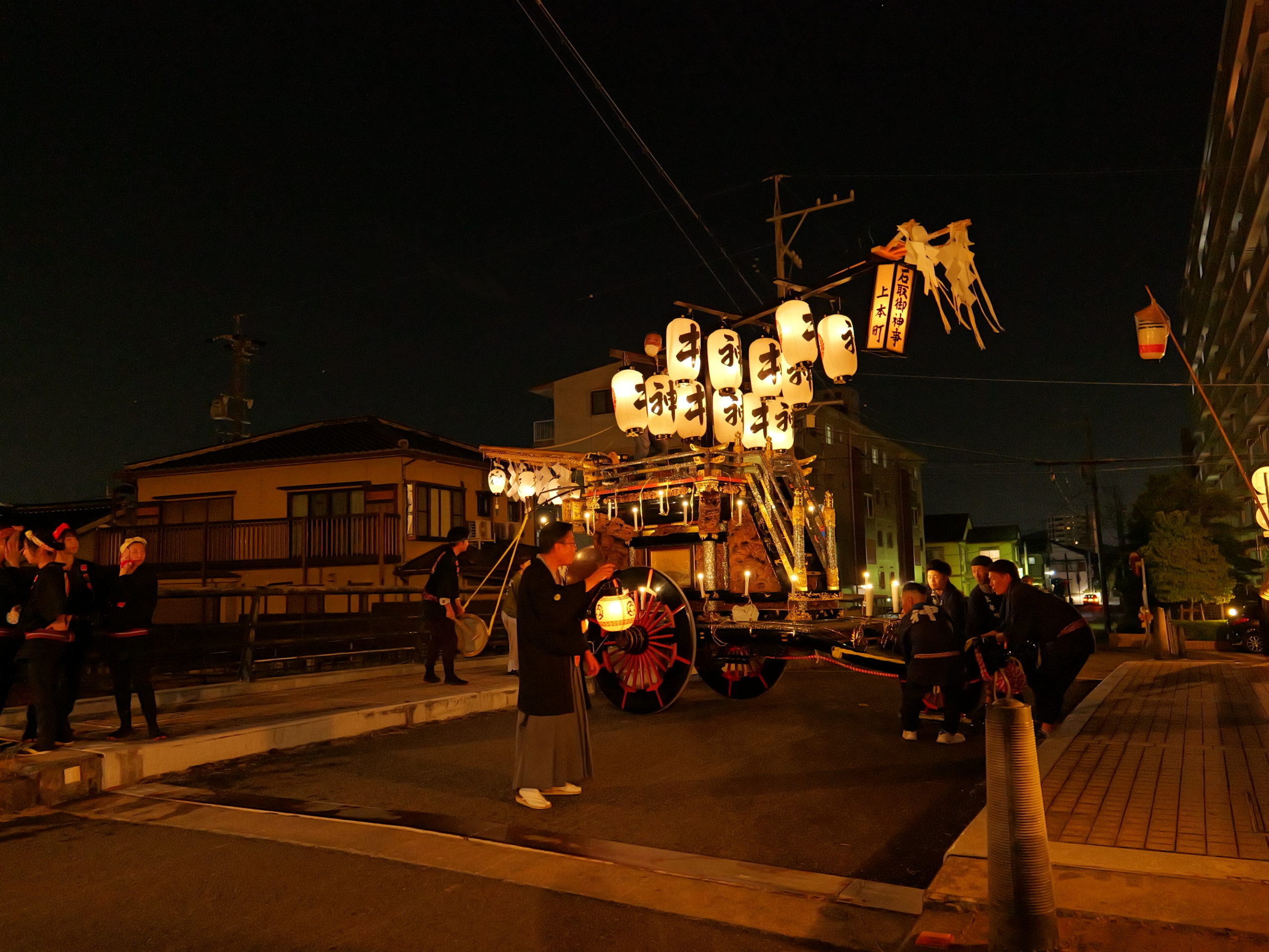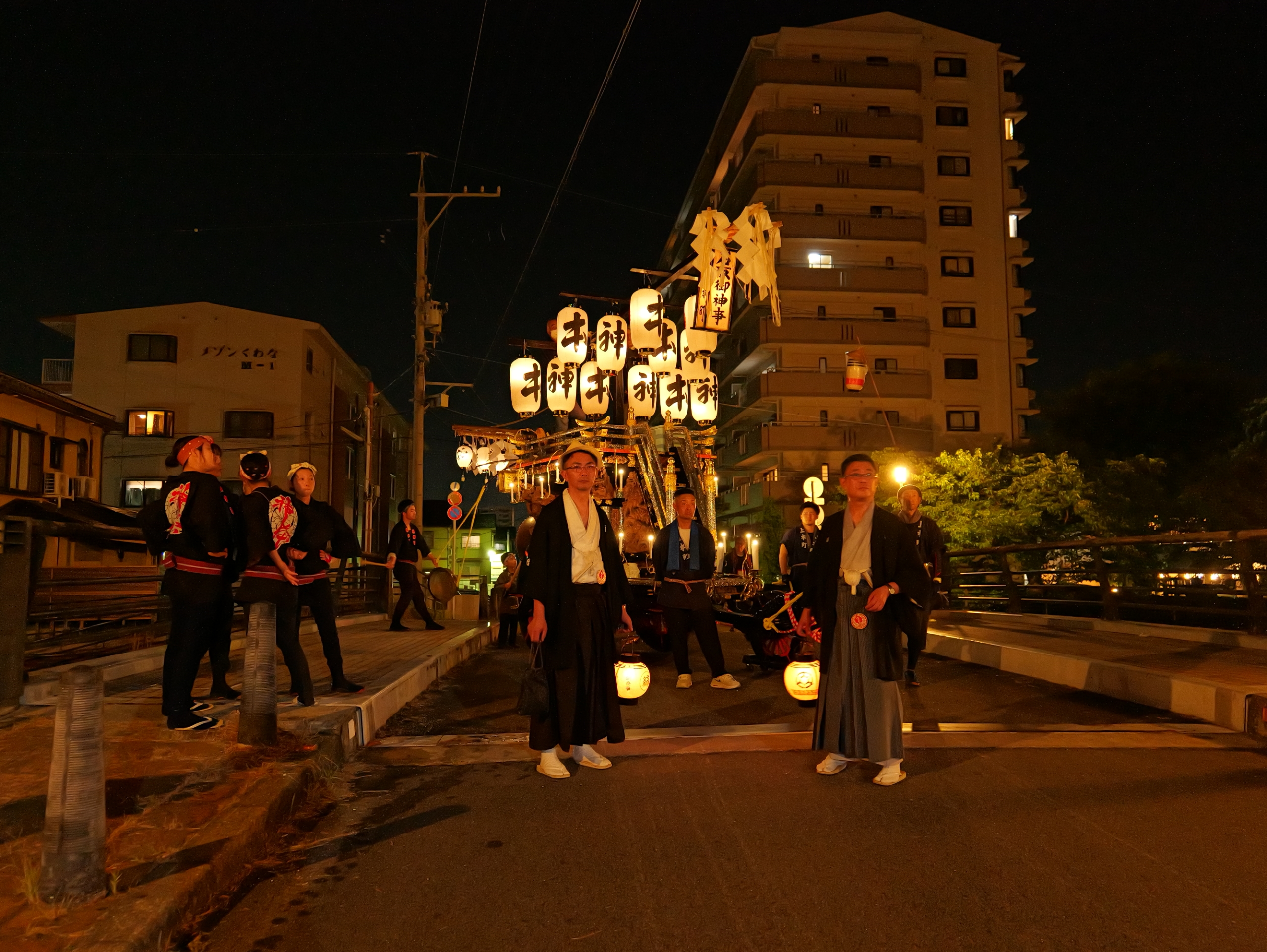 8/3 午後9時40分、第一組祭車は玉重橋でUターンをします!