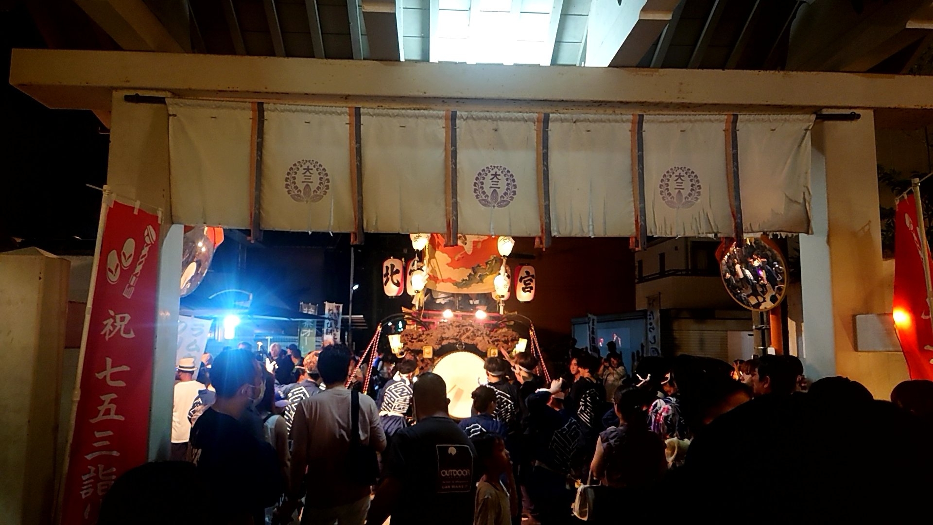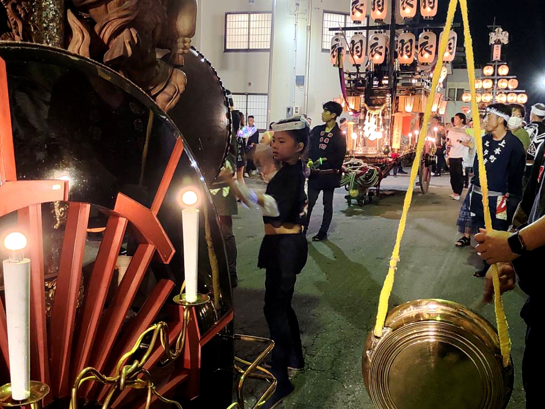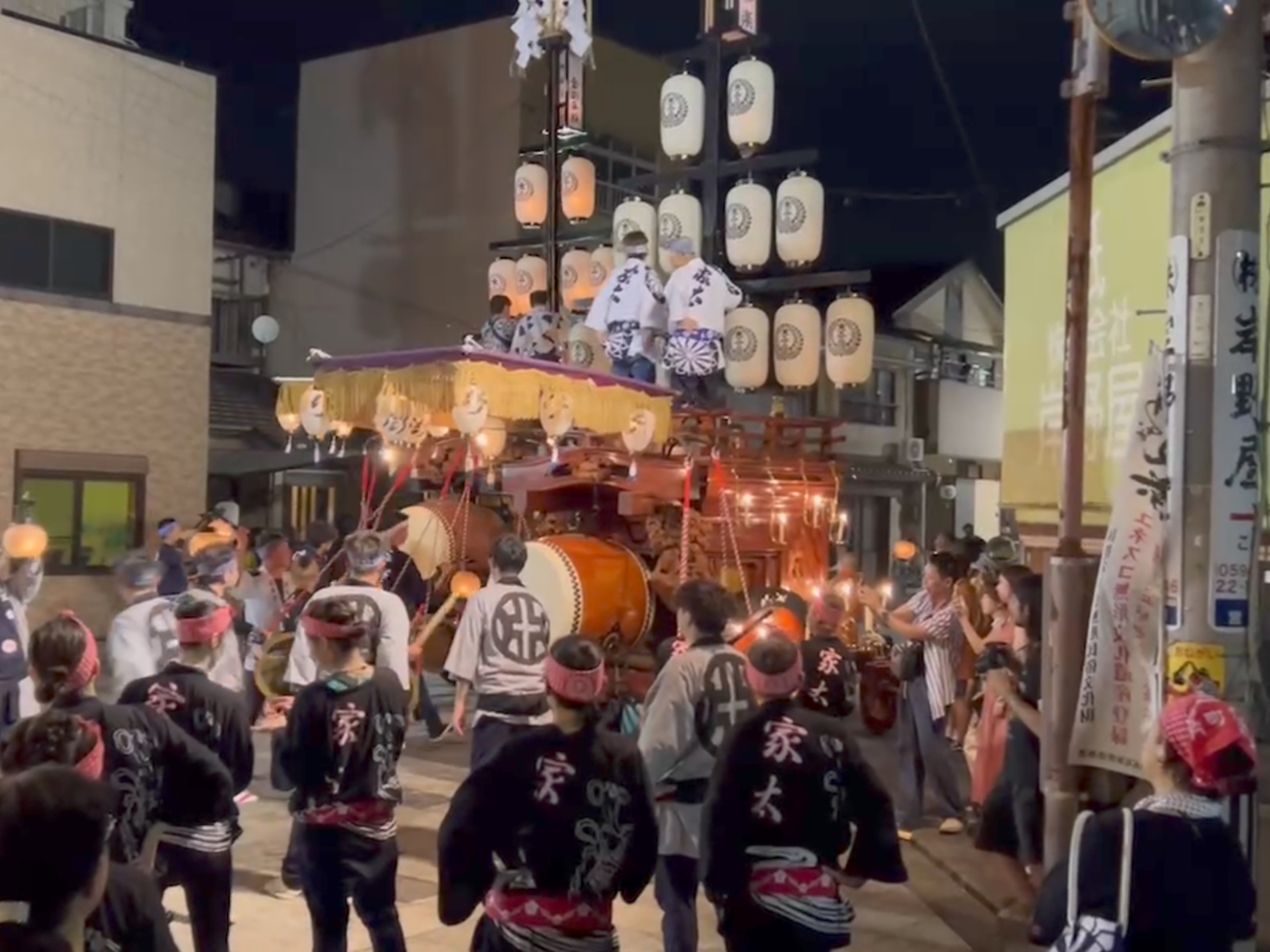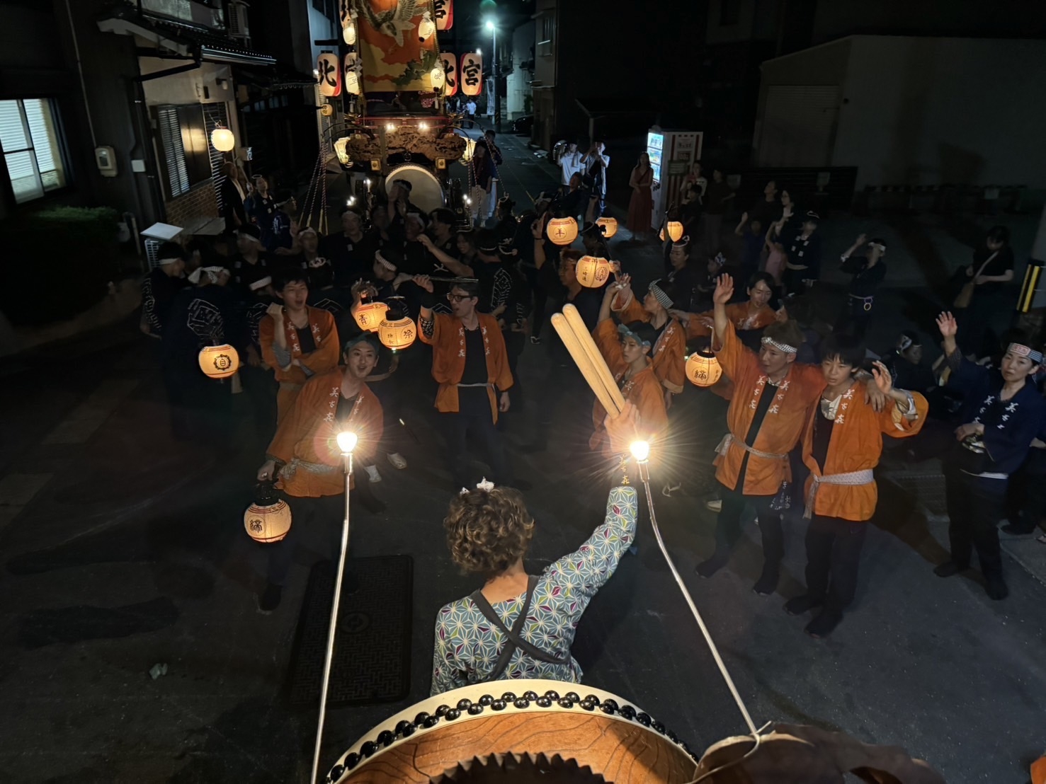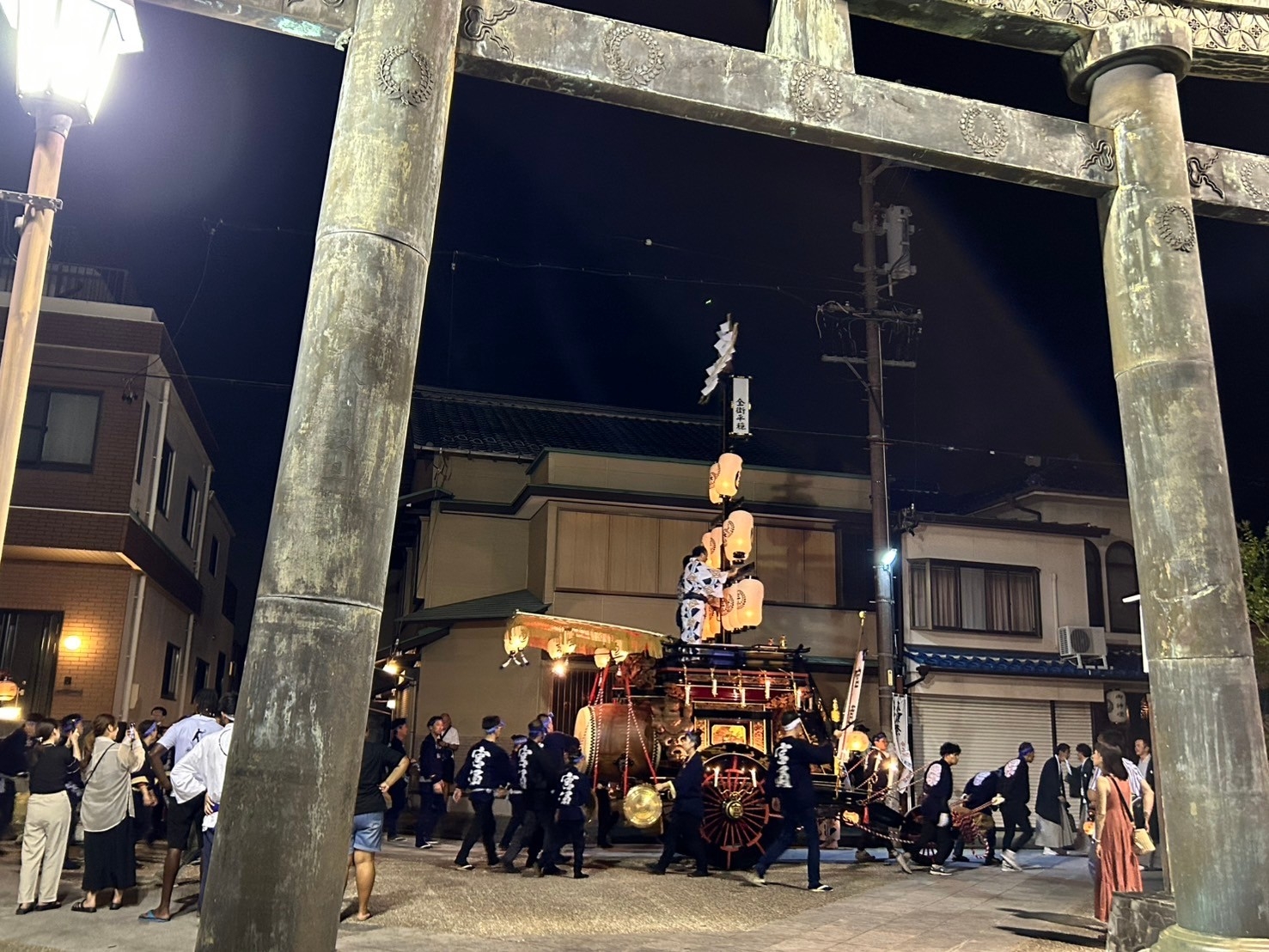 8/3 午後9時40分、第一組祭車は玉重橋でUターンをします!